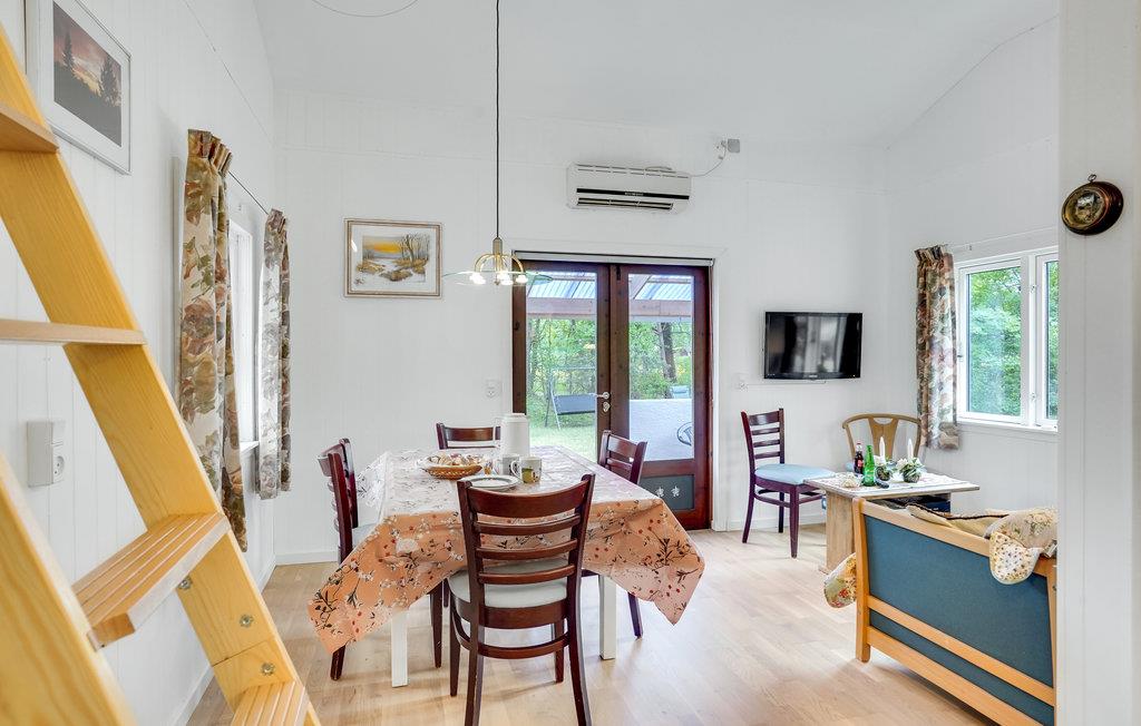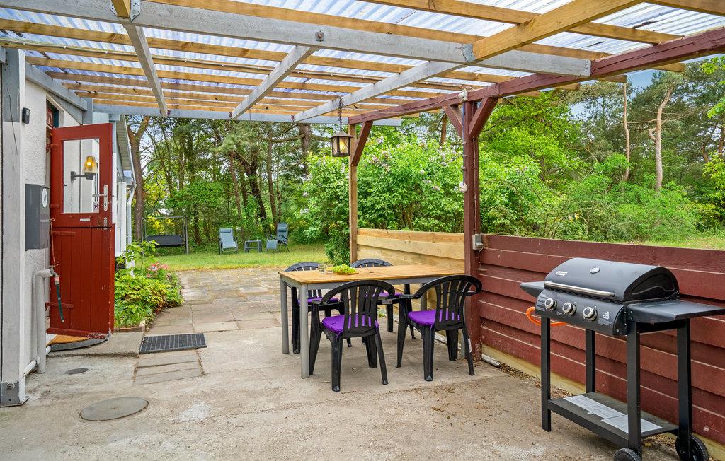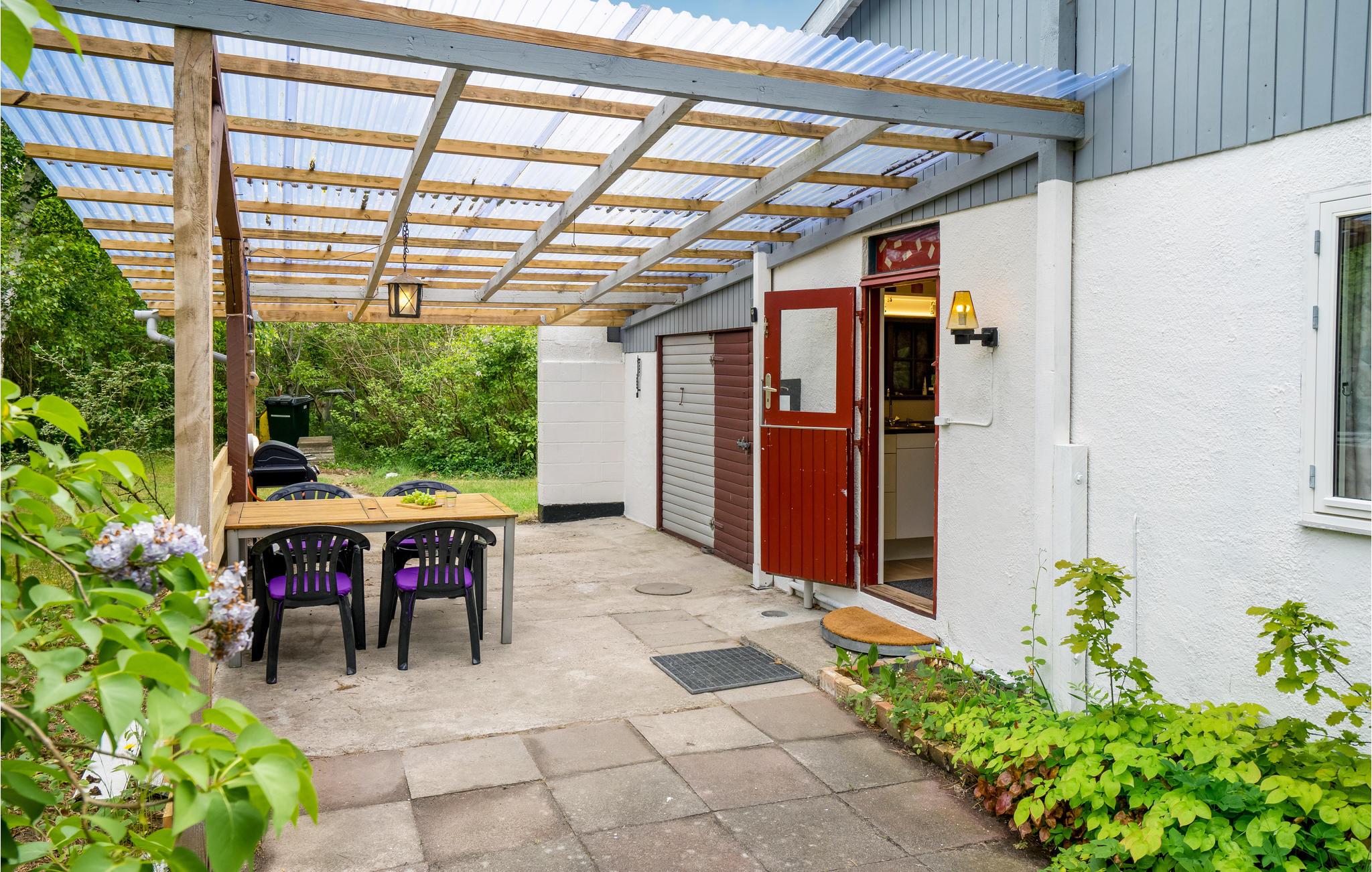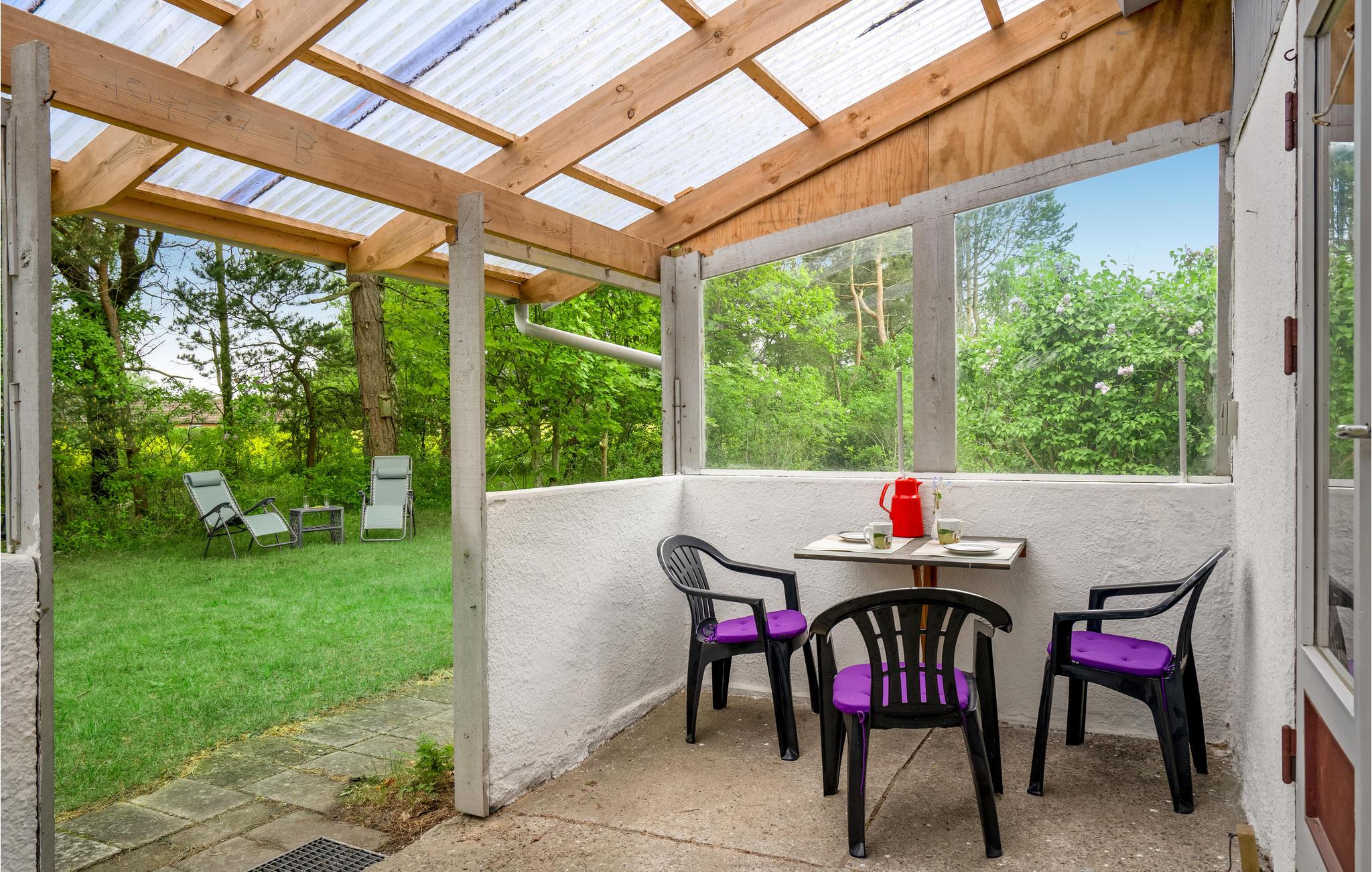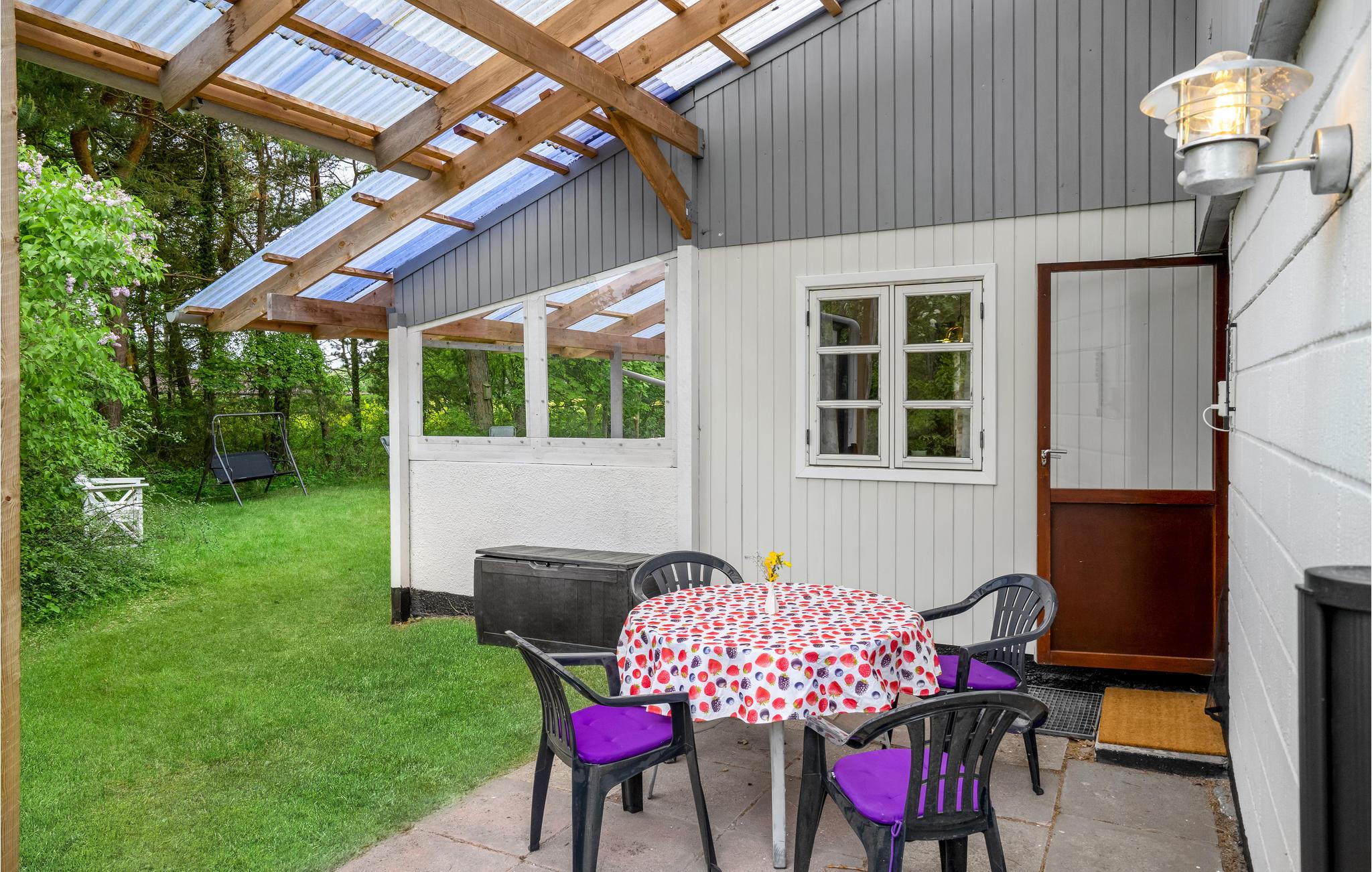 Glæd jer til en ferie med base i dette skønne sommerhus, hvor I kan komme helt ned i gear. Både inde og ude får I rendyrket feriestemning med autentiske møbler, farverige materialer og en grøn have, som I kan nyde udsigten til fra terrassen. Her kan I nyde dagen måltider uanset vejr, for der er læ og ly under overdækningen.