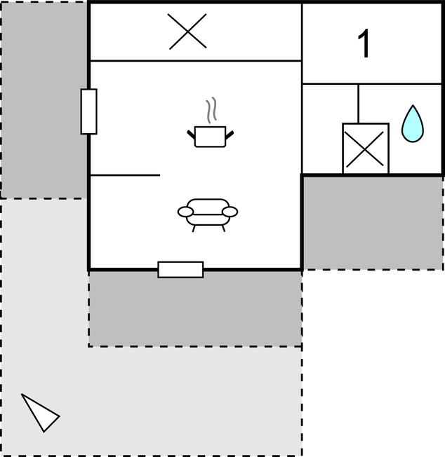 Opholdsstue - 1 Soveplads. (Sofa, madras eller lignende).