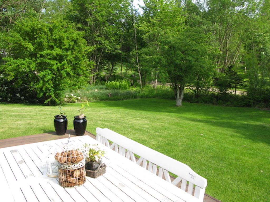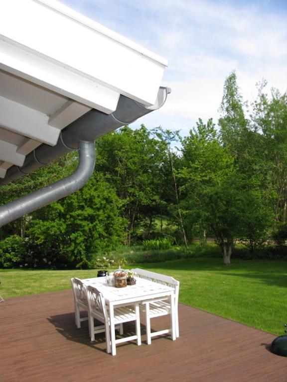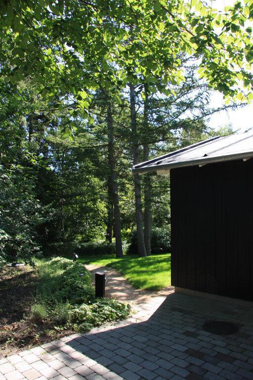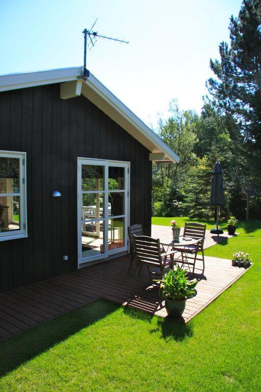 Der er en stor, åben terrasse på 50 kvm. og selvfølgelig havemøbler, liggestole og grill. Der er p-plads på grunden.