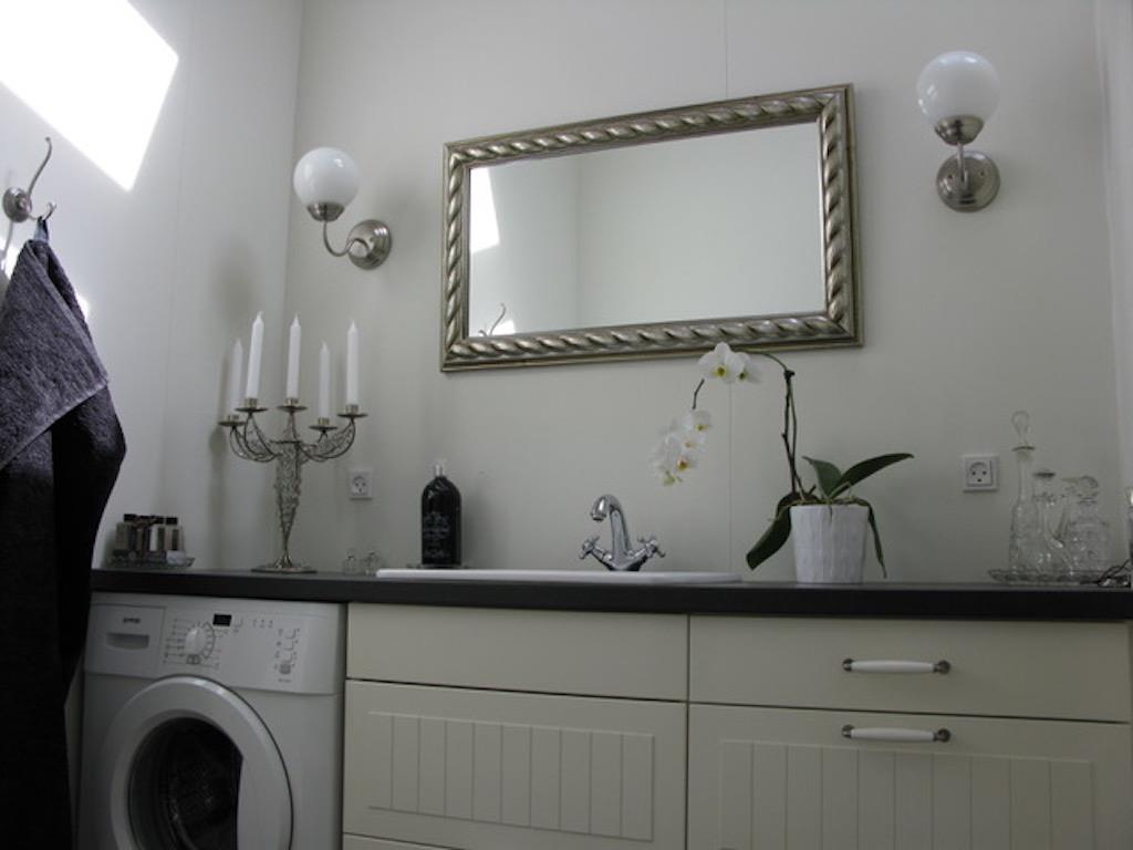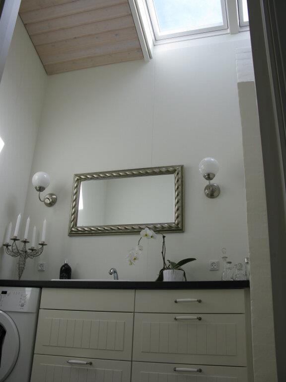 Der er et lækkert badeværelset med toilet, brusebad og varme i gulvet. Der er også vaskemaskine.