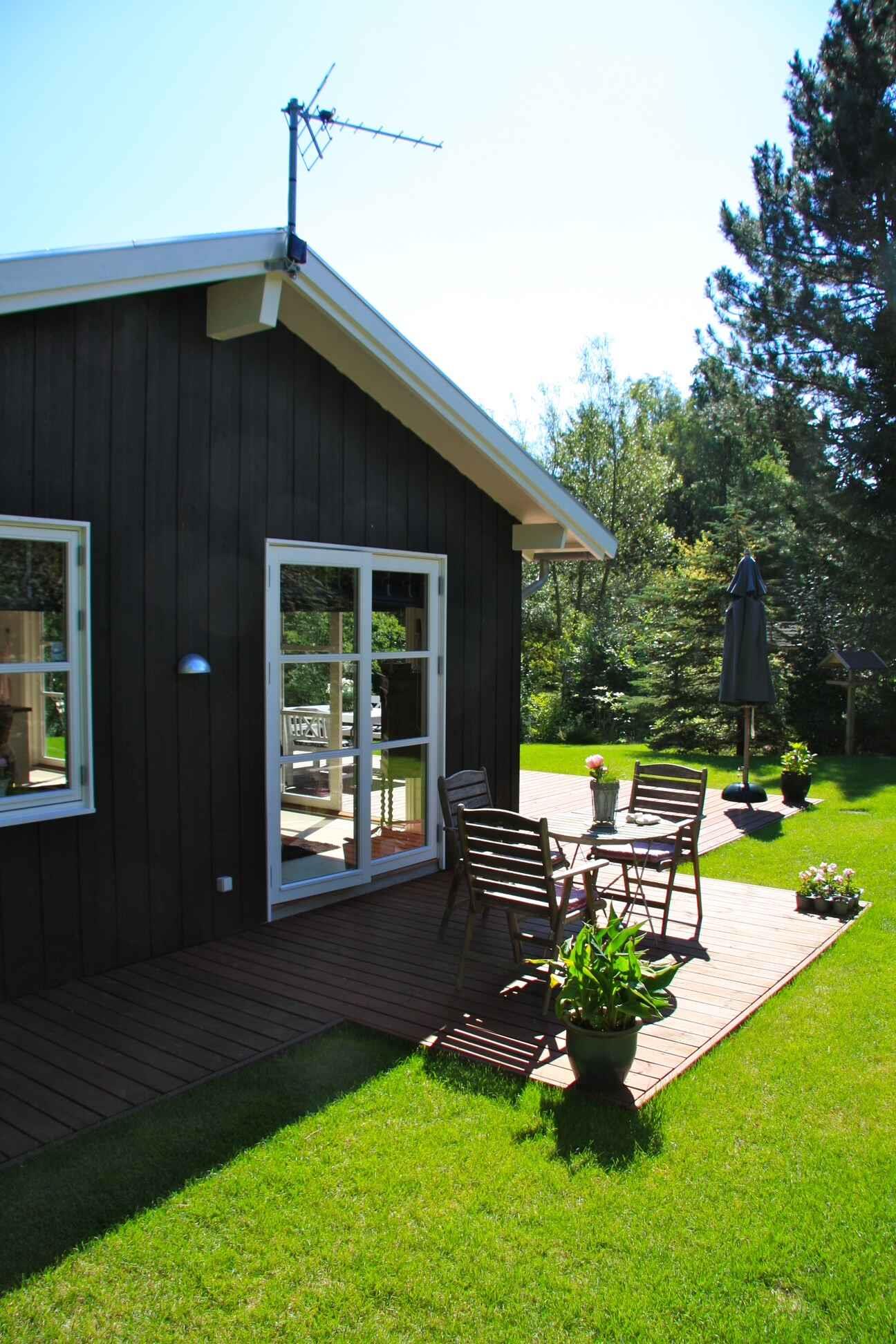 Charmerende sommerhus nær Skærbystrand med stor terrasse og indhegnet have.