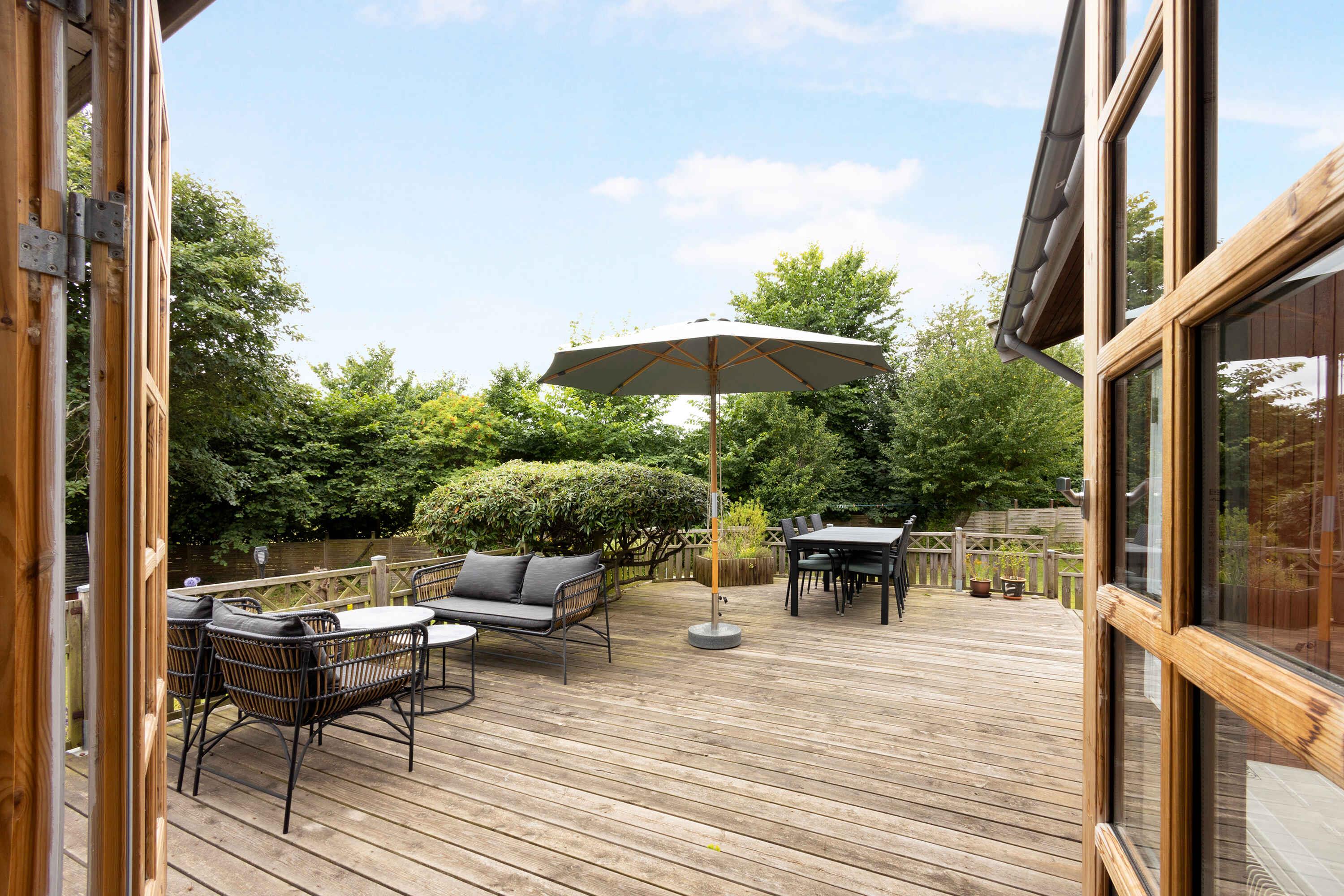 Charmerende sommerhus ved Ebbeløkke Strand med stor terrasse og stor have, kun 450 meter fra havet.