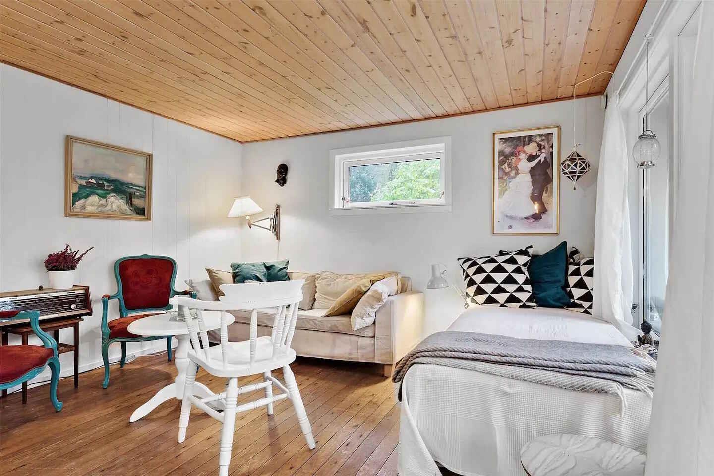 Velkommen til dette charmerende sommerhus i Nykøbing Sjælland. Dette hyggelige sommerhus er perfekt til en familie eller en gruppe af venner, der ønsker at tilbringe en afslappende ferie i det smukke område omkring Nykøbing Sjælland. Huset har 2 værelser og kan rumme op til 3 personer, og der er et badeværelse i huset. Sengepladserne er fordelt på 2 enkeltsenge i det ene værelse, en enkeltseng i det andet værelse samt en enkeltseng i stuen. Huset er indrettet i retro stil: Hyggelig stue med lille brændeovn og udgang til til overdækket terrasse, hvor man kan sidde og nyde naturens fred, også når det regner. Fra det lille køkken er der adgang til stuen samt spisestue, adskilt med franske døre. Toilet og bruser er i 2 forskellige rum. Bag huset er der lille græsplæne, som er omkranset af træer og buske, så helt privat og på terrassen kan I slappe af i havemøblerne, tænde op for grillen og blot nyde sommeraftenerne i rolige omgivelser. OBS: - Håndklæde og linned skal medbringes! - Brænde eller briketter til brændeovnen skal indkøbes, det som er at finde på grunden er til privat brug. (fås i mange supermarkeder eller på tanken få minutter væk) - Rygning ikke tilladt indenfor. Nykøbing Sjælland er kendt for sine fantastiske strande, og dette sommerhus er kun ca. 1 kilometer fra skøn badestrand. Der er også masser af aktiviteter i området, herunder cykling, vandreture og besøg på lokale seværdigheder som fx Dragsholm Slot, Sommerland Sjælland og Odsherred Zoo. Hvis I er til vandsport, er der gode muligheder for at surfe, sejle og fiske langs kysten. Der er også masser af gode spisesteder i området, og I kan nyde alt fra lokale specialiteter til international mad. Tag f.eks. på en tur til Nykøbing Sjælland og prøv nogle af de lokale restauranter og caféer. Dette sommerhus er det perfekte udgangspunkt for at udforske det smukke område omkring Nykøbing Sjælland og tilbringe en dejlig og afslappende ferie ved stranden.