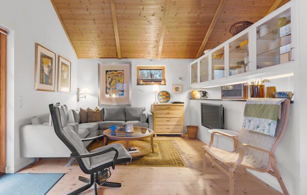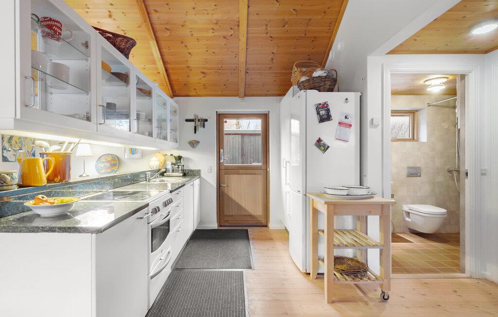 Forkæl jer selv med en pause fra hverdagen og glæd jer til et allelunde vidunderligt ophold i dette attraktive feriehus. Indretningen er både rummelig, flot og hyggelig; i det store opholdsrum er der loft til kip med tydelige træpaneler, der sammen med den kærlige udsmykning danner en virkelig rar atmosfære, hvor I kan hvile stængerne og bruge meget god tid sammen. Fyr op i brændeovnen, kræs om madlavningen i det veludstyrede køkken, nyd måltiderne ved spisebordet og lad en skøn feriedag gå på hæld med en hyggelig filmaften i de komfortable sofaer.