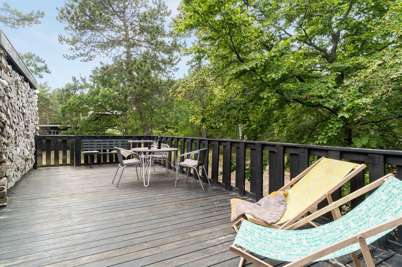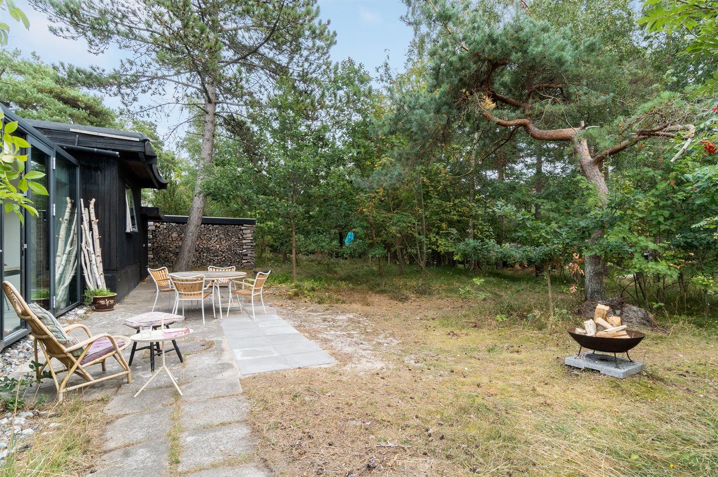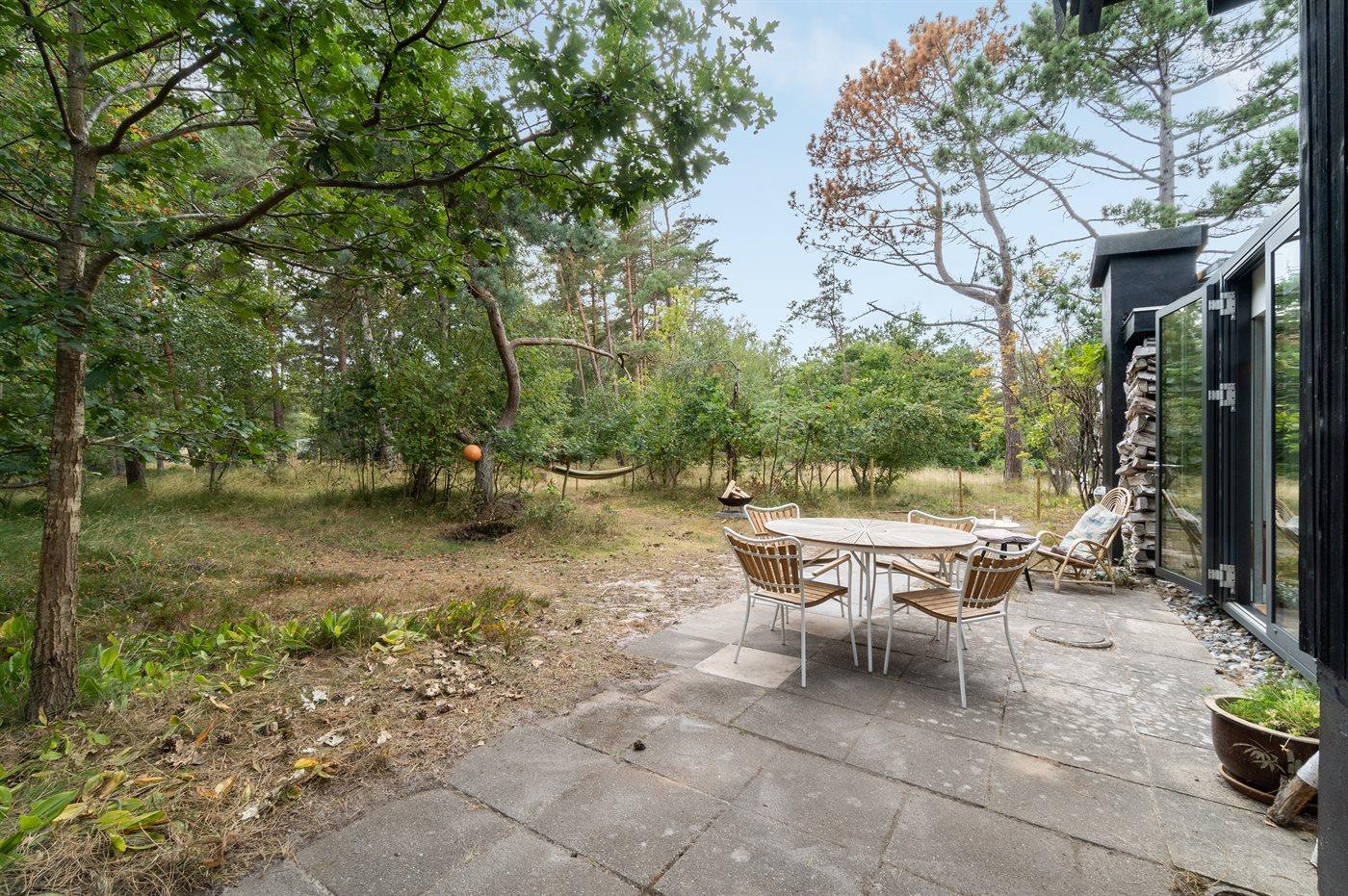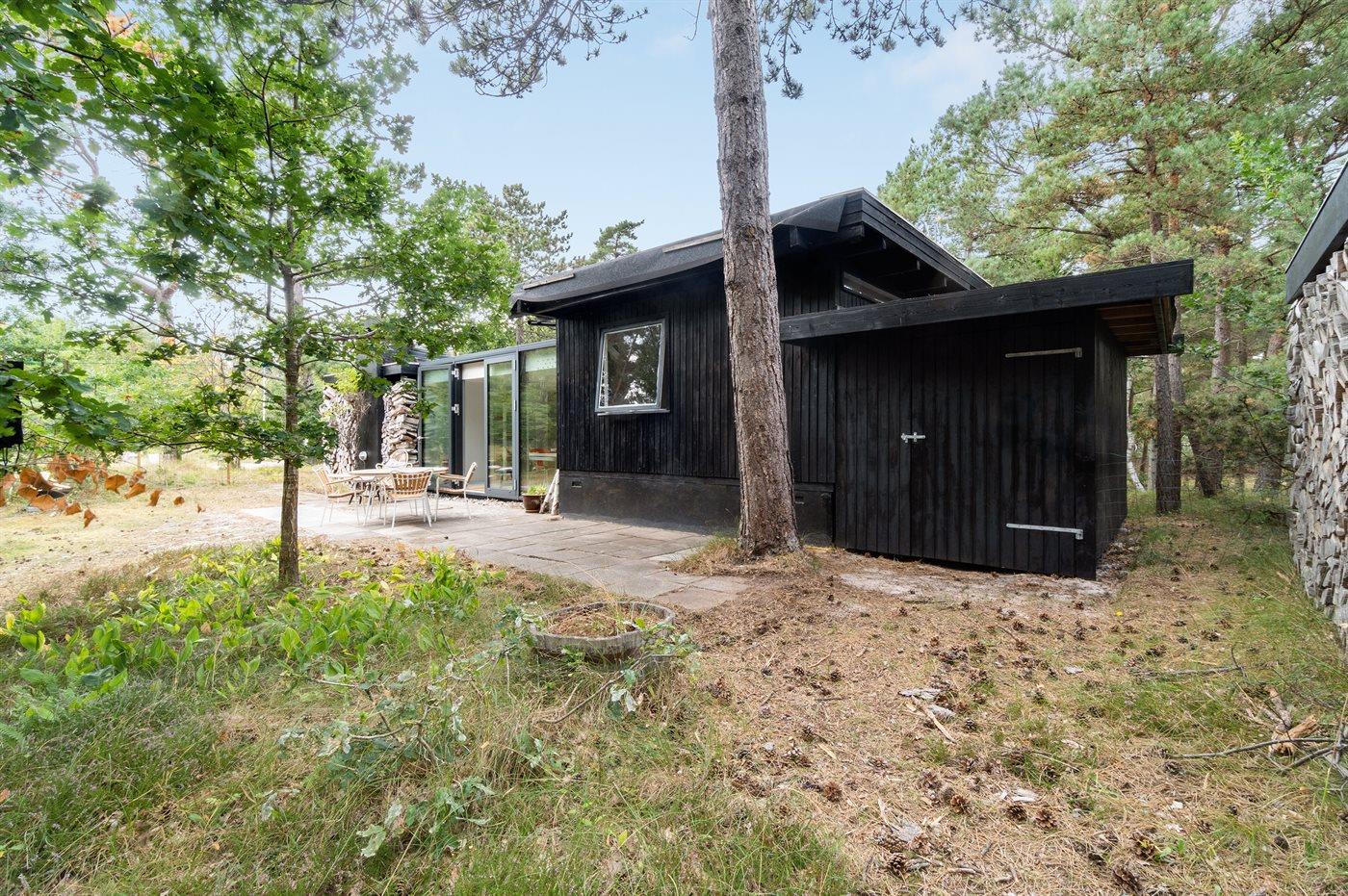 Dette sommerhus er beliggende i et naturmæssigt skønt område og med kun 150 meter til en af Danmarks bedste sandstrande. Vejen til huset giver de første hint om et hus med en fantastisk rolig og dejlig beliggenhed på en stor naturgrund med høje træer.