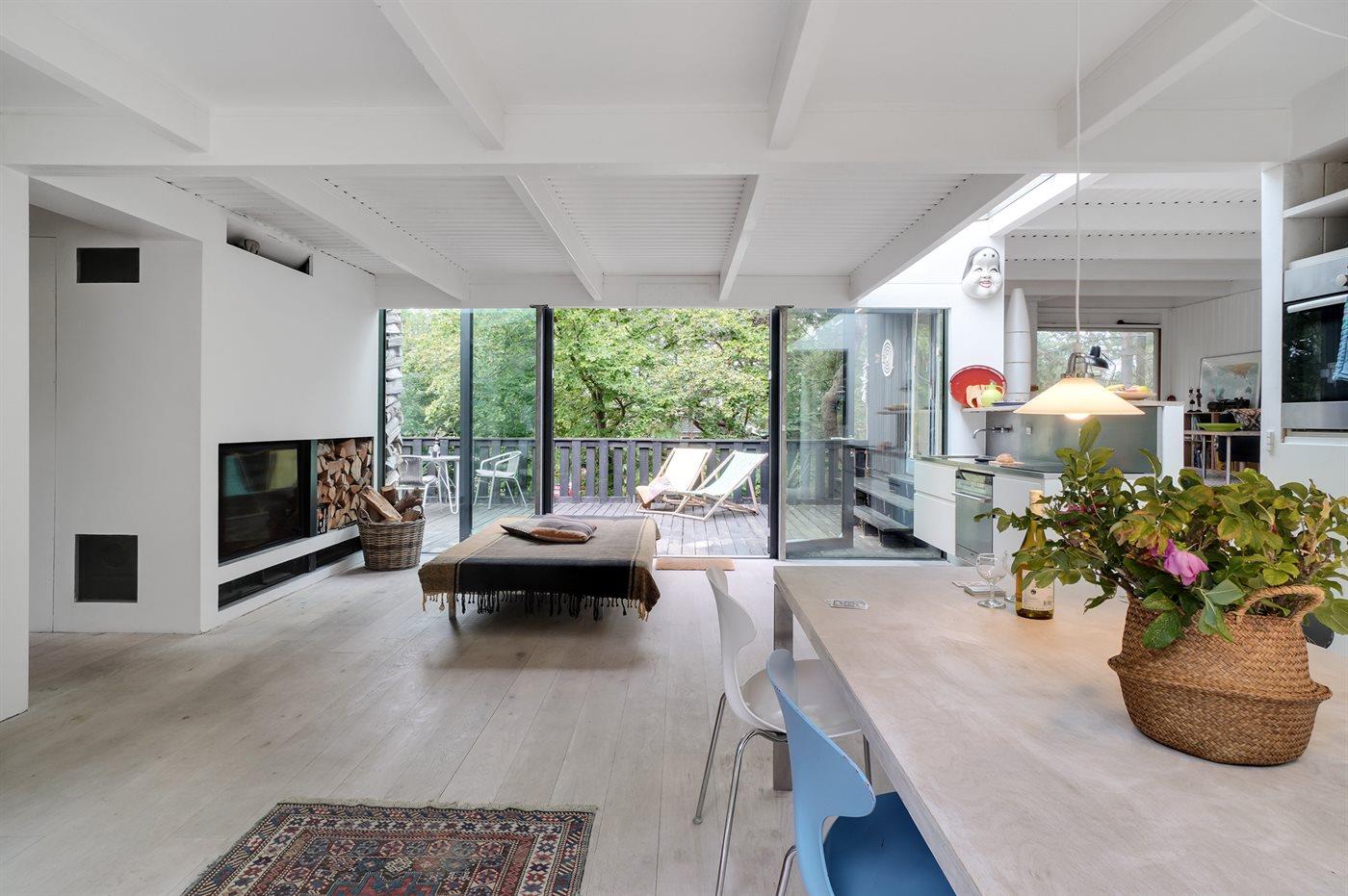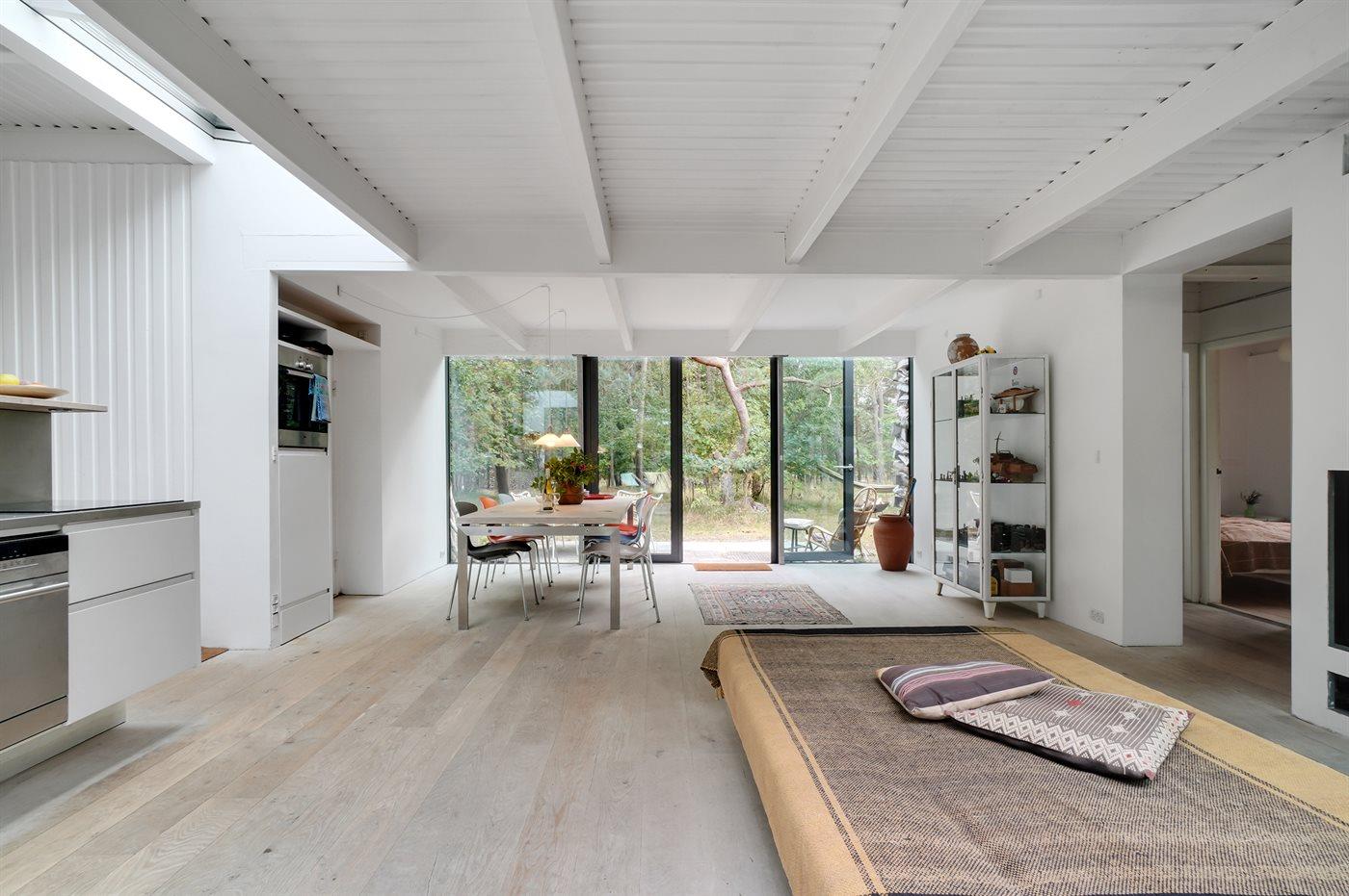 Huset indeholder et køkken i åben forbindelse med spiseplads og stue grænsende op til. Der er 3 gode soveværelser og et badeværelse med bruseniche og gulvvarme. Der er terrasseområder på begge sider af huset, og grunden er indhegnet. De naturmæssigt gode omgivelser indbyder til ro og afslapning.