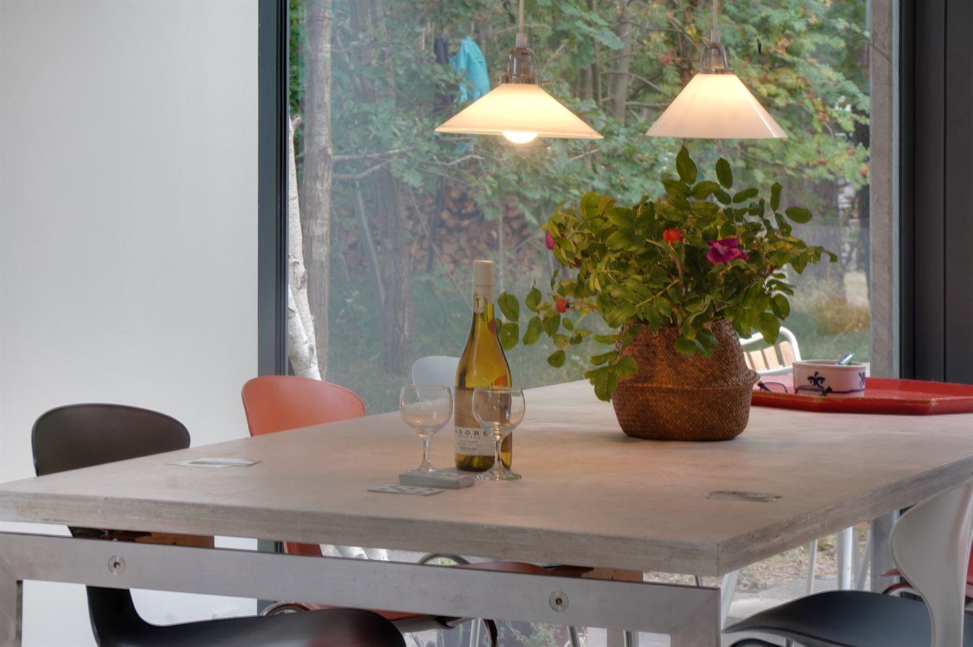Køkkenet er udstyret med 1 køleskab. Der er 4 keramiske kogeplader, varmluftovn samt opvaskemaskine.