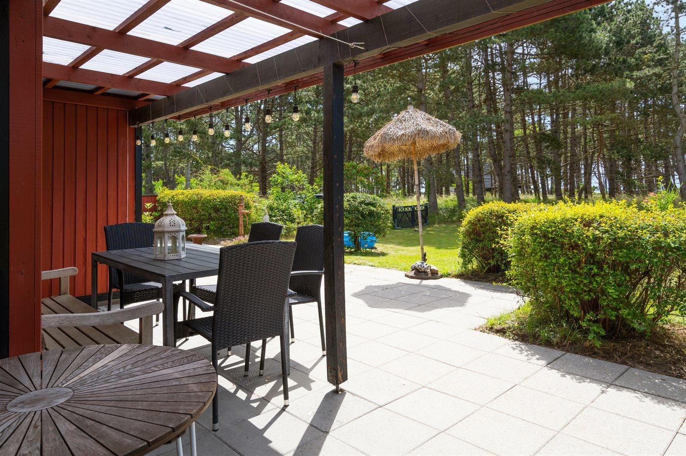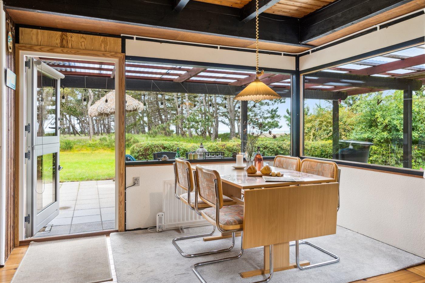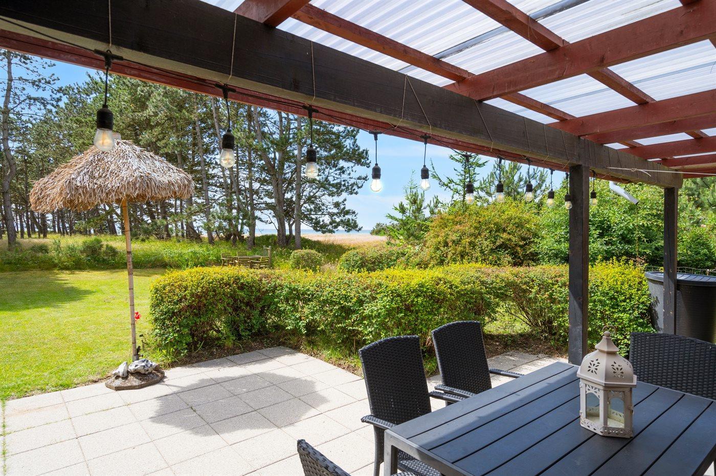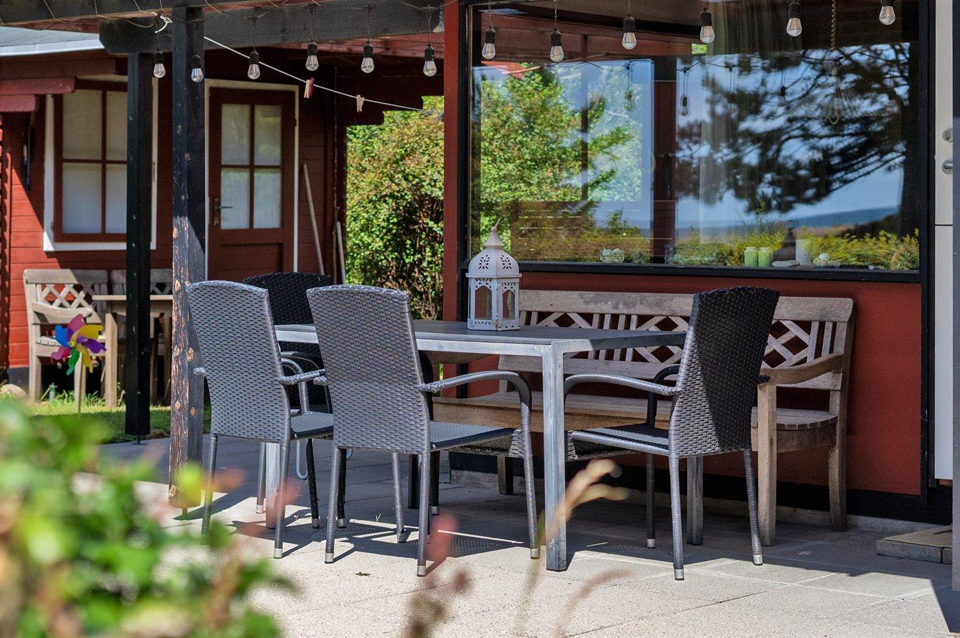 På den store sydvendte terrasse, hvor en del er overdækket, er der rig mulighed for at nyde den friske havluft, slappe af og nyde solen.