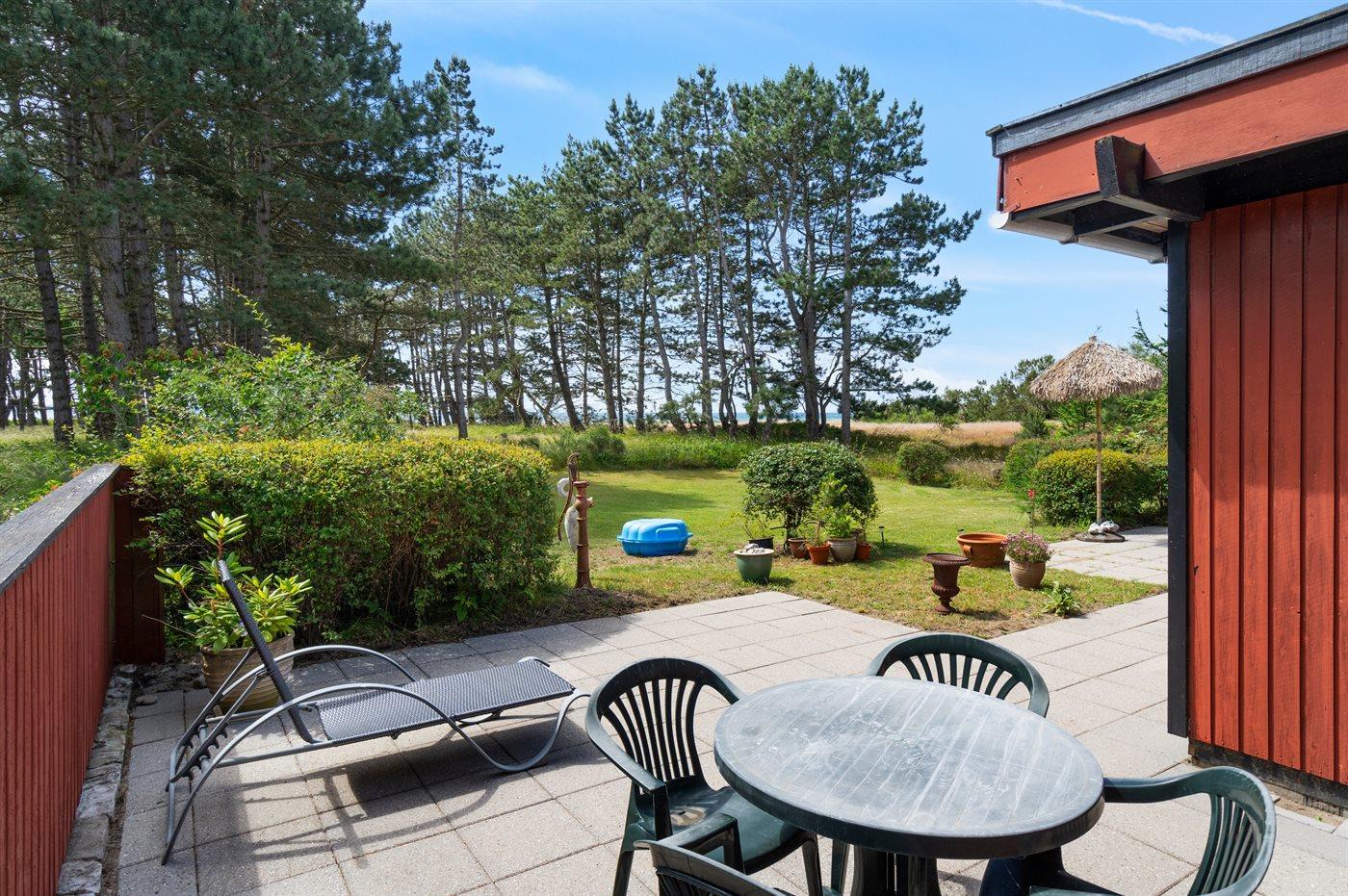 På den store grund, som er indhegnet med et 90 cm højt hegn, er der rig mulighed for leg og boldspil med børnene. Der er sandkasse.