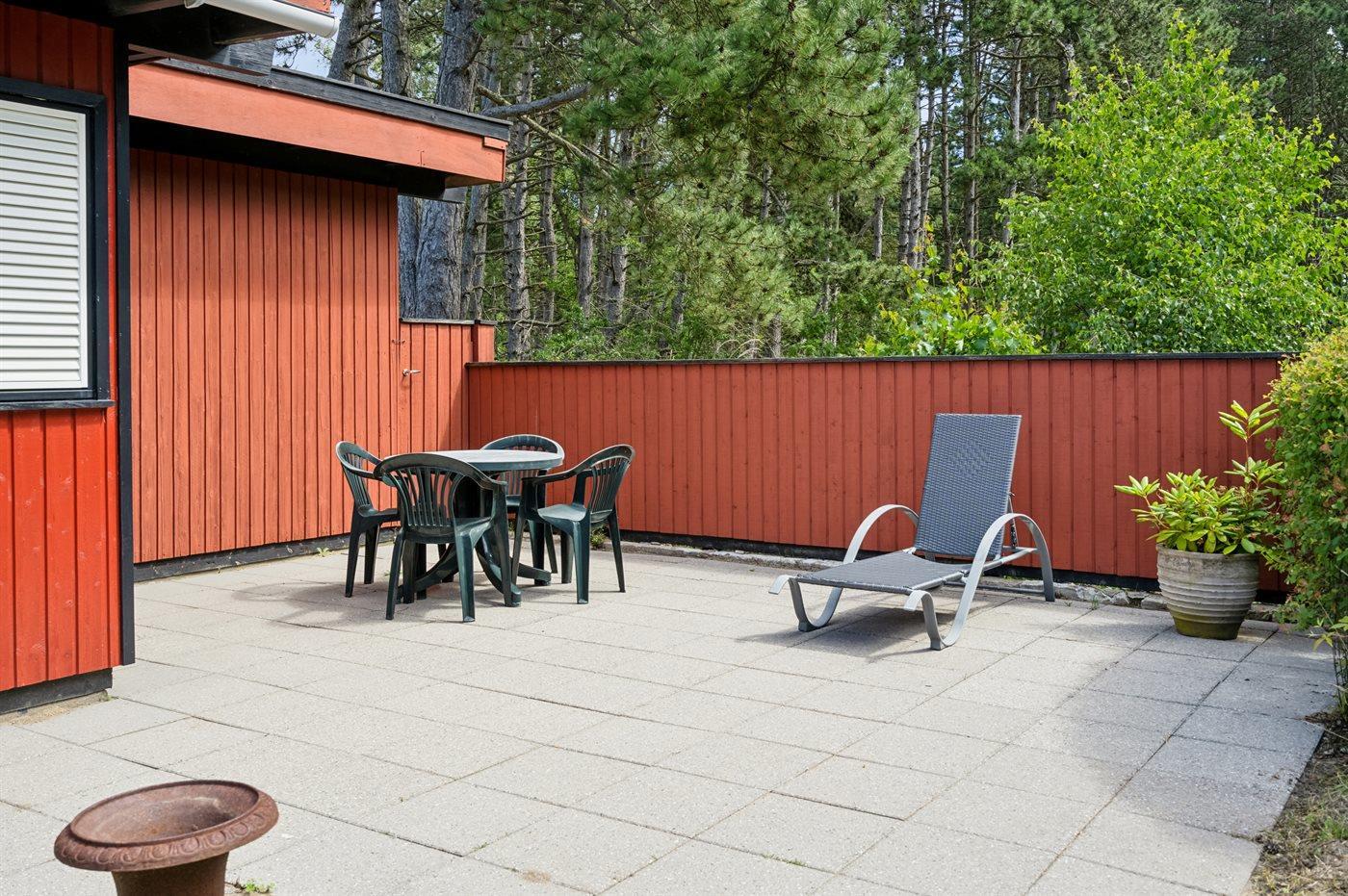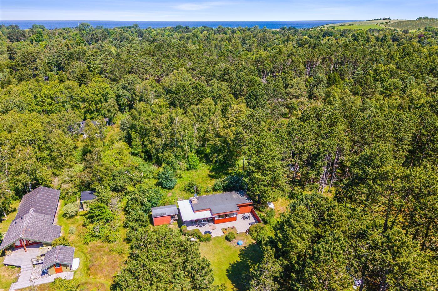 Ferieboligen er beliggende på en 5371 m² stor naturgrund. Der er 125 m til havet. Der er en badebro i nærheden. Nærmeste forretning er beliggende i en afstand af 3000 m. Der er en golfbane i en afstand af 7800 m. Til ferieboligen hører 12 m² terrasseareal. Desuden er der 20 m² overdækket terrasse. Sandkasse. Grill til rådighed. Parkering ved ferieboligen.