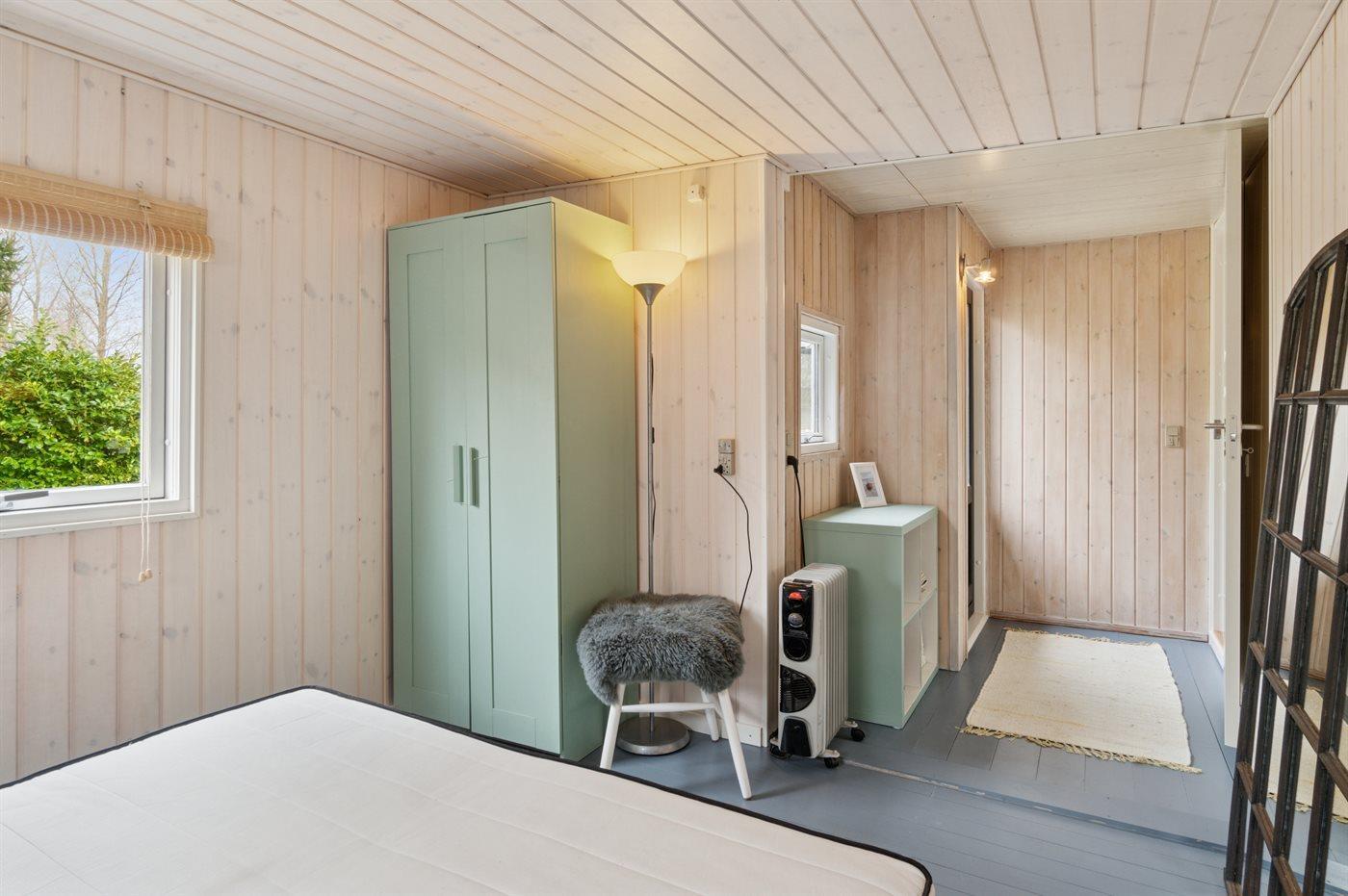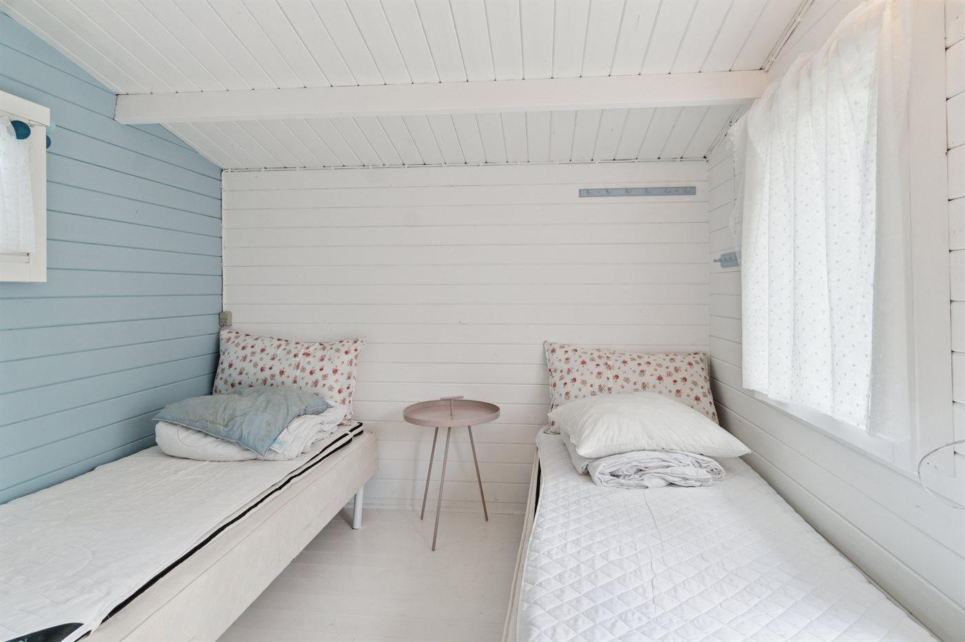 Der er i alt 3 soveværelser. Sovepladserne fordeler sig på: 2 sovepladser i dobbeltseng. 3 sovepladser i enkeltsenge. 2 sovepladser i sovesofa (dobbelt). 2 af disse sovepladser befinder sig i sommerhusets stue, og 2 befinder sig i anneks.