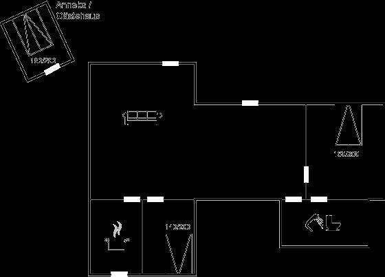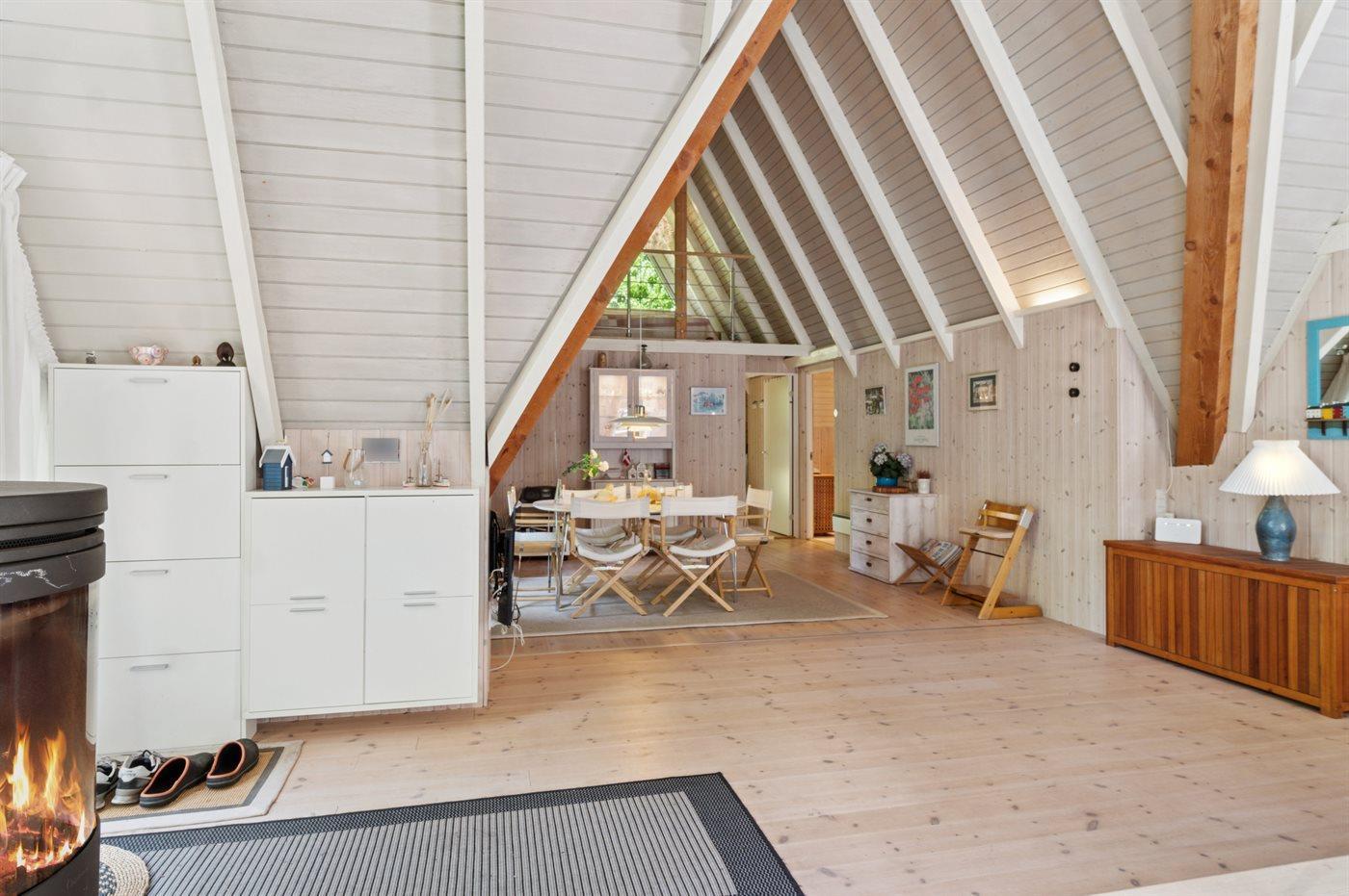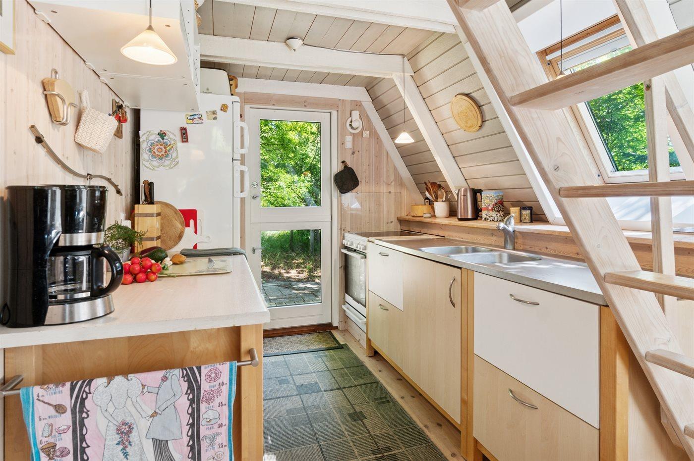 I huset er køkken, spiseplads og stue ud i et, og herfra er der udgang til den dejlige sydvendte terrasse. I selve huset er der 2 soveværelser med dobbeltsenge. Derudover er der 2 enkeltsenge på den højloftede hems. I annekset er der yderligere 2 sovepladser i dobbeltseng.