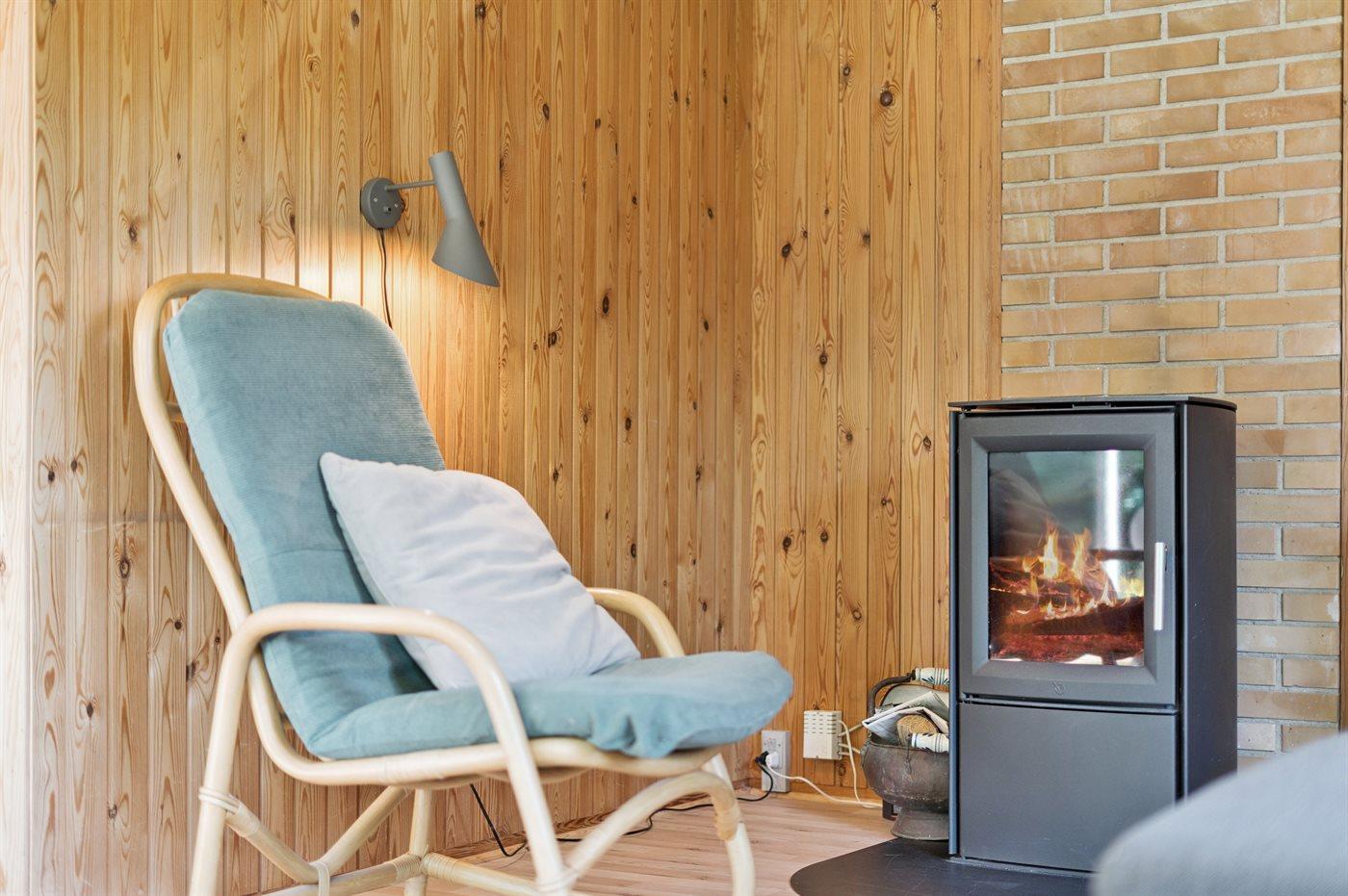 Huset indeholder et dejligt køkkenalrum, hvor der er rig mulighed for at hygge sig og være sammen. Fra den lyse stue med brændeovn er der udgang til terrassen og den store have, hvor der rig mulighed for at nyde det gode vejr og lege med børnene. Under den overdækkede del af terrassen er god mulighed for at finde skygge og læ og nyde de lange lyse sommeraftener. I selve huset er der 1 soveværelse med dobbeltseng. I det tilstødende anneks er der 2 dobbeltsenge med i alt 4 sovepladser.