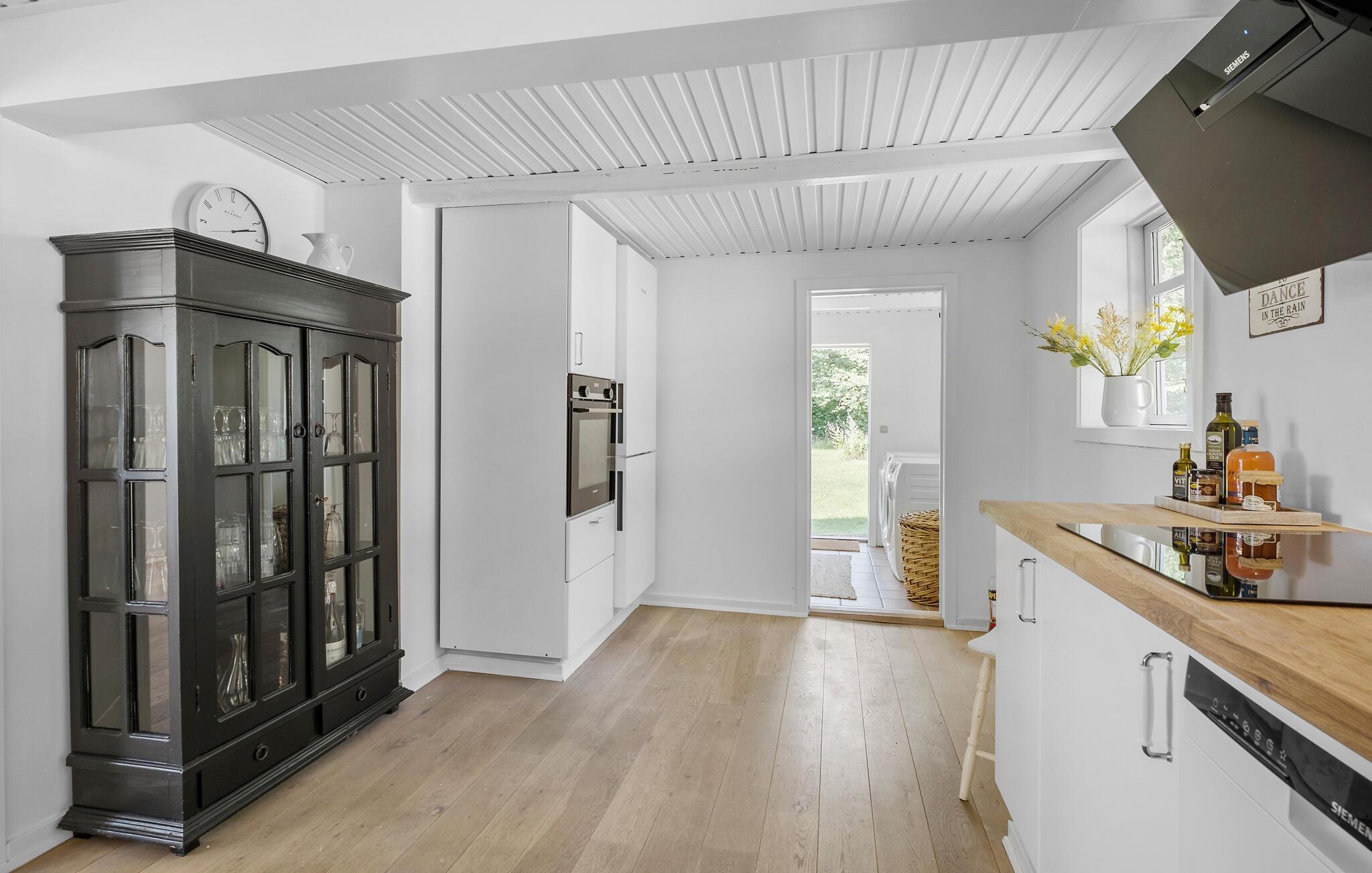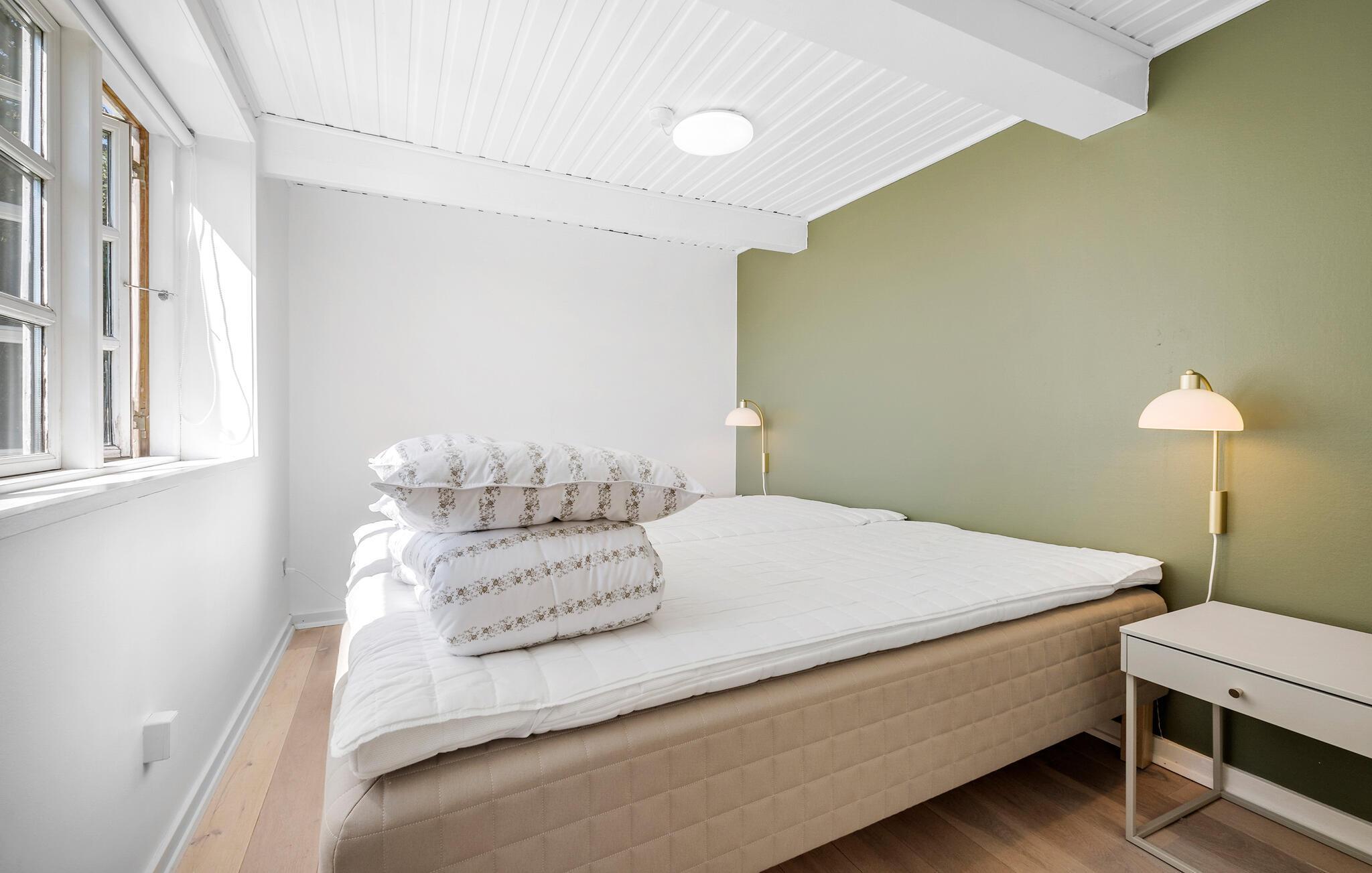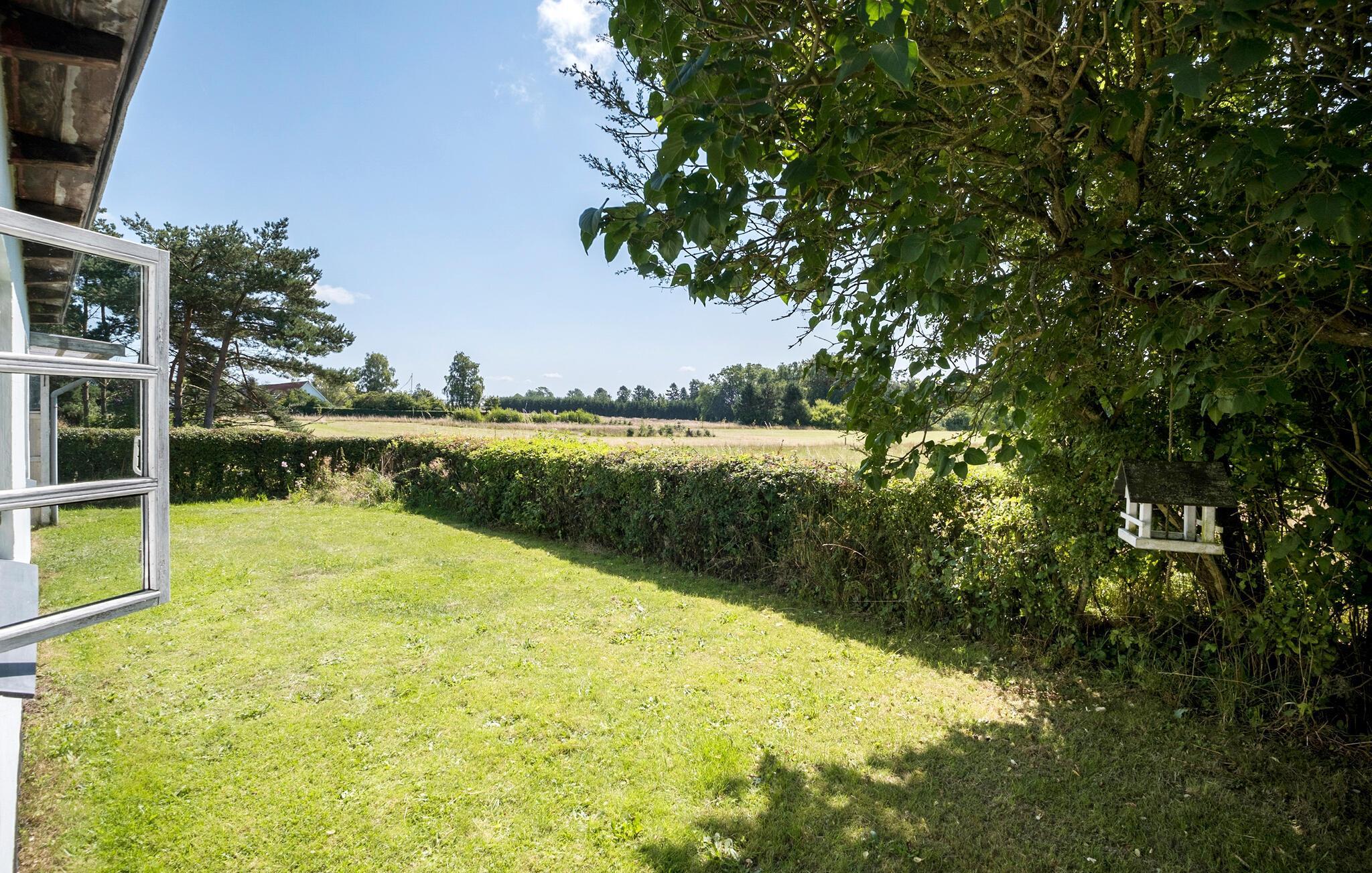 Pak kufferten og forkæl jer selv med en pause i dette skønne bornholmske sommerhus. Jeres kærligt indrettede feriehus i Nyker tilbyder hele familien det optimale tilflugtssted til afslappende dage omgivet af natur. Den lyse indvendige atmosfære skaber en behagelig og ubekymret atmosfære, hvor I vil føle jer godt tilpas. Begynd jeres dage med at tilberede en lækker morgenmad i det moderne, rummelige køkken. Det store spisebord i den lyse opholdsstue lægger op til at nyde måltider sammen og hyggelige timer sammen. Slap af på de komfortable siddepladser i stuen eller nyd solen på en af de mange terrasser i den store have. Lad jeres blik vandre over de omkringliggende marker og lad batterierne op i de fredelige omgivelser. Find jer godt til rette med en god bog i det indbydende loungeområde i haven eller nyd et glas vin til en dejlig middag udenfor. Besøg den berømte rundkirke Nyker, der betragtes som et vartegn for regionen, eller tag en tur til Rønne, Bornholms hovedstad, med de hyggelige gader og charmerende butikker. De nærliggende strande og skove lægger op til lange gå- og cykelture. Hammershus imponerende klipper eller det fascinerende naturfænomen Ekkohulerne er også et besøg værd.