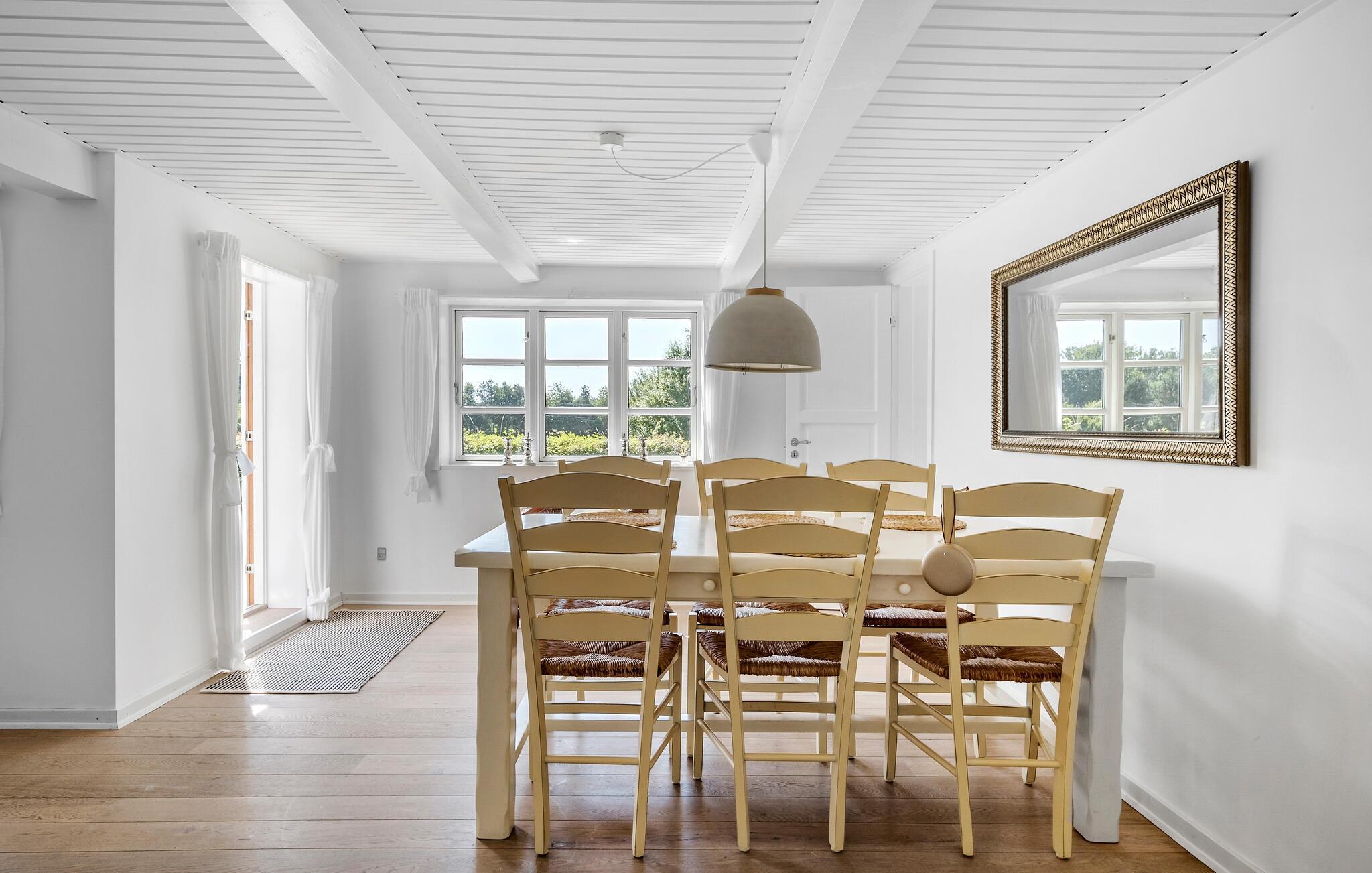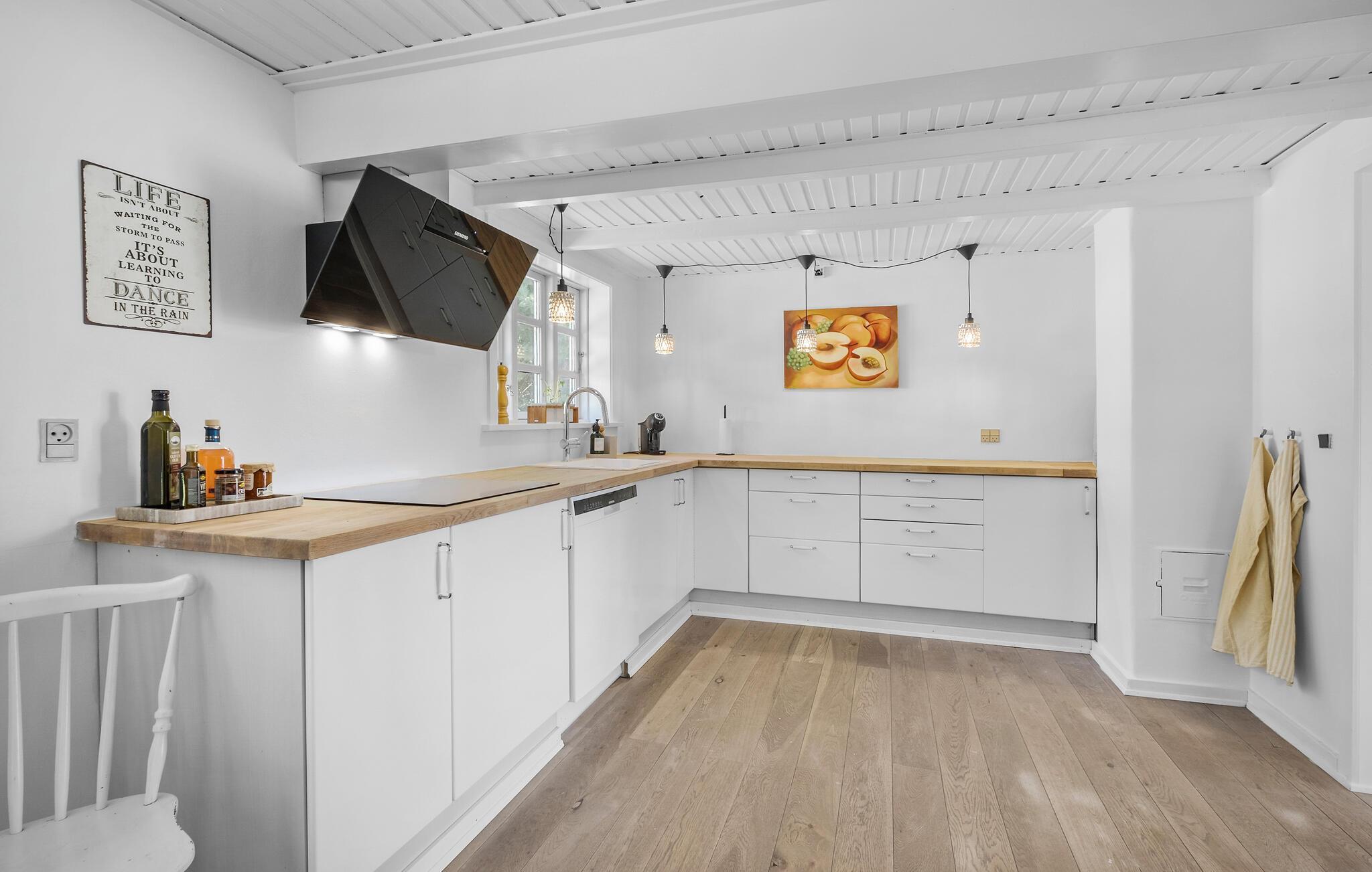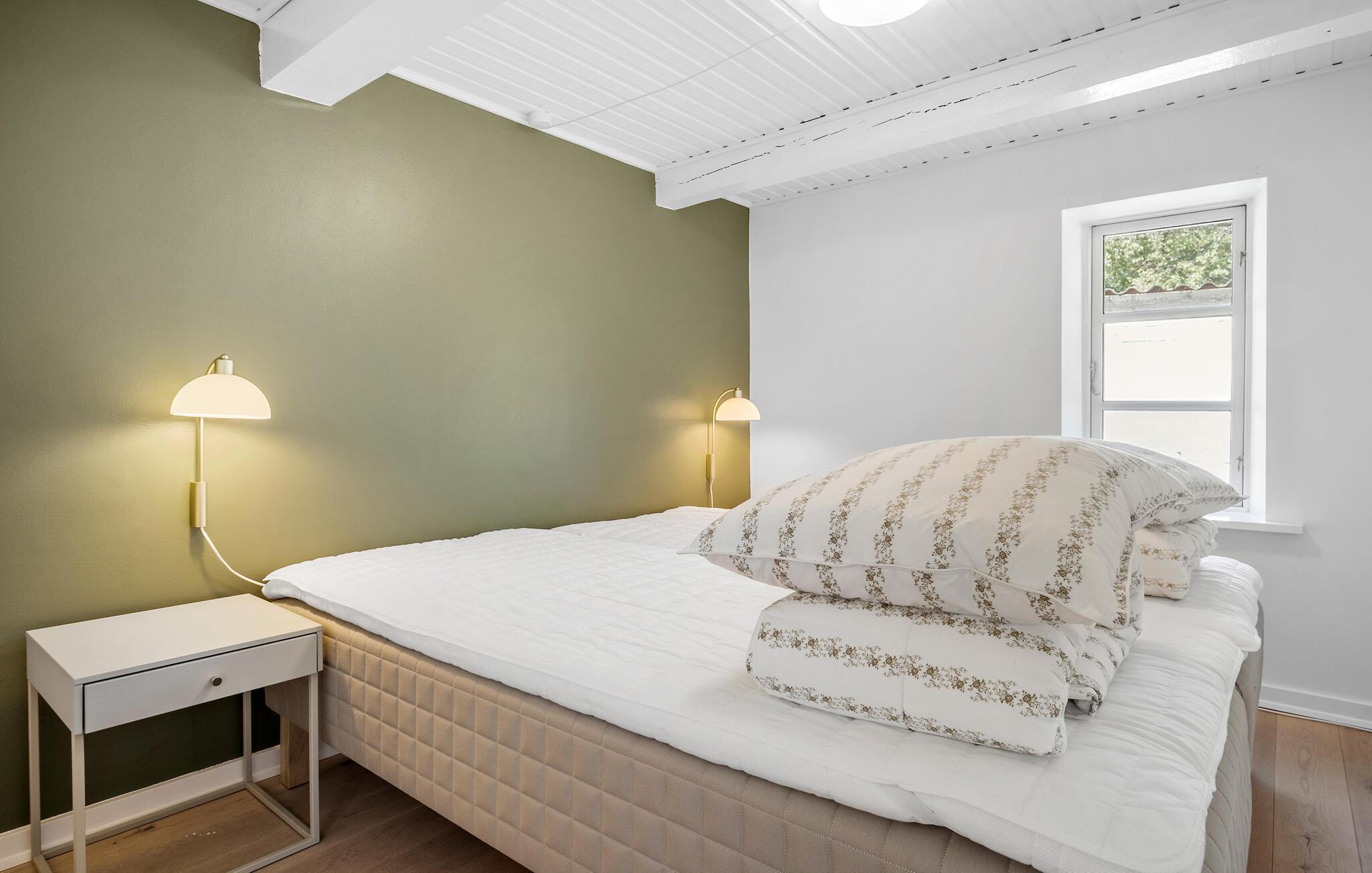 Pak kufferten og forkæl jer selv med en pause i dette skønne bornholmske sommerhus. Jeres kærligt indrettede feriehus i Nyker tilbyder hele familien det optimale tilflugtssted til afslappende dage omgivet af natur. Den lyse indvendige atmosfære skaber en behagelig og ubekymret atmosfære, hvor I vil føle jer godt tilpas. Begynd jeres dage med at tilberede en lækker morgenmad i det moderne, rummelige køkken. Det store spisebord i den lyse opholdsstue lægger op til at nyde måltider sammen og hyggelige timer sammen. Slap af på de komfortable siddepladser i stuen eller nyd solen på en af de mange terrasser i den store have. Lad jeres blik vandre over de omkringliggende marker og lad batterierne op i de fredelige omgivelser. Find jer godt til rette med en god bog i det indbydende loungeområde i haven eller nyd et glas vin til en dejlig middag udenfor. Besøg den berømte rundkirke Nyker, der betragtes som et vartegn for regionen, eller tag en tur til Rønne, Bornholms hovedstad, med de hyggelige gader og charmerende butikker. De nærliggende strande og skove lægger op til lange gå- og cykelture. Hammershus imponerende klipper eller det fascinerende naturfænomen Ekkohulerne er også et besøg værd.