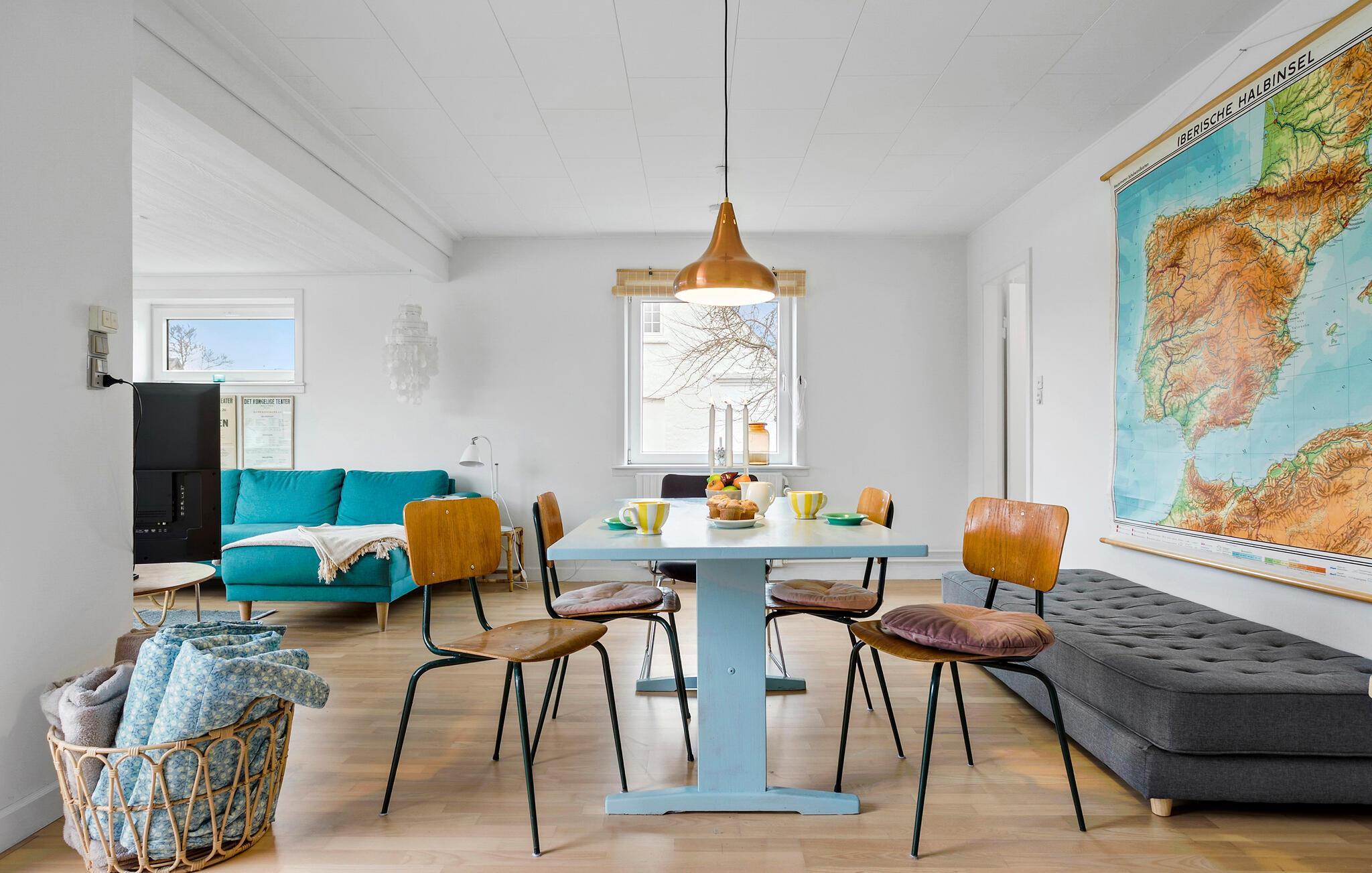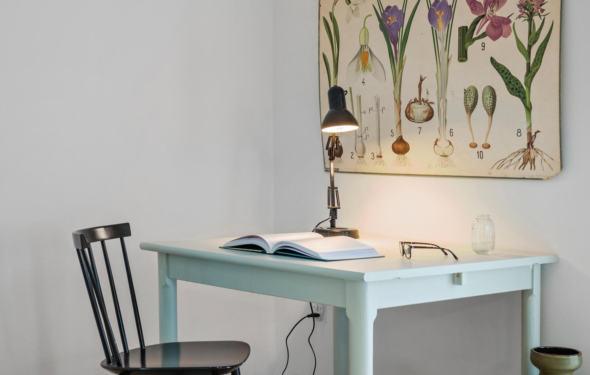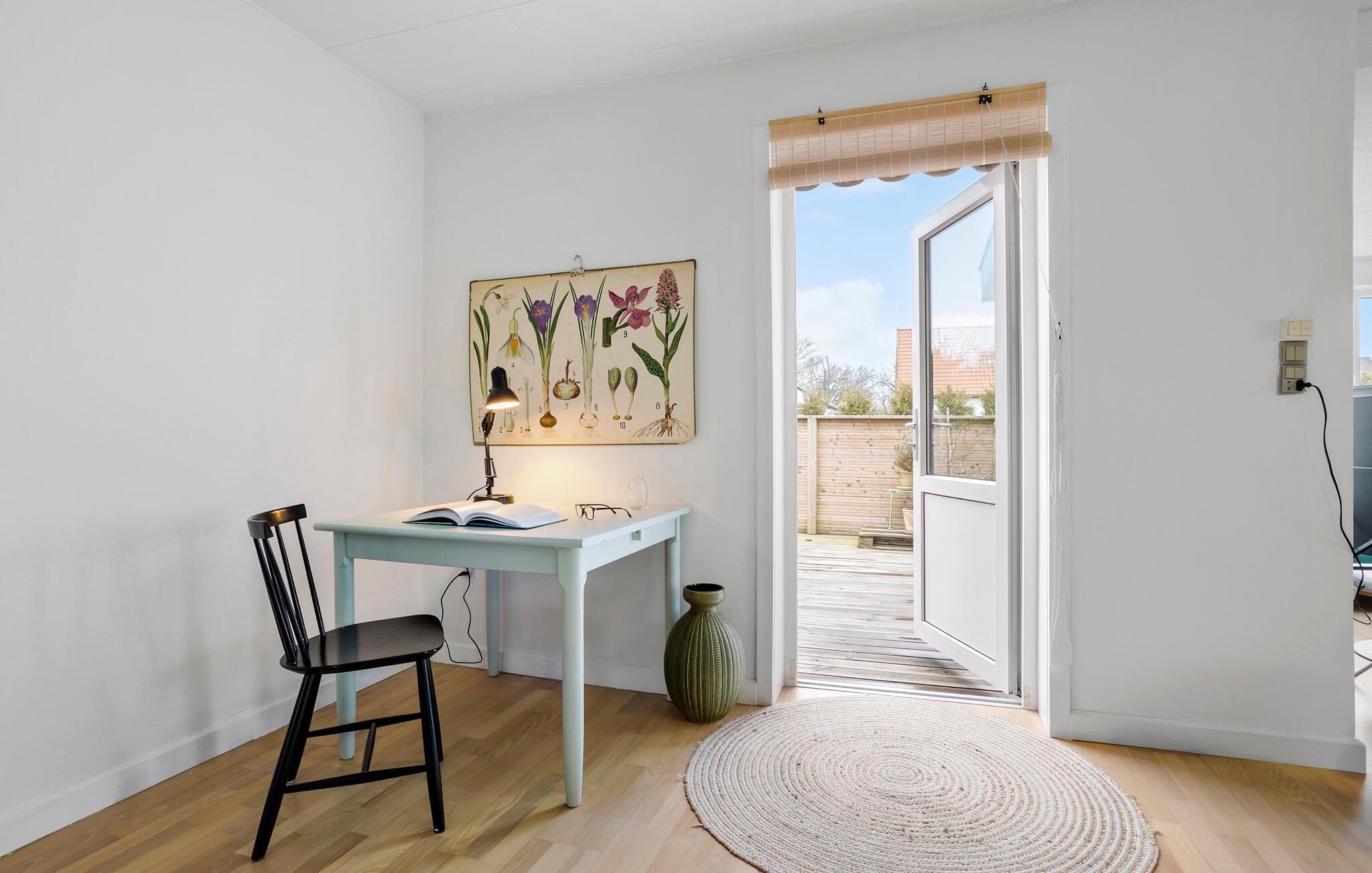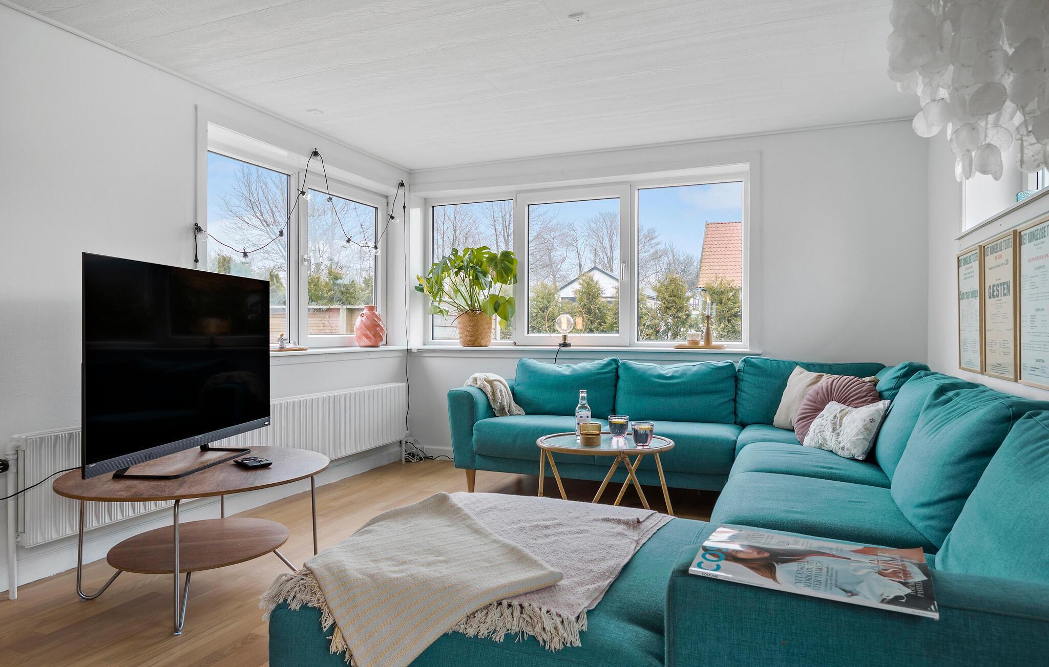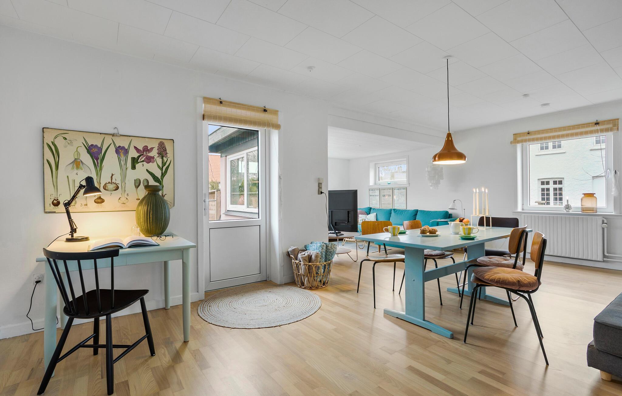 De bløde pasteltoner, smagfulde møbler og fine indretningsløsninger skaber en hyggelig og stilfuld boligatmosfære i dette lyse sommerhus. Tilbered lækre måltider i det indbydende køkken og nyd dem i den hyggelige stue. Afslut aftenen med en god bog i læsehjørnet, slap af med en film eller hyg jer med en spilleaften i den behagelige sofa.