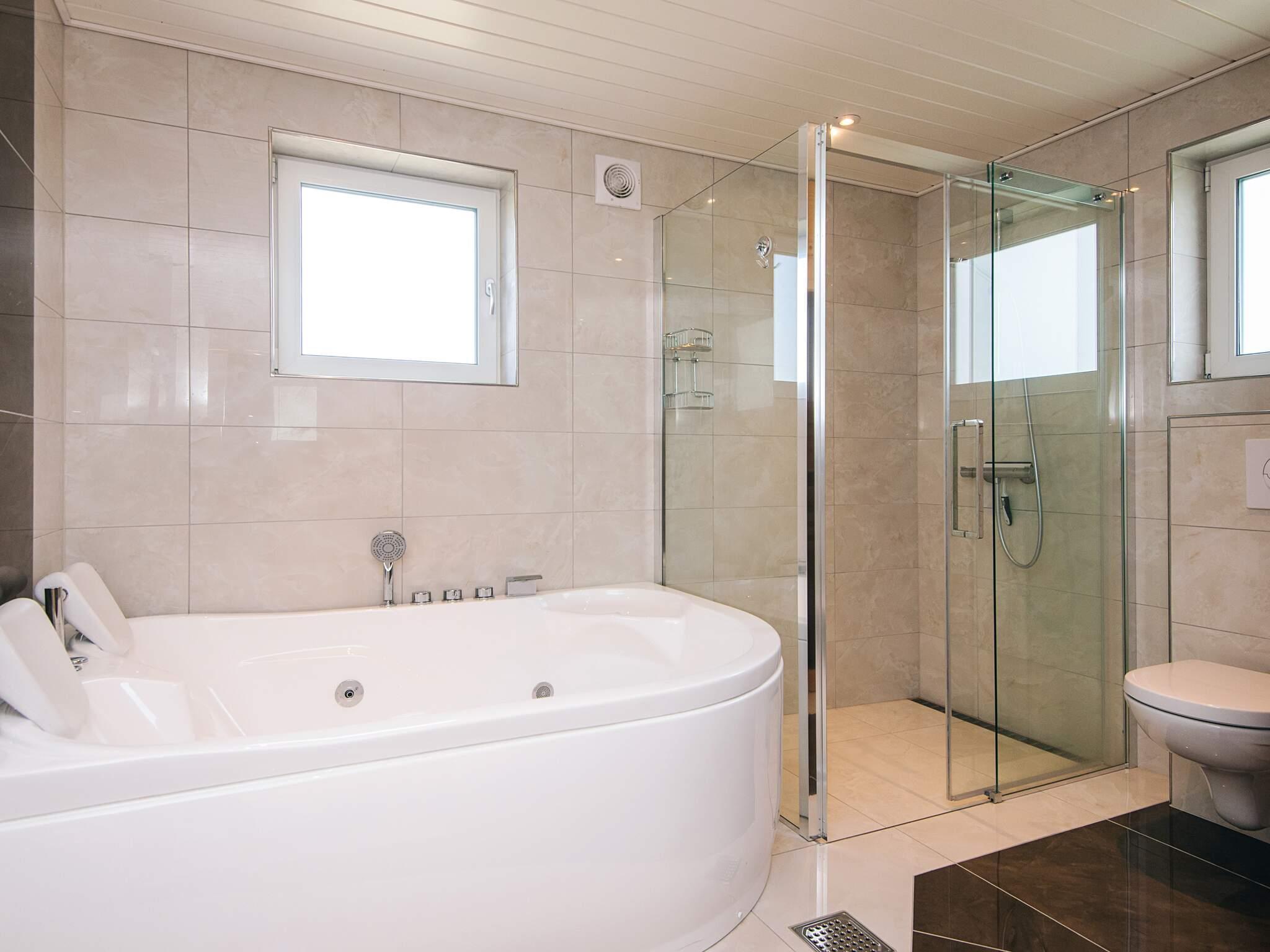 Der er 3 badeværelser med gulvvarme, hvilket sikrer en behagelig start på dagen uanset årstiden. Der er både vaskemaskine og tørretumbler til rådighed, så du kan friske dine håndklæder op under din ferie. De energieffektive luft-til-vand og luft-til-luft varmepumper sikrer en behagelig, energibesparende temperatur året rundt. Med 4 soveværelser, 2 med dobbeltsenge og 2 med enkeltsenge, er der god plads til venner og familie. Du kan dele pladsen som du ønsker og få en god nats søvn i de komfortable senge. Læg mærke til, hvordan den friske nordsøluft gør underværker for din nattesøvn.