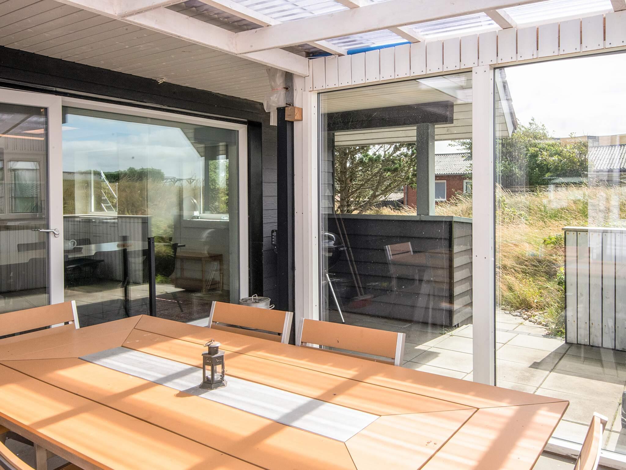 Sommerhuset i Nymindegab har flere terrasser, der passer til alle behov. Du kan nyde solen på den åbne terrasse eller oppe på den store tagterrasse og finde skygge og læ på den afskærmede, lukkede eller overdækkede terrasse. De naturlige grunde giver børn plads til at lege og udforske.