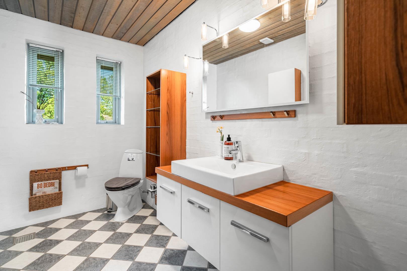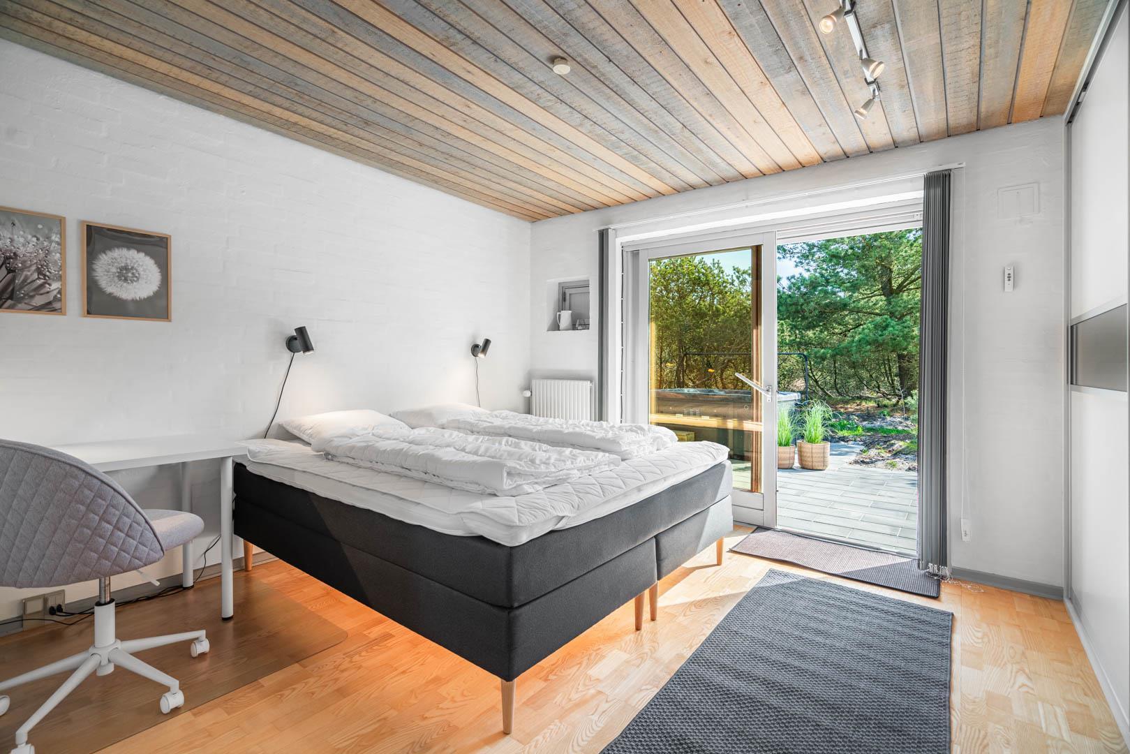 Sommerhuset har fire soveværelser med rolige farver og enkel indretning, som indbyder til afslapning. To badeværelser, begge med gulvvarme, giver ekstra komfort, især når I rejser flere sammen.