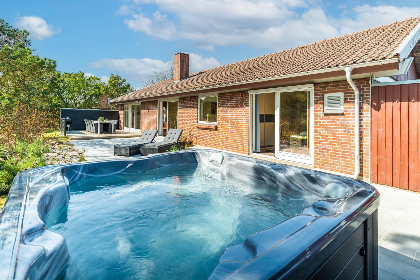 Et særligt højdepunkt er den udendørs spa, hvor I kan nyde det varme vand og udsigten til naturen året rundt. En udendørs bruser giver ekstra komfort på varme sommerdage.