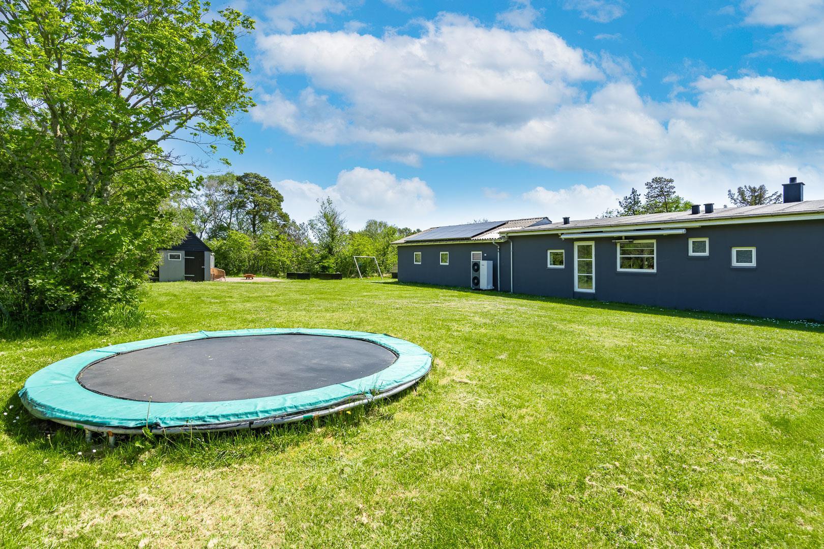 Grunden omkring sommerhuset er indhegnet, så I trygt kan have hunden med på ferie. Her er god plads til leg og afslapning, mens I nyder roen og privatlivet omkring sommerhuset.