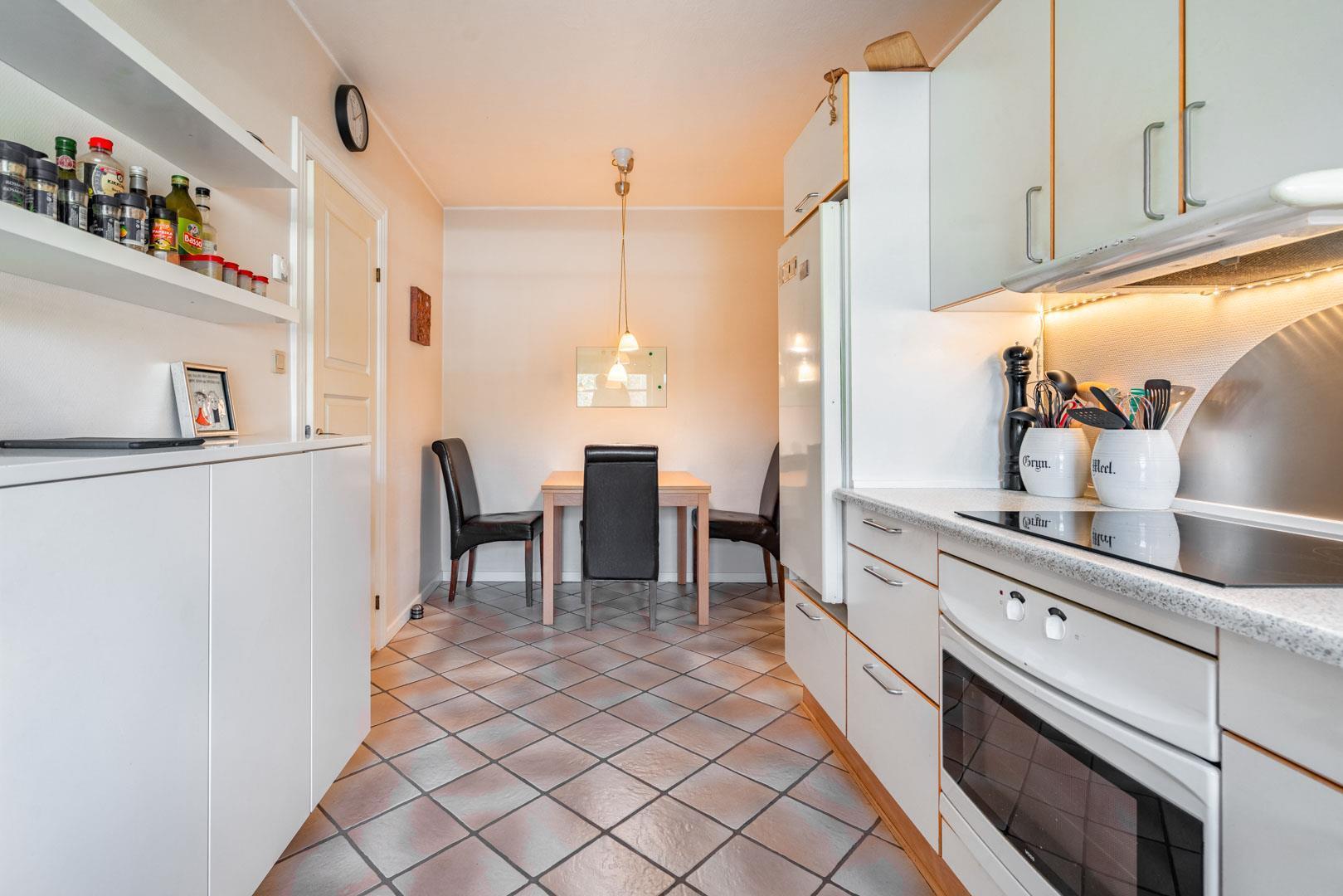 Det åbne køkken er funktionelt og veludstyret, så madlavningen bliver en fornøjelse. Her finder I opvaskemaskine, god bordplads og alt, hvad I skal bruge til at tilberede lækre måltider sammen.