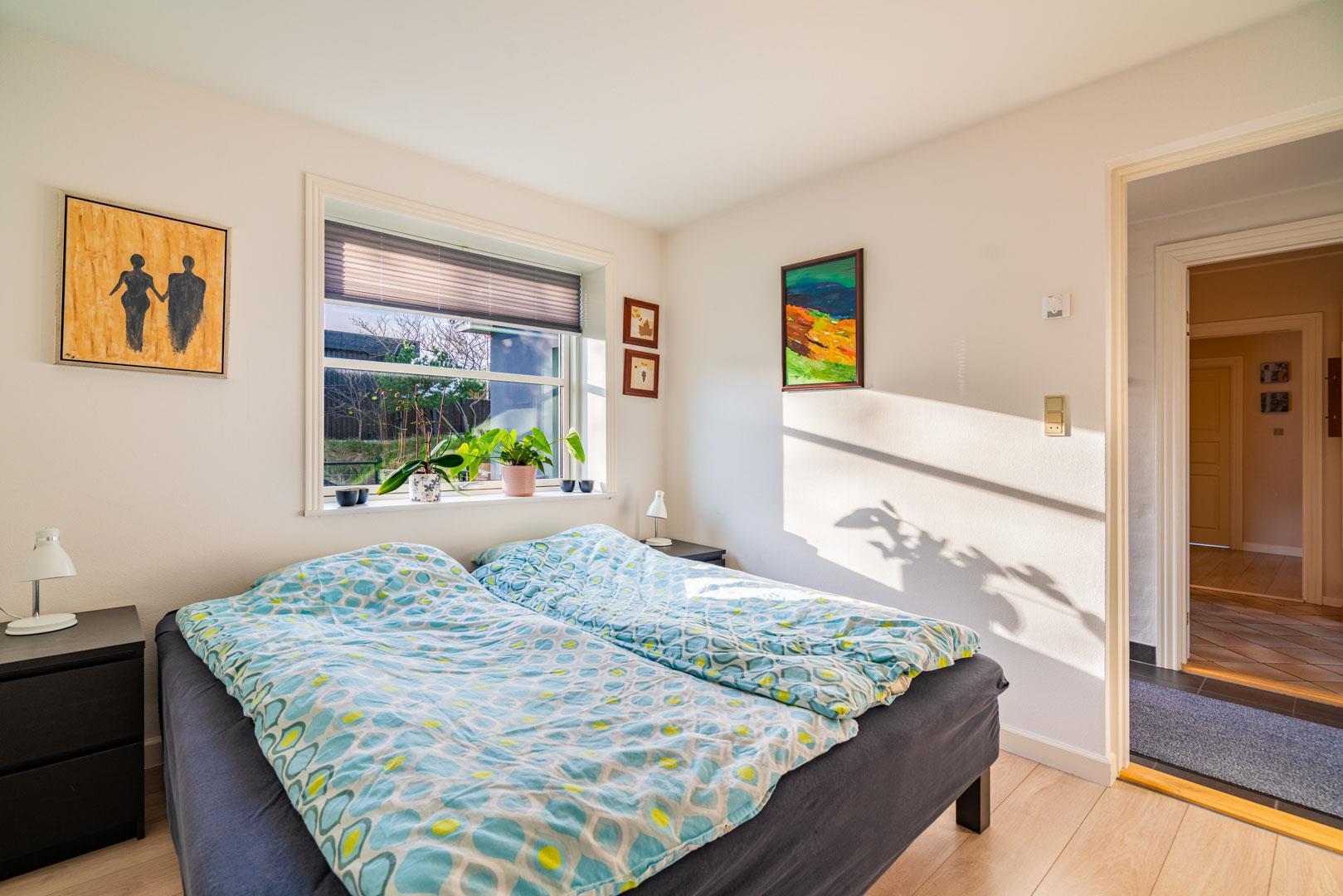 Der er to soveværelser – begge indrettet med fokus på hygge og god nattesøvn. Sommerhuset har desuden to badeværelser med gulvvarme, så dagen altid kan begynde på den varme og behagelige måde.