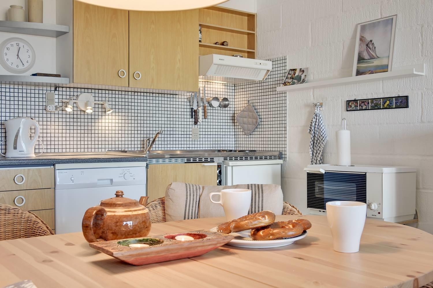 Køkkenet er fuldt udstyret med opvaskemaskine, keramisk komfur og køleskab – alt, hvad I skal bruge til nem madlavning på ferien.