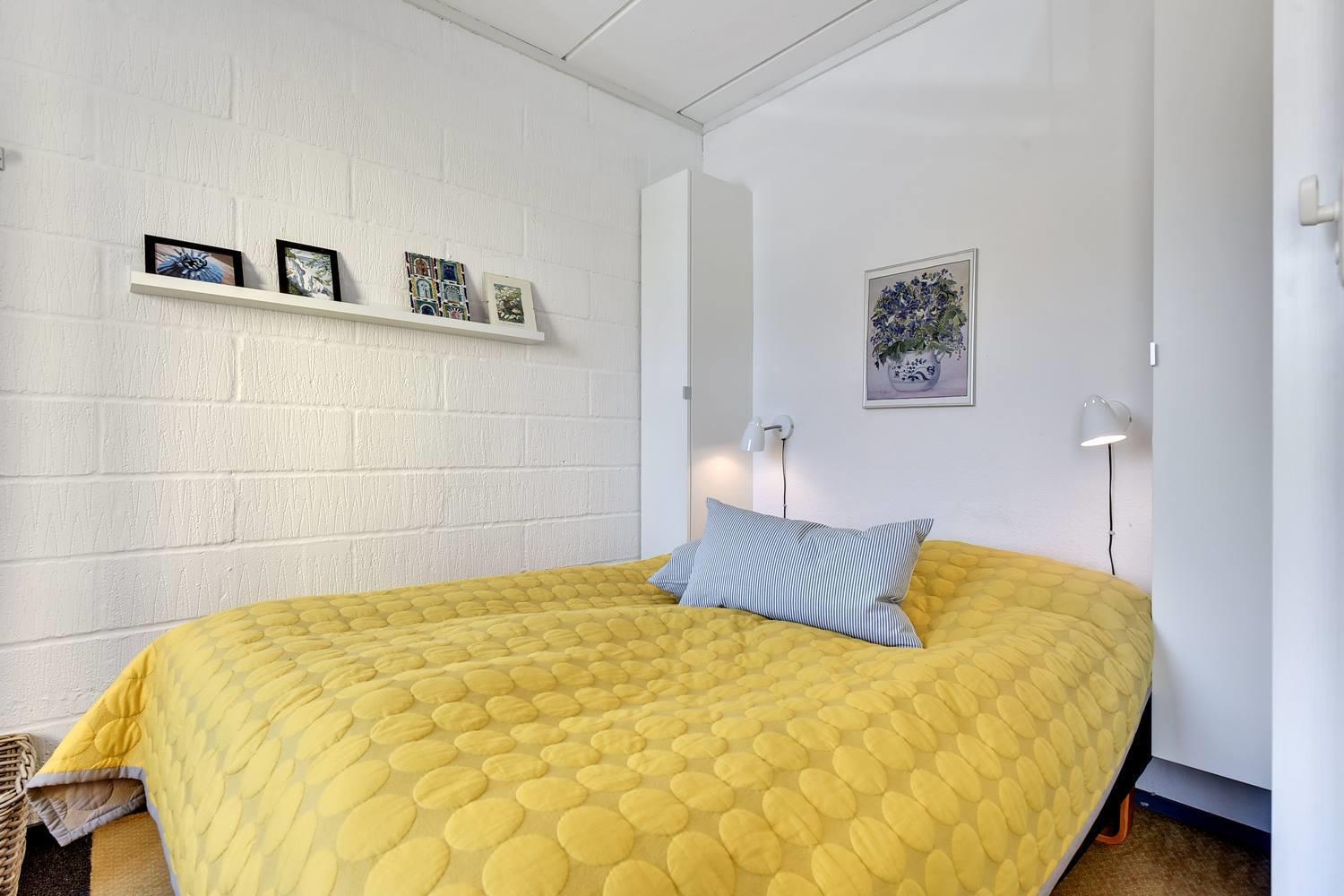 I soveværelset står en komfortabel dobbeltseng, og badeværelset har gulvvarme, som giver en ekstra behagelig oplevelse på kølige dage.