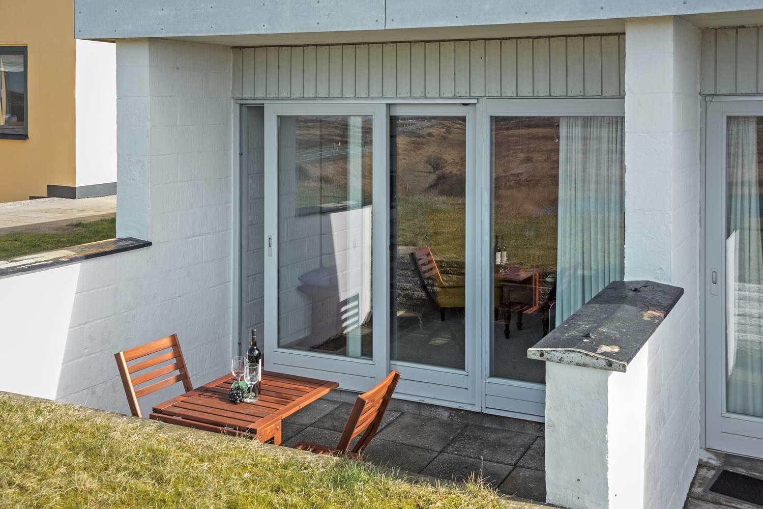 Udenfor finder I en lukket terrasse med læ og privatliv – perfekt til en stille morgenkaffe i solen, en god bog eller et glas vin i solnedgangen.