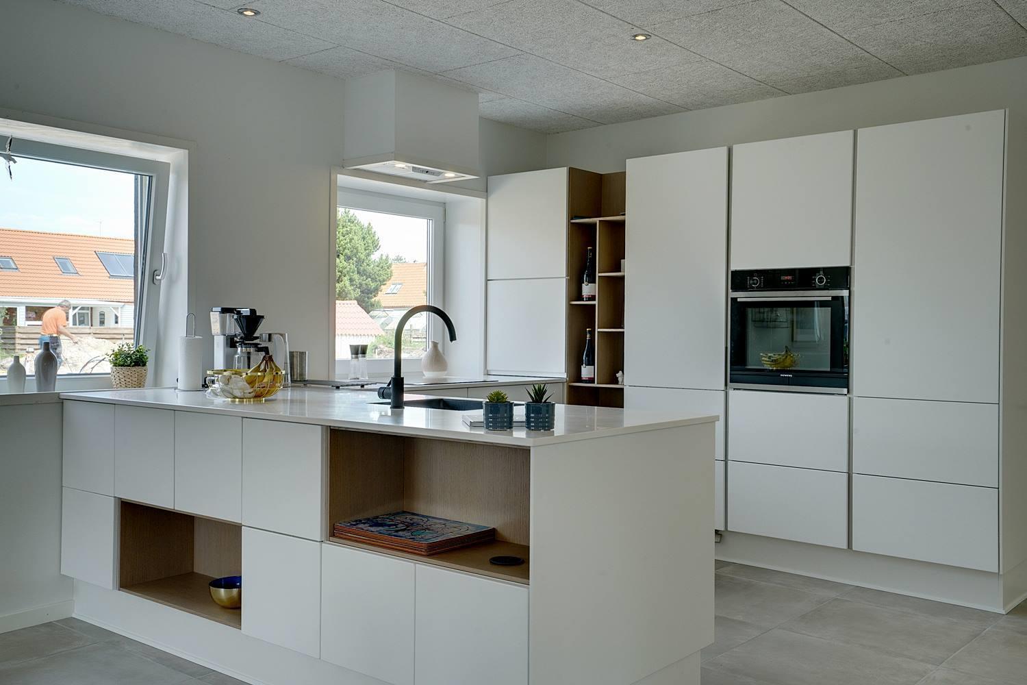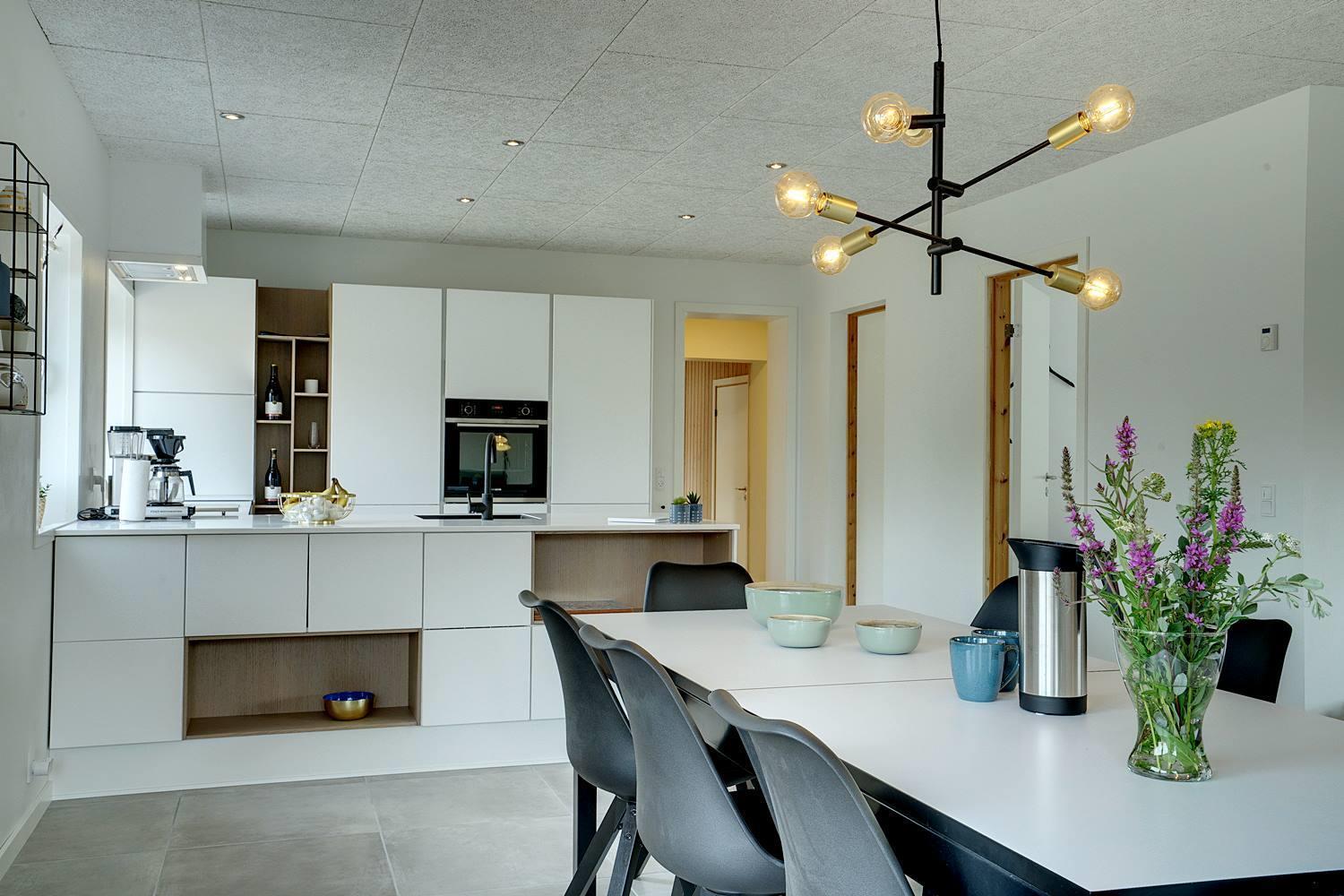 Køkkenet er veludstyret med alt, hvad der skal til for at lave lækre måltider sammen – inklusive opvaskemaskine. Rundt om spisebordet kan I samles til morgenmad med udsigt til naturen eller en hyggelig middag, når dagen går på hæld.