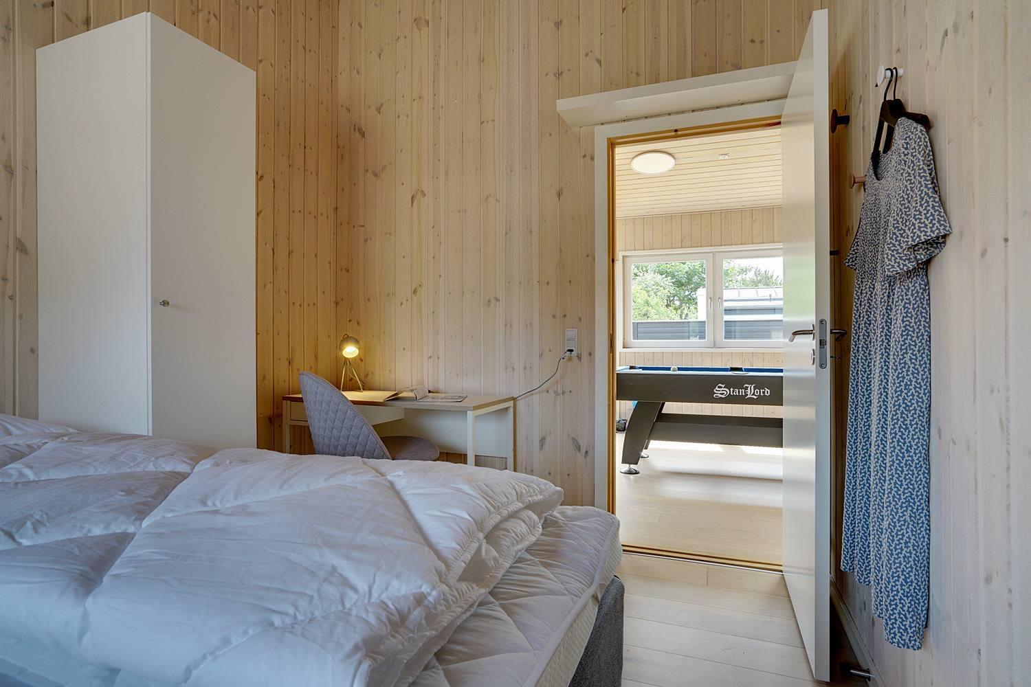 Der er fire soveværelser med god opbevaringsplads og en enkel, afslappende indretning, der sikrer en god nattesøvn. To moderne badeværelser gør sommerhuset ideelt til større familier eller vennegrupper – begge badeværelser er lyse, har gulvvarme og er indrettet i nordisk stil.