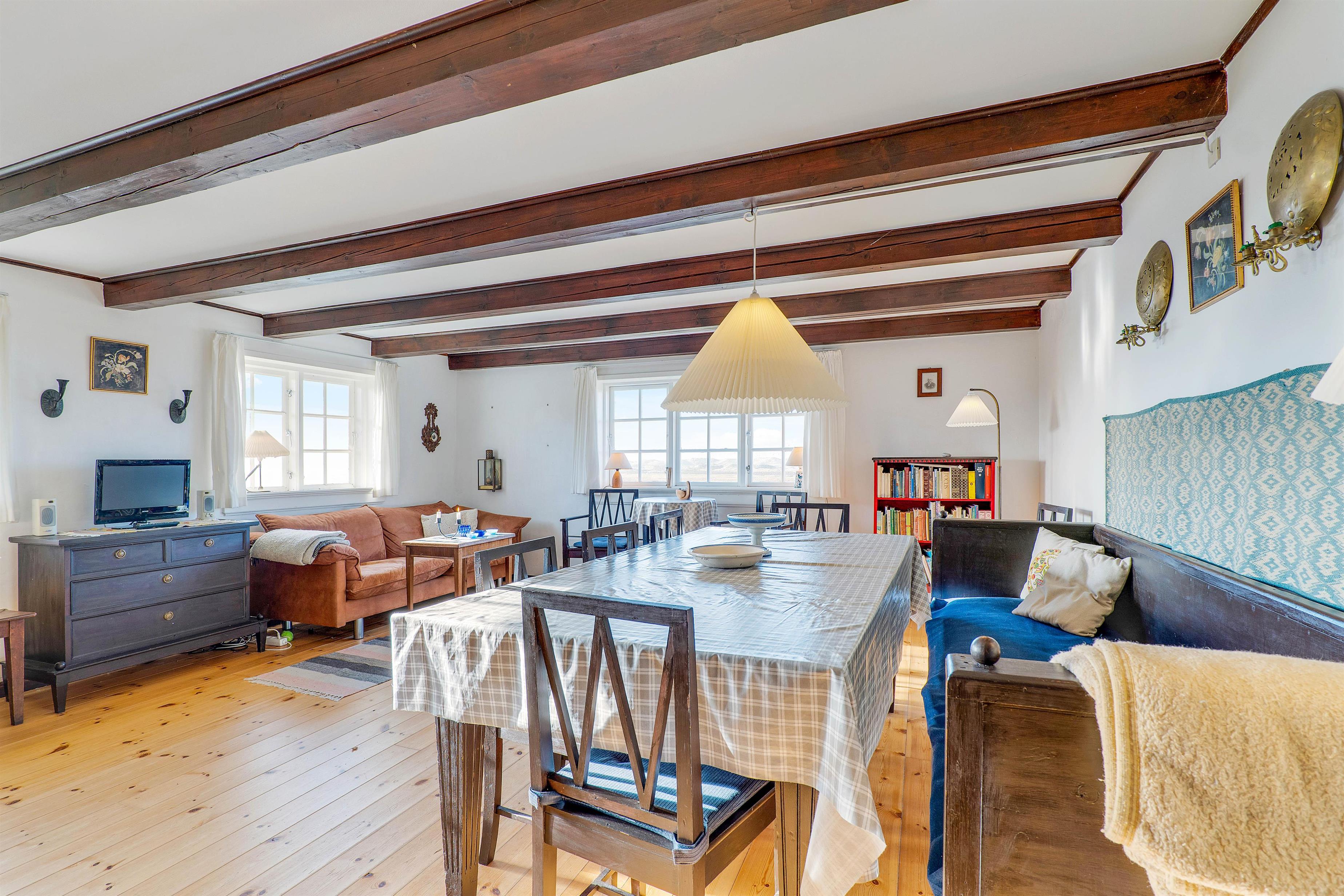 Fra sommerhusets terrasse kan I nyde de mest spektakulære solnedgange over fjorden. Med et glas vin i hånden eller en varm kop kaffe i morgentimerne er dette det perfekte sted at koble af, mens I lader blikket vandre over den rolige vandflade og de omkringliggende klitter. Her er stilhed og ro – intet forstyrrer den fredelige stemning.
