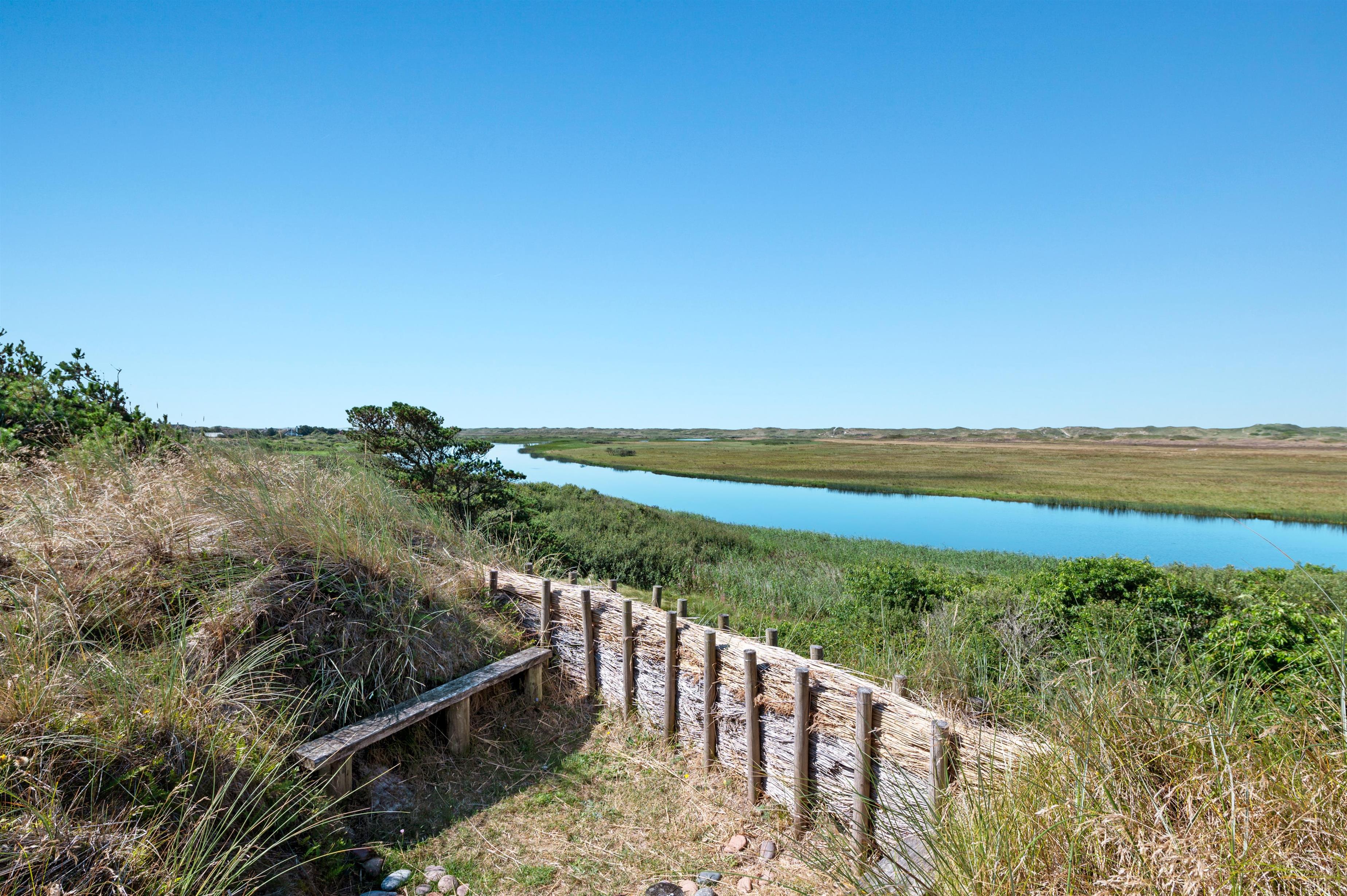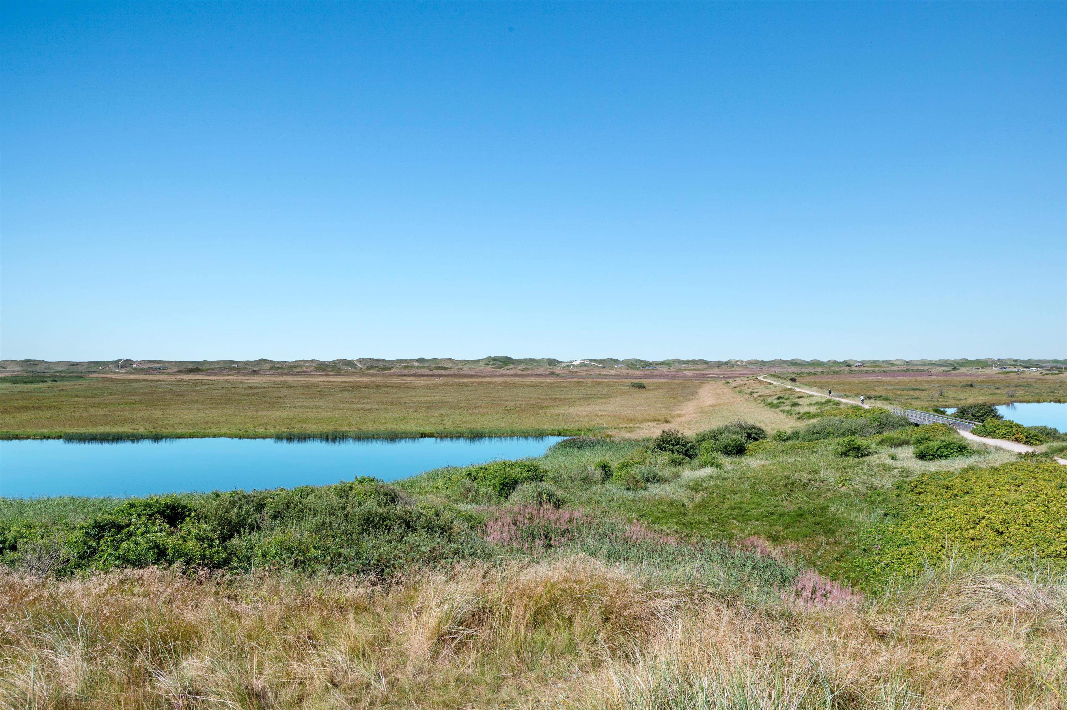 Fra sommerhuset har I en fantastisk udsigt over den sydlige del af Ringkøbing Fjord, og hedelandskabet med klitterne i baggrunden. Feriehuset er beliggende tæt på naturcykelstien, som fører jer fra Nymindegab i syd til Søndervig i nord. Så medbring jeres cykler til ferien og nyd området.