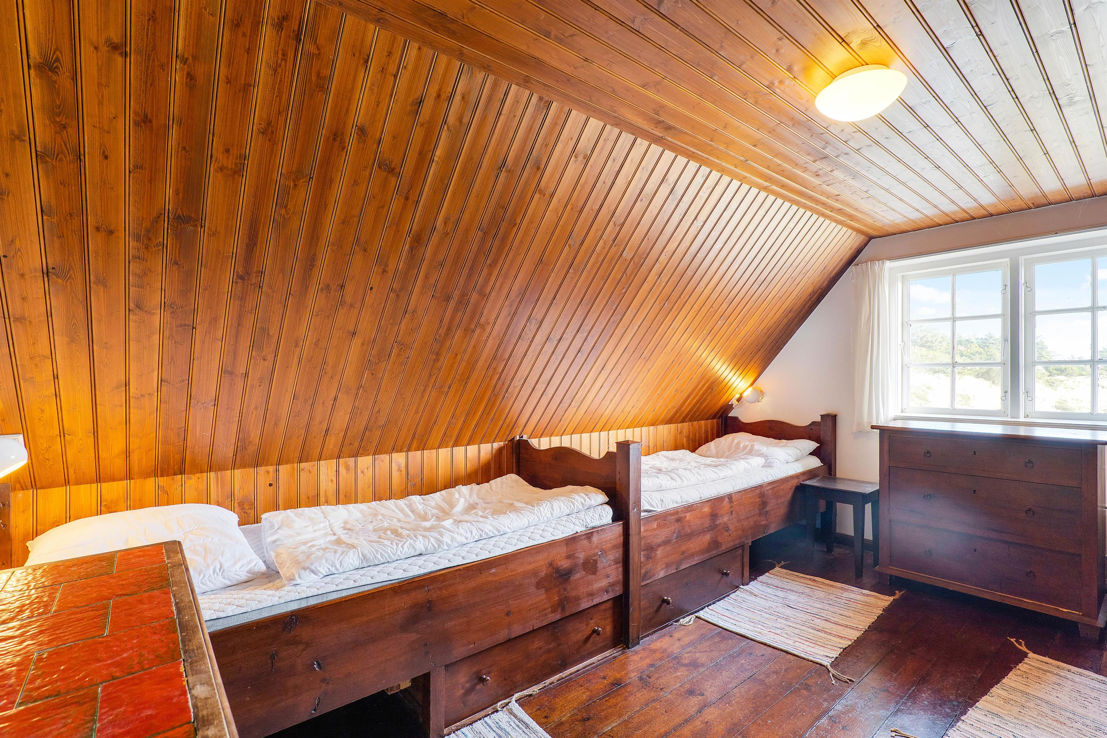 Soveværelserne er med behagelige trægulve. Det ene soveværelse har dobbeltseng og de resterende værelser har enkeltsenge.