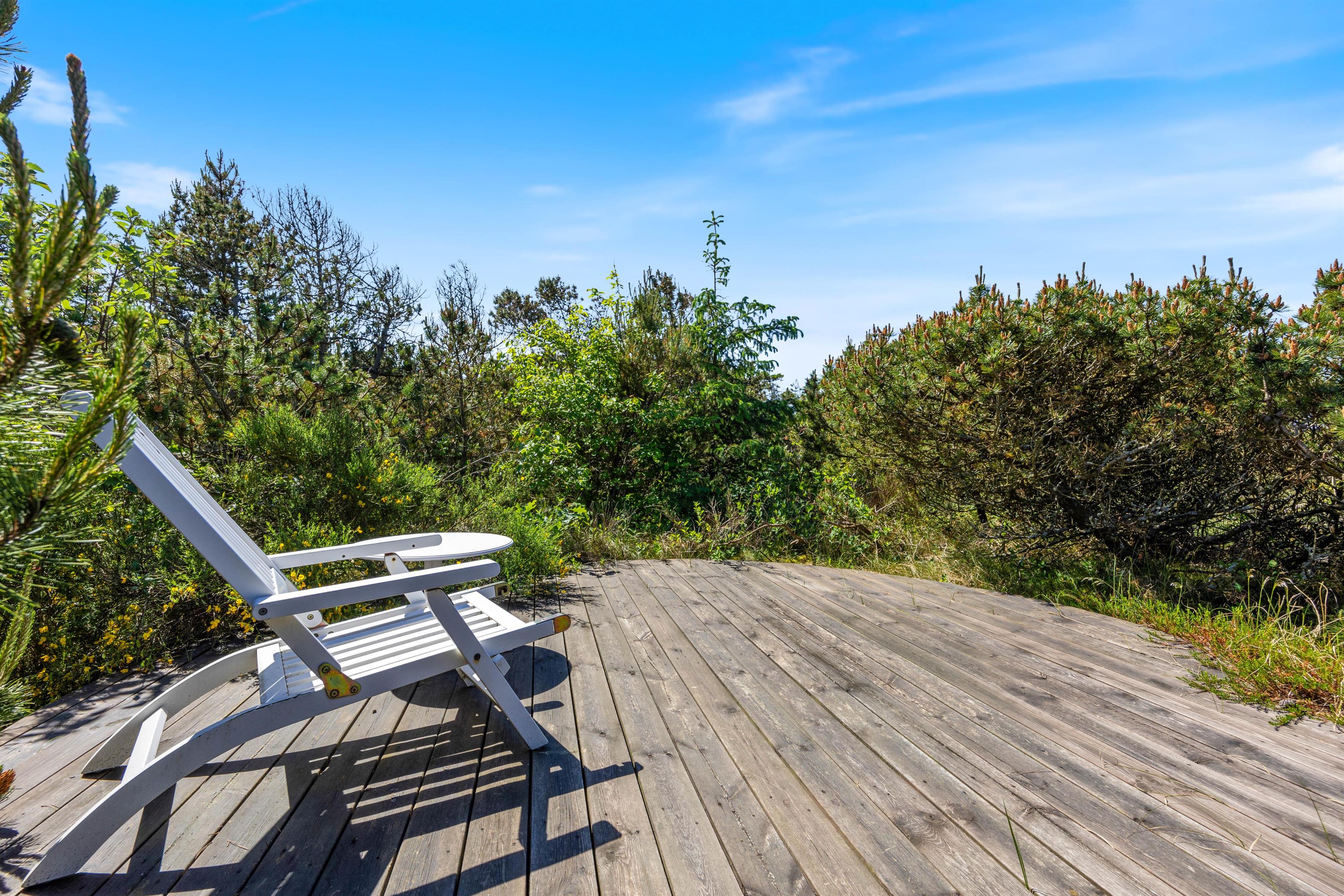 På Redningsvejen 39 i Nymindegab ligger dette 2+ stjernede sommerhus fra 1945 skønt placeret på en bakketop. Fra sommerhuset har I udsigt ud over klitlandskabet, der ligger mod vest.