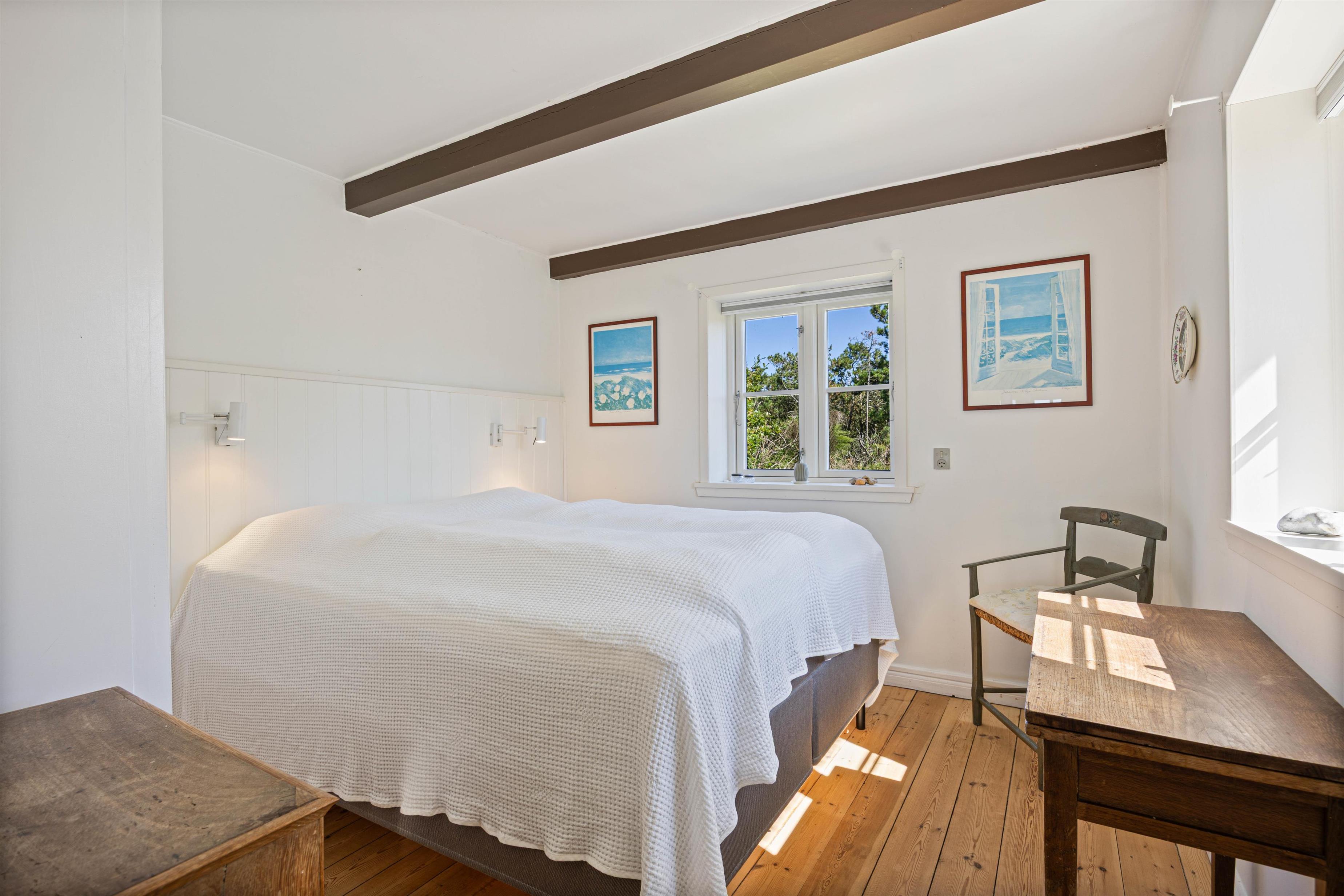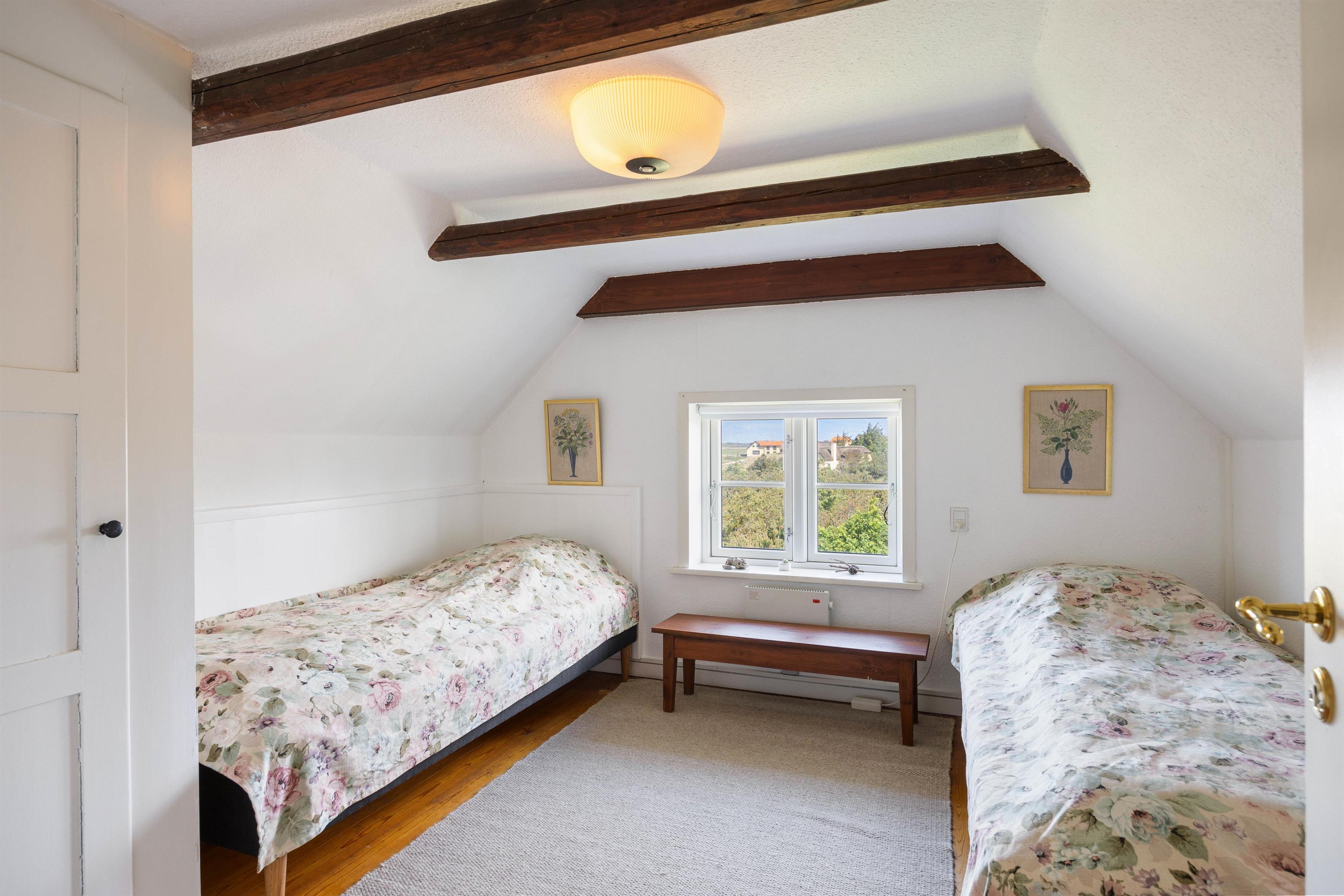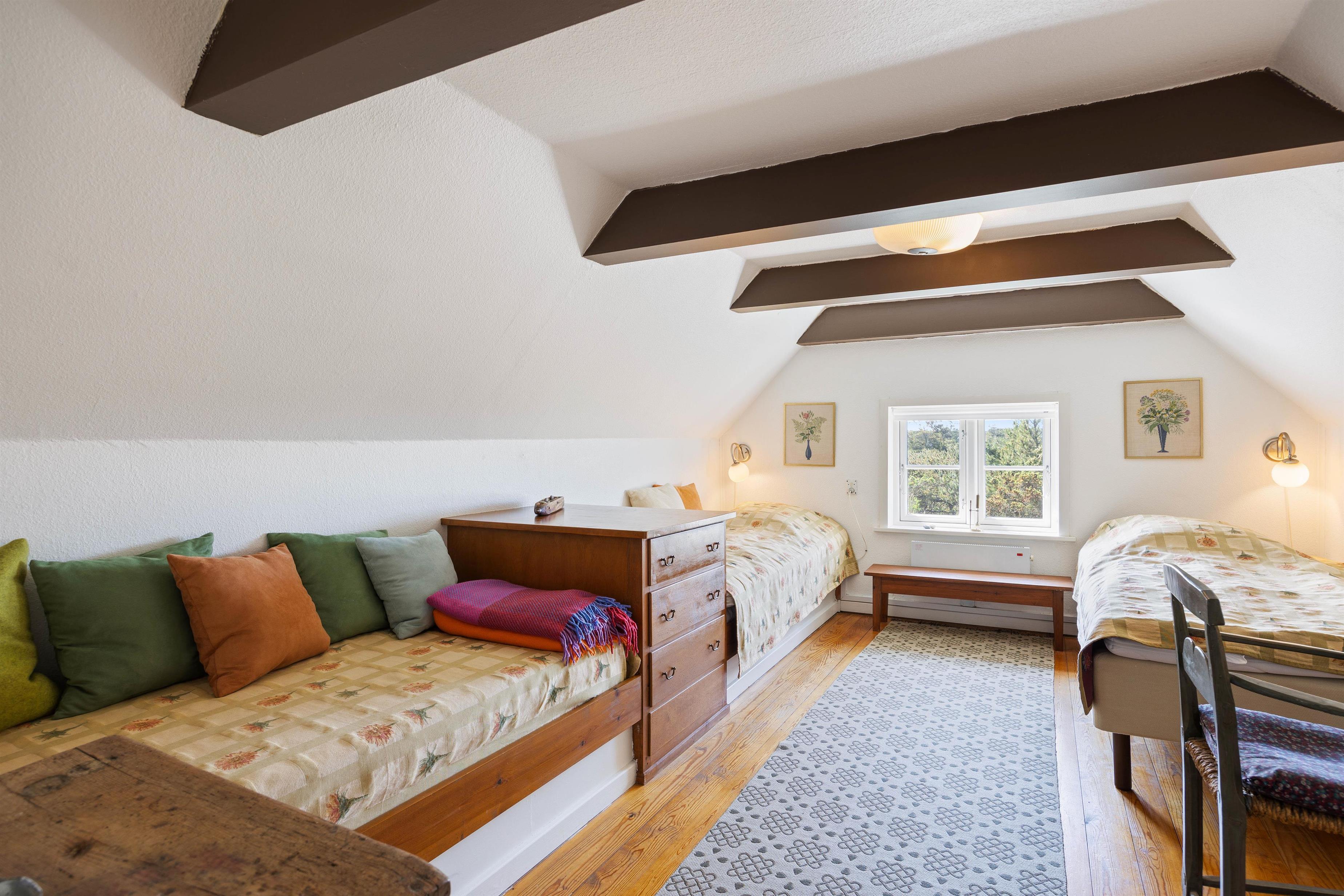 I stueplan ligger også sommerhusets badeværelse med gulvvarme samt et soveværelse indrettet med dobbeltseng. På 1. sal finder I de resterende sovepladser fordelt på 2 værelser med enkeltsenge. Vær opmærksom på, at der på 1. salen er lavt til loftet.