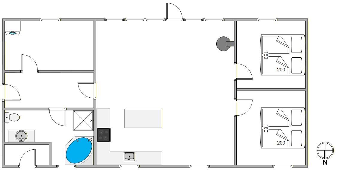 Der er 2 separate soveværelser med plads til i alt 4 personer. Begge værelser er indrettet med komfortable dobbeltsenge, så I kan glæde jer til en god nats søvn efter en oplevelsesrig dag ved Vesterhavet. Badeværelset fremstår lyst og stilfuldt med både brusebad, toilet og et afslappende spabad, som er det perfekte sted at koble af og lade sjælen finde ro.