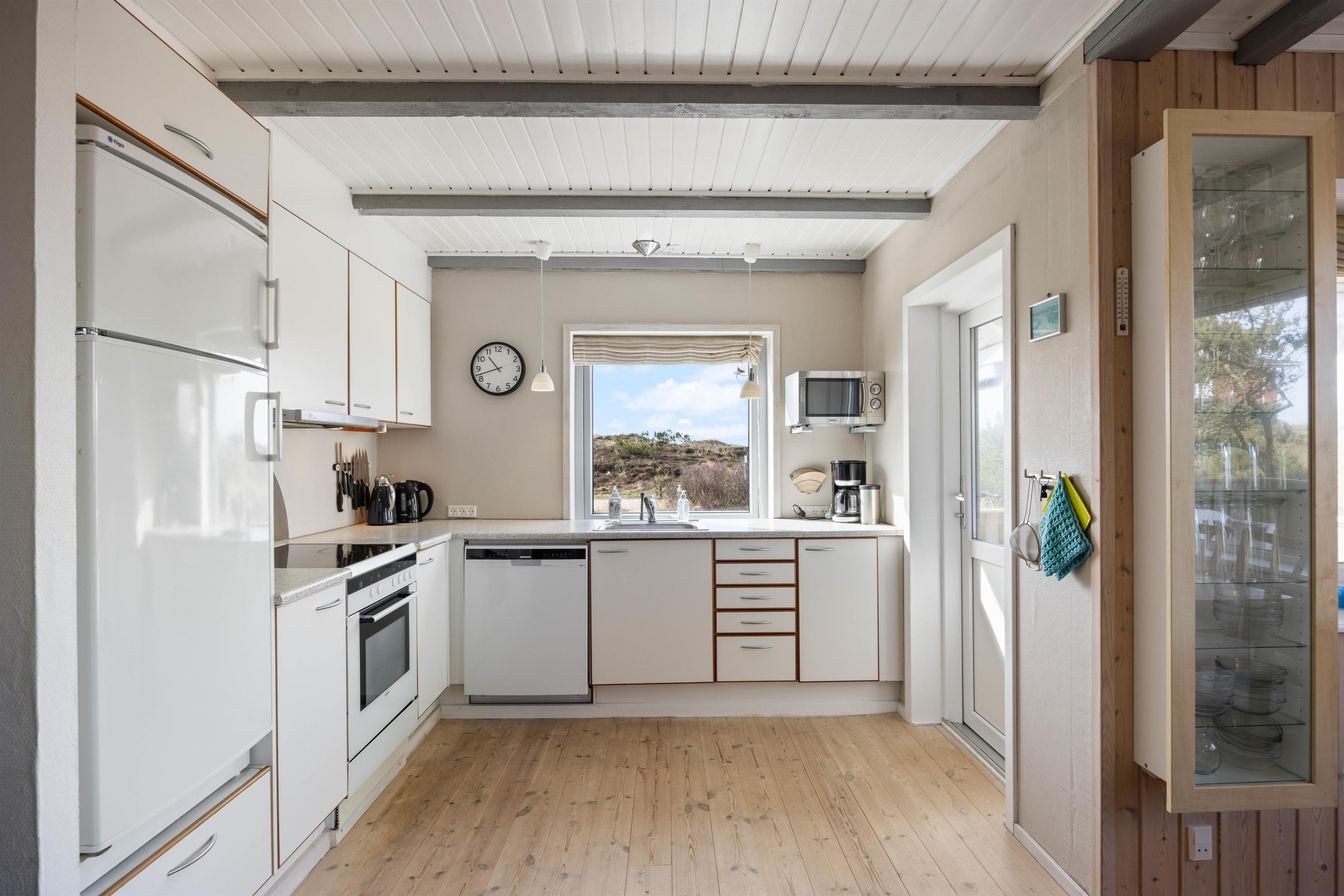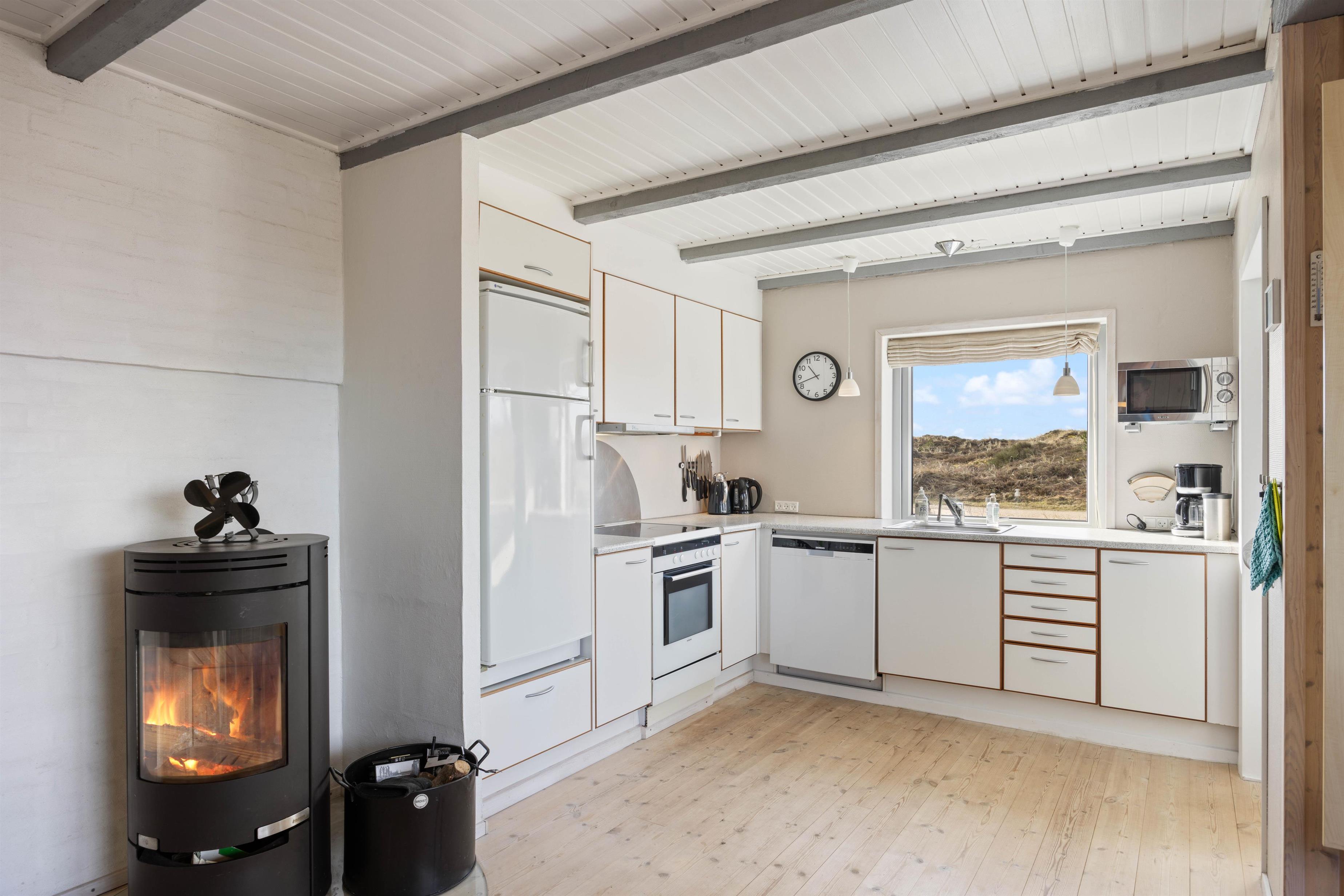 Sommerhuset er udstyret med det nødvendige for en god og behagelig ferie. Her er der en brændeovn til kølige aftener, en opvaskemaskine samt vaskemaskine og tørretumbler til at holde tøjet friskt og tørt. Med en energibesparende varmepumpe kan I justere temperaturen, så den passer til jeres behov.