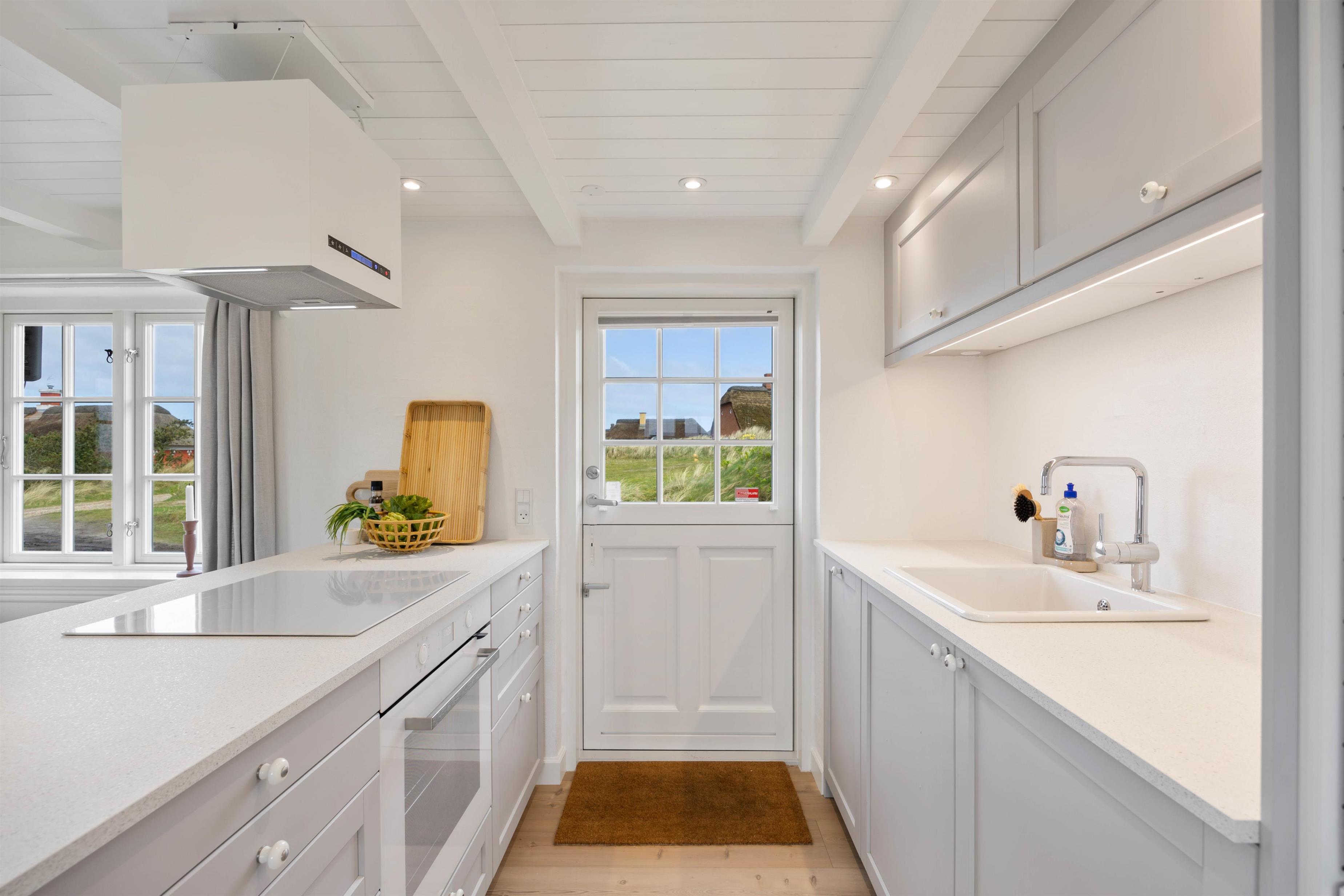 Indretningen er rigtig hyggelig og indbydende med en gennemgående stil i hele feriehuset. Her vil I hurtig føle jer hjemme. Sommerhusets samlingspunkt er den hyggelige stue, hvor hele familien kan samles til en god aften i godt selskab, mens brændeovnen knitrer i baggrunden. Her kan I holde en hyggelig spille- eller filmaften. Sommerhuset har også danske tv-kanaler. Stuen ligger i åben forbindelse med køkken og spiseplads, så hele familien kan være samlet mest muligt under ferien – også når der skal laves mad.
