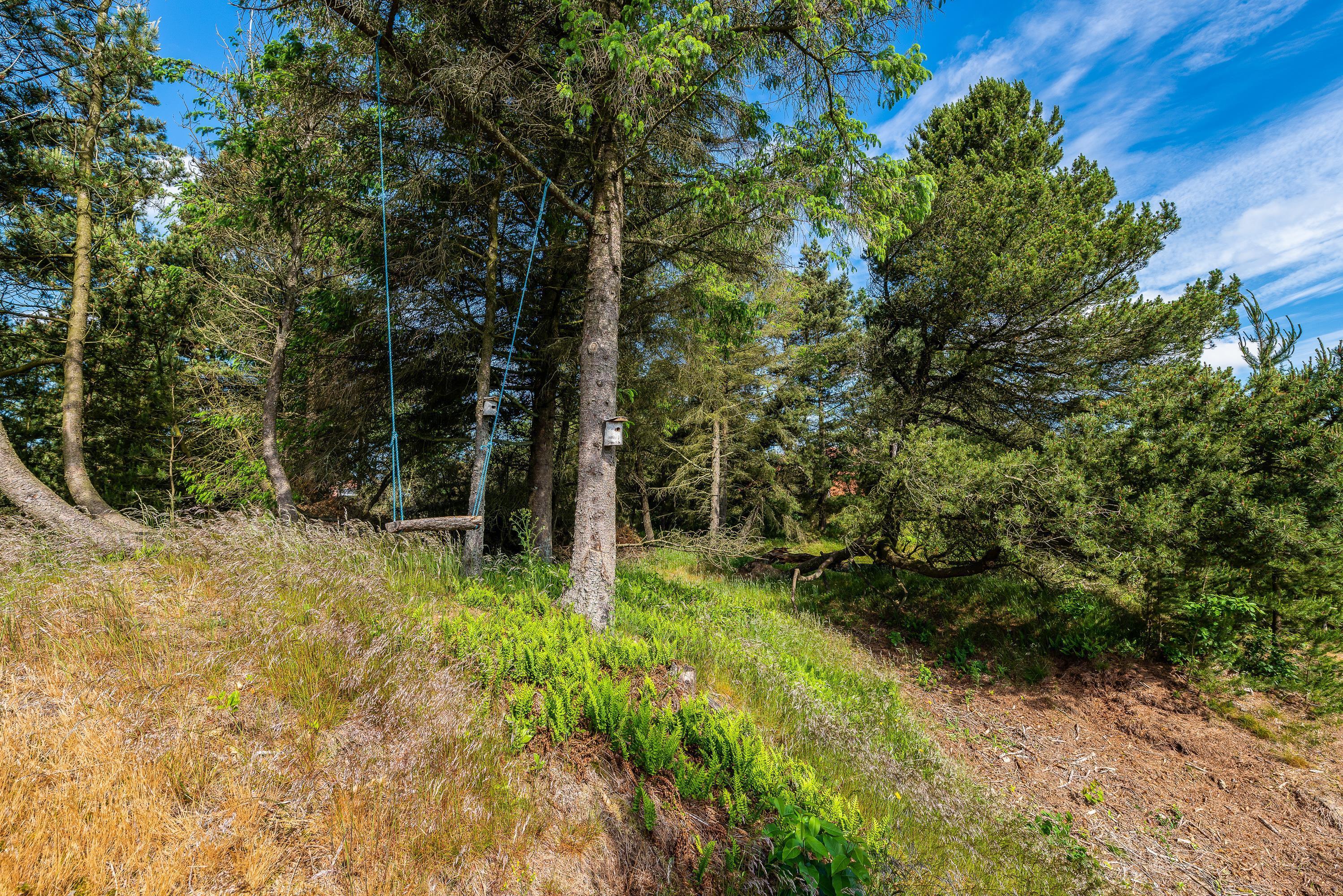 Med beliggenhed på en naturgrund helt afskærmet af træer og buske, har I masser af privatliv til at nyde de afslappende feriedage. Rundt om feriehuset løber en hele 100 kvadratmeter stor, lukket terrasse, hvor I altid kan finde en læfyldt krog. Den lukkede terrasse er desuden praktisk, hvis I har hunde med – her kan I lufte dem uden at være bange for, at de går på opdagelse i området på egen hånd.