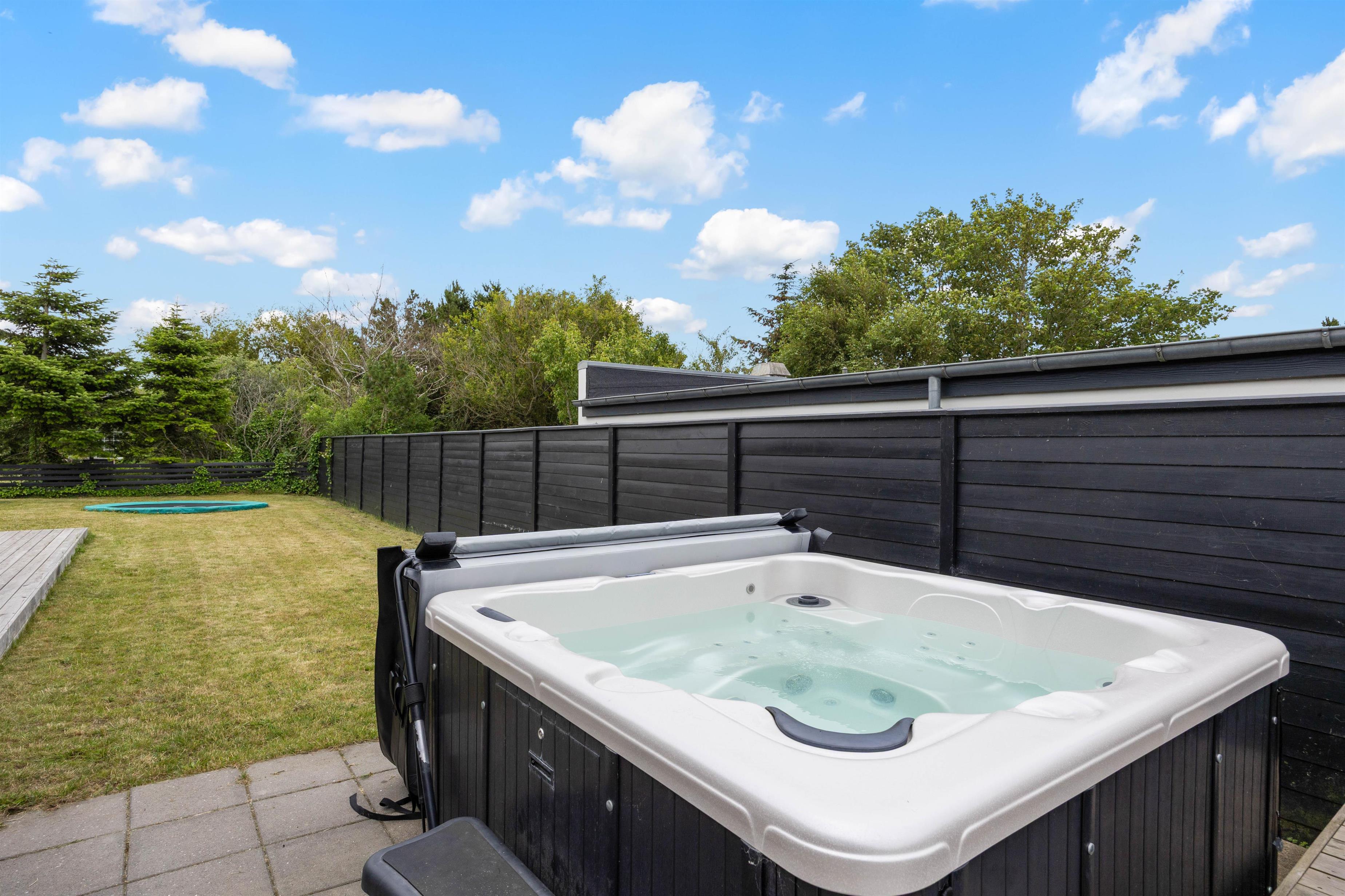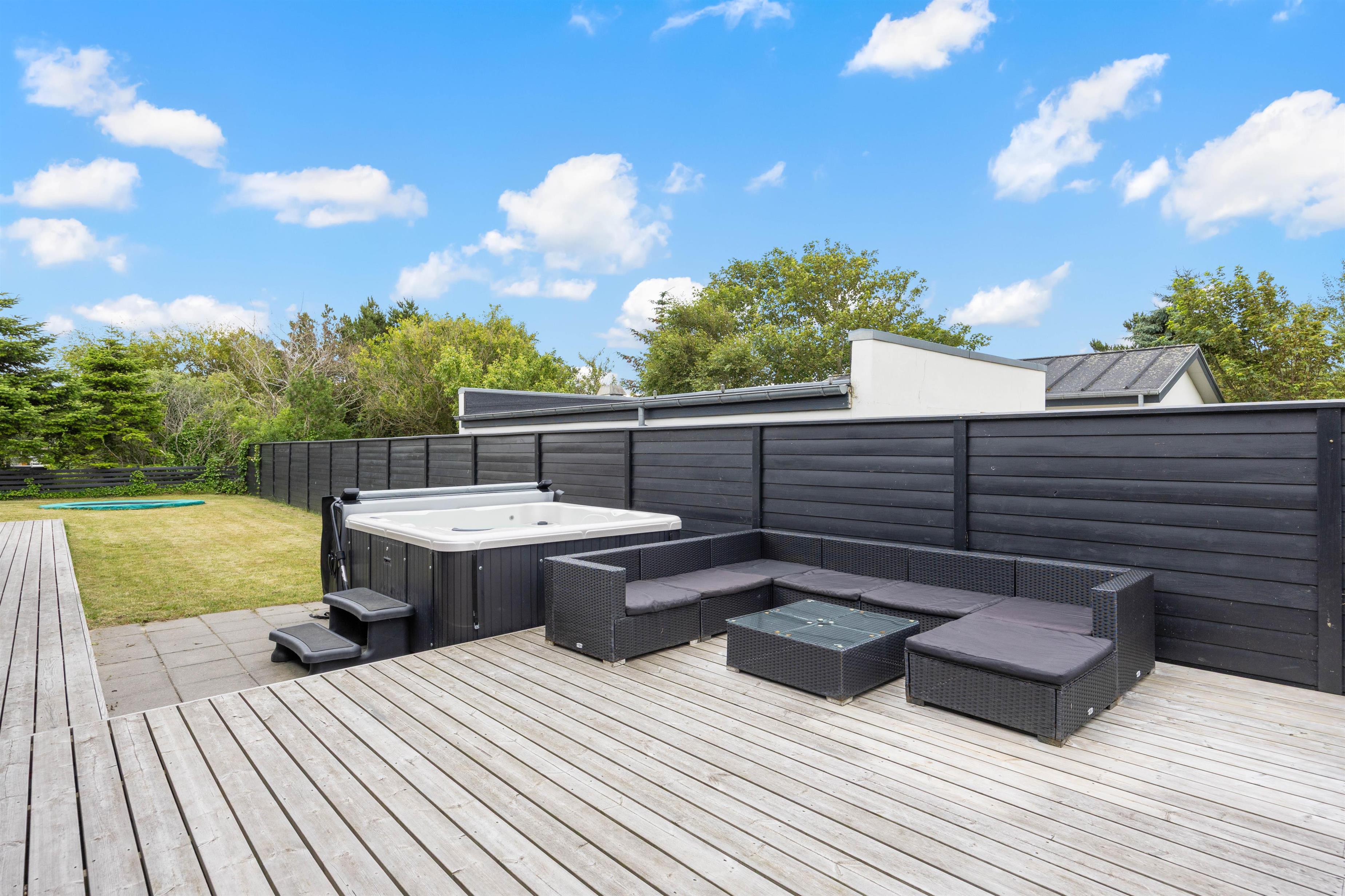 Skønt indhegnet udeområde med stor terrasse og udespa
