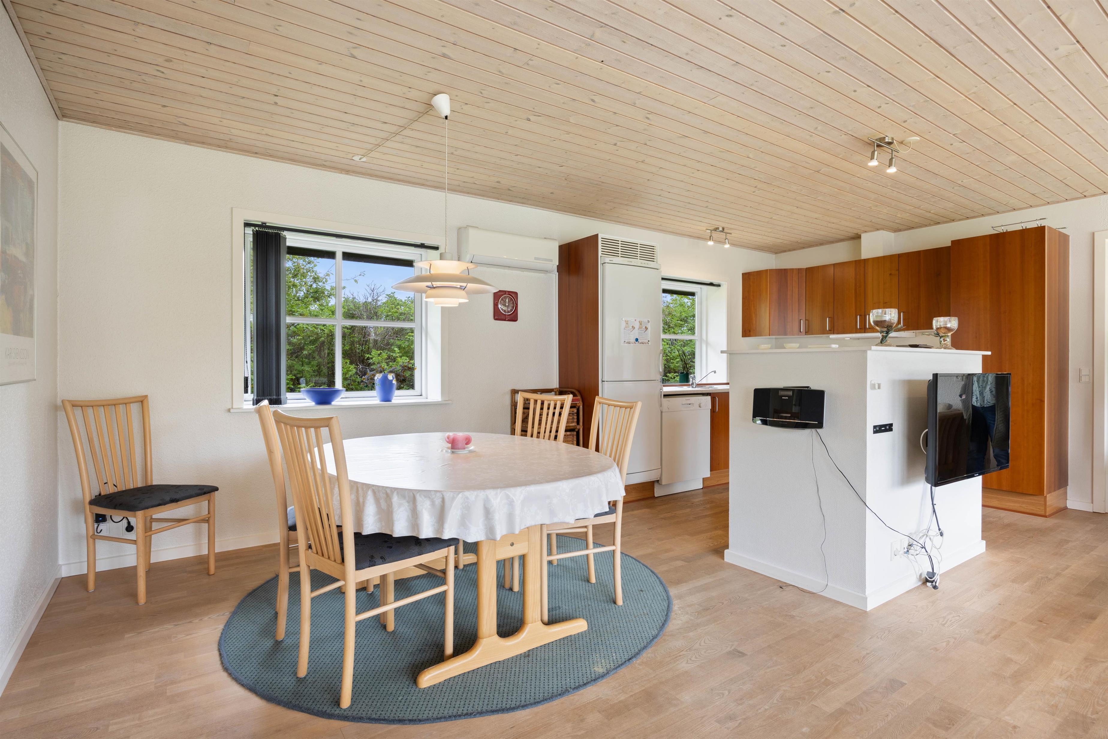 På Skovbrynet 18 tilfører den centralt placerede brændeovn i opholdsrummet en autentisk atmosfære, hvor I kan slappe af efter dagens oplevelser. Varmen kan også energieffektivt reguleres i hele sommerhuset med luft til luft varmepumpen, der sikrer behagelige temperaturer året rundt.