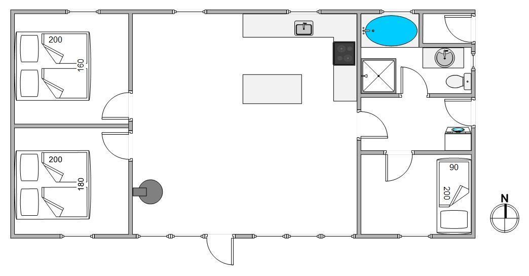 Feriehuset rummer 3 soverum, der fordeler sig med 2 dobbeltsenge og 1 enkeltseng, perfekt til familier eller en gruppe venner på op til 5 personer. Badeværelset med gulvvarme har også en spa, hvor I kan give jer selv lidt ekstra varme og velvære på køligere dage.
