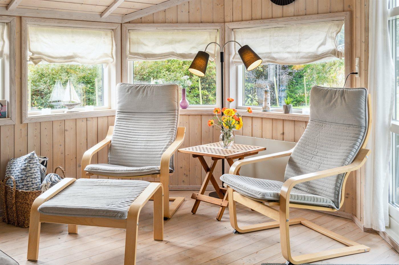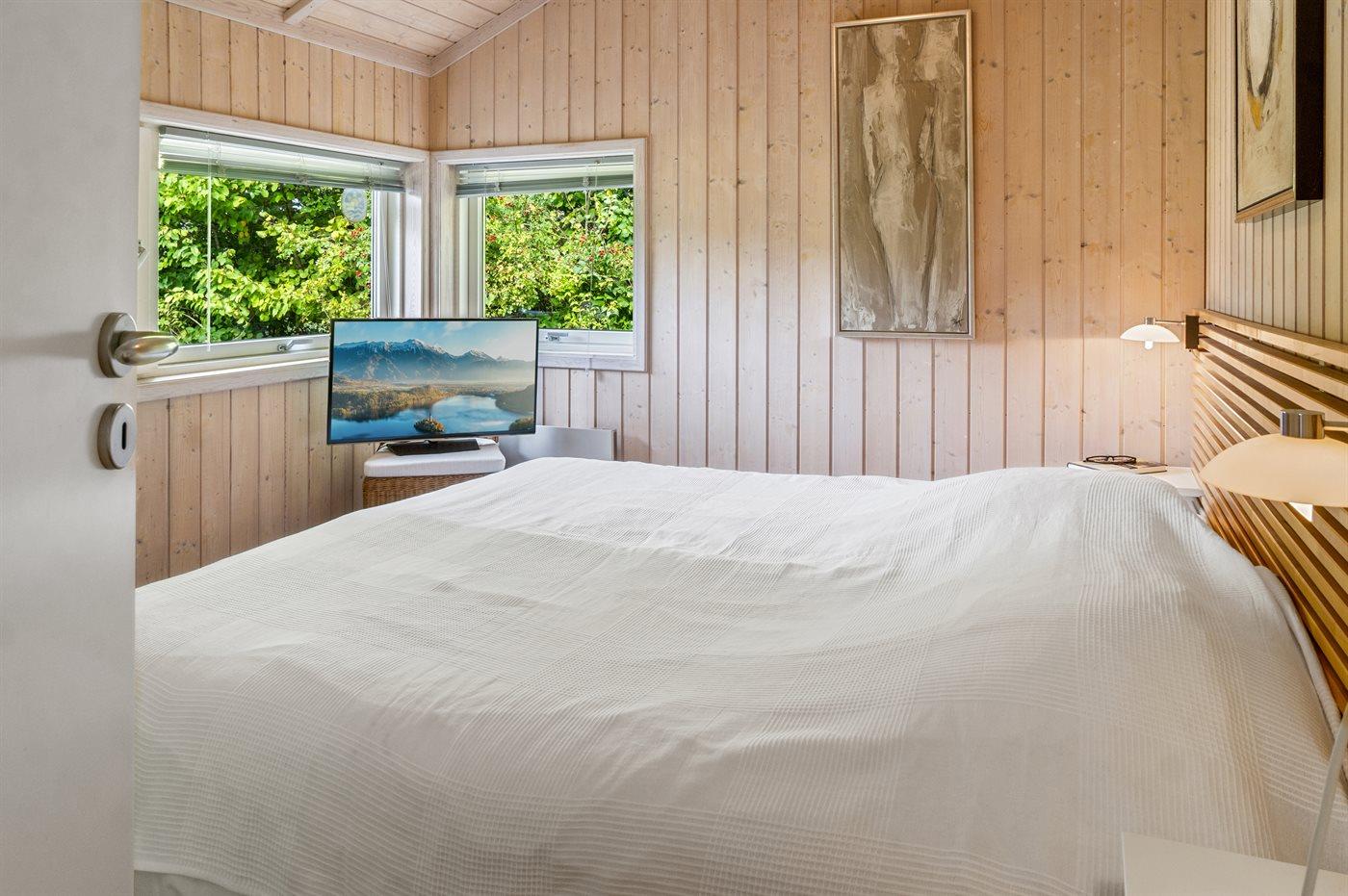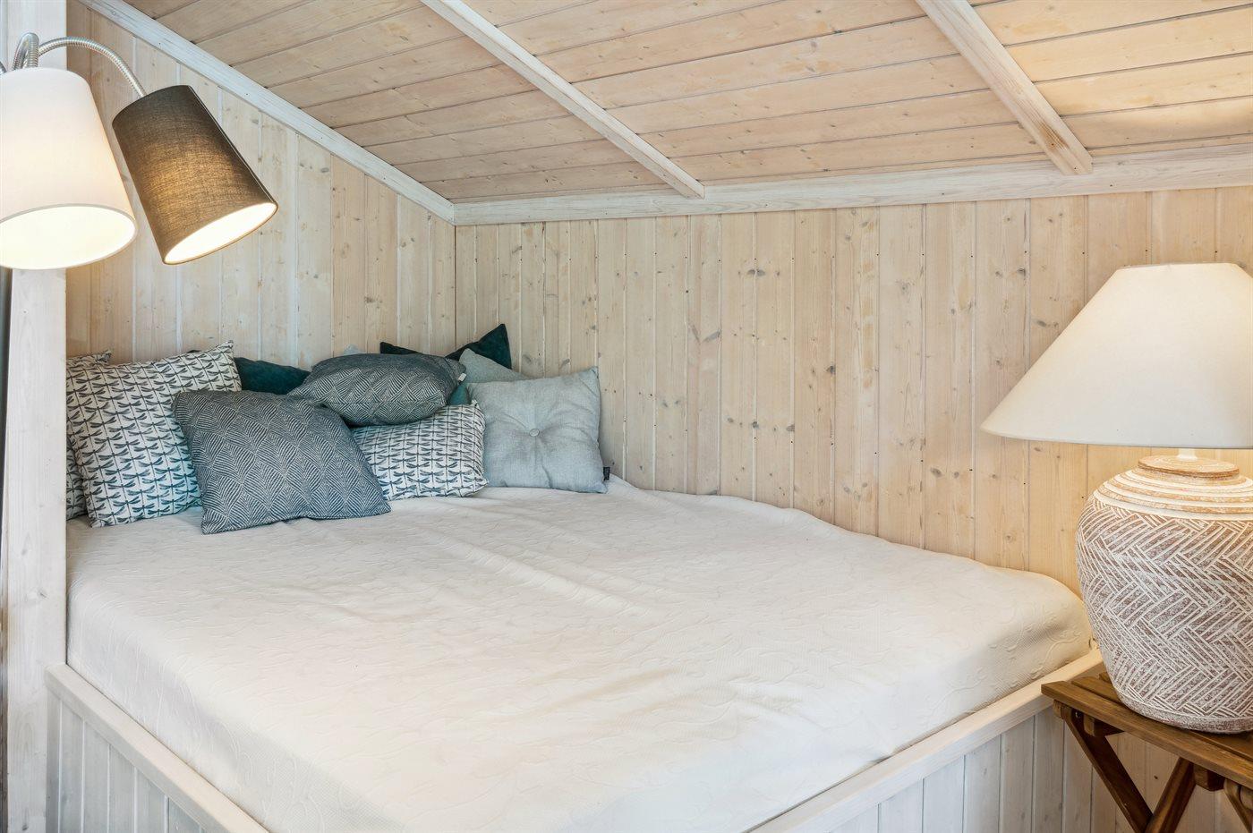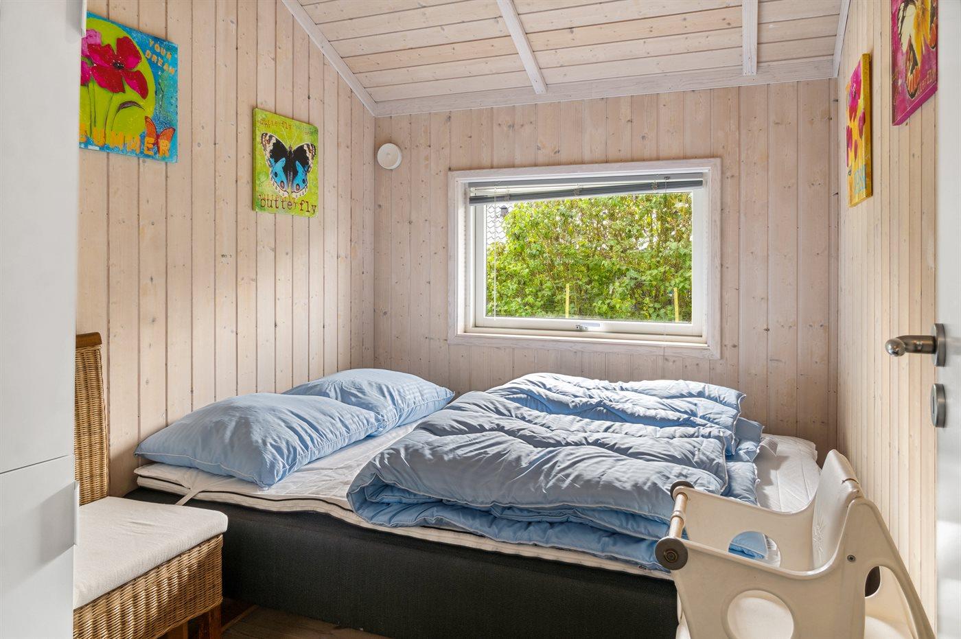 Der er i alt 3 soveværelser. Sovepladserne fordeler sig på: 4 sovepladser i dobbeltsenge. 2 sovepladser i enkeltsenge. 2 sovepladser i alkove.- 2 af disse sovepladser befinder sig i stuen. Derudover er der 1 stk. barneseng.
