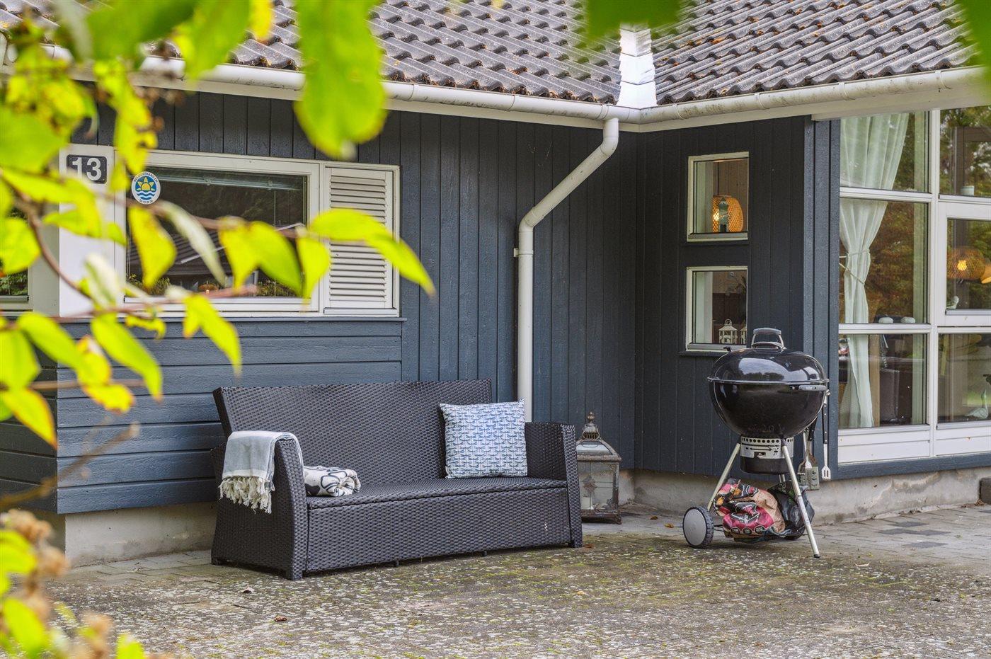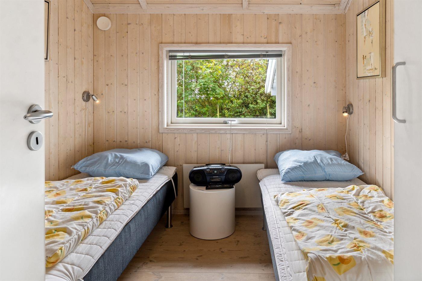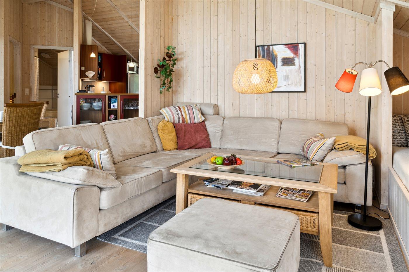 Ferieboligen er beliggende på en 850 m² stor naturgrund. Der er 200 m til havet. Nærmeste forretning er beliggende i en afstand af 1500 m. Til ferieboligen hører åbent terrasseareal. Desuden er der overdækket terrasse. Gynge. Sandkasse. Fodboldmål. Grill til rådighed. Parkering ved ferieboligen.
