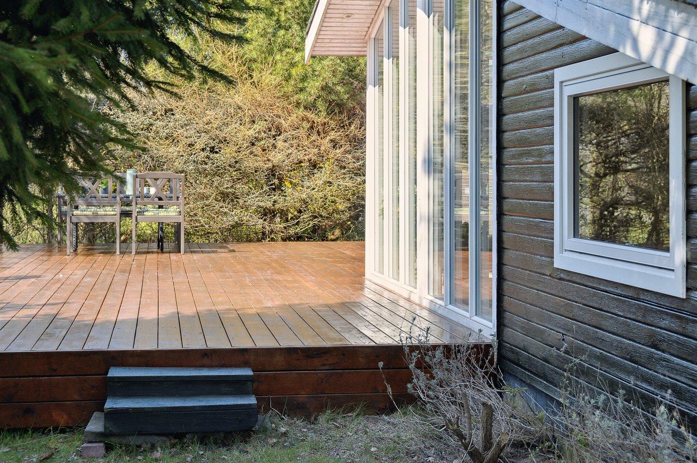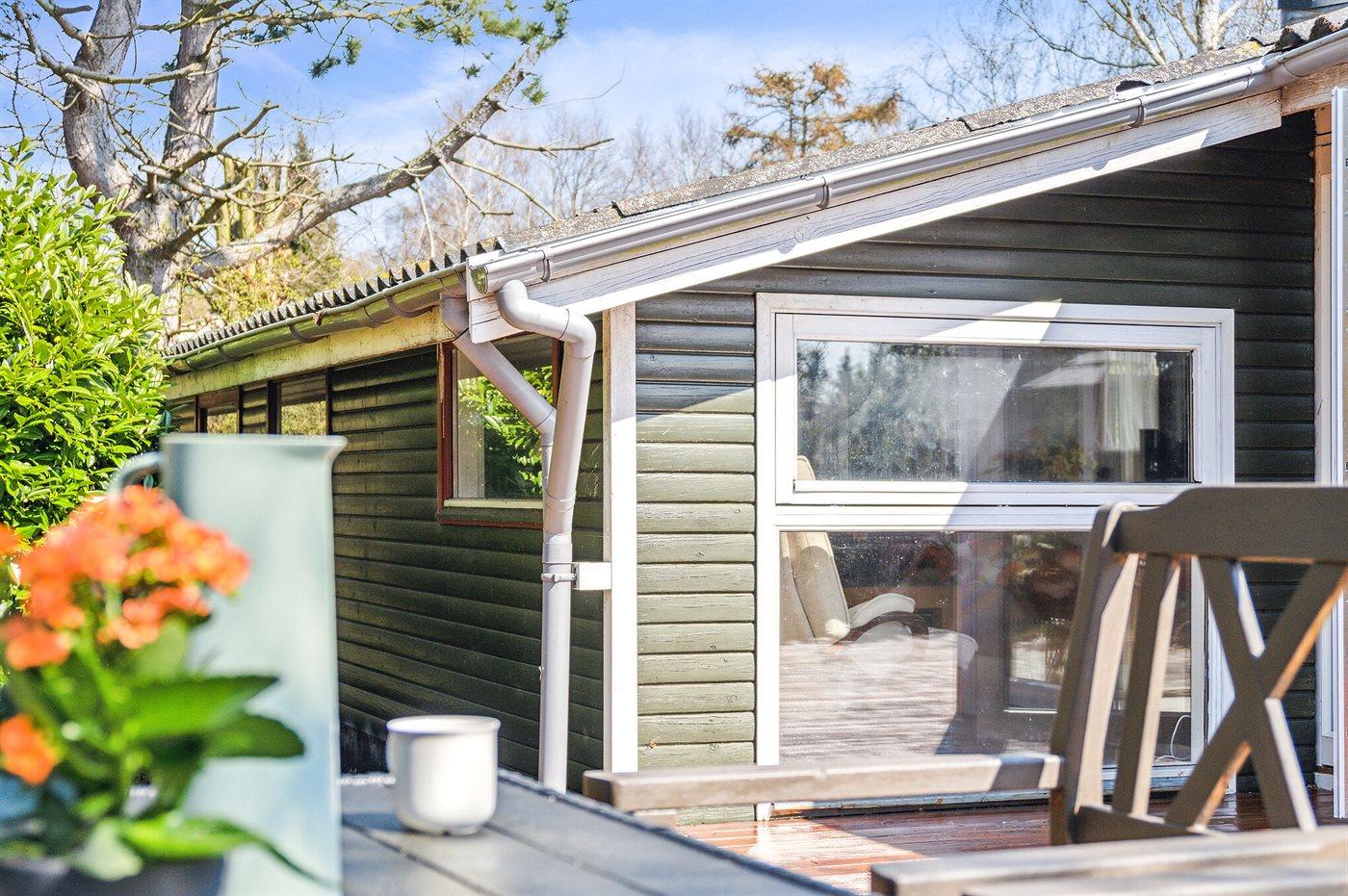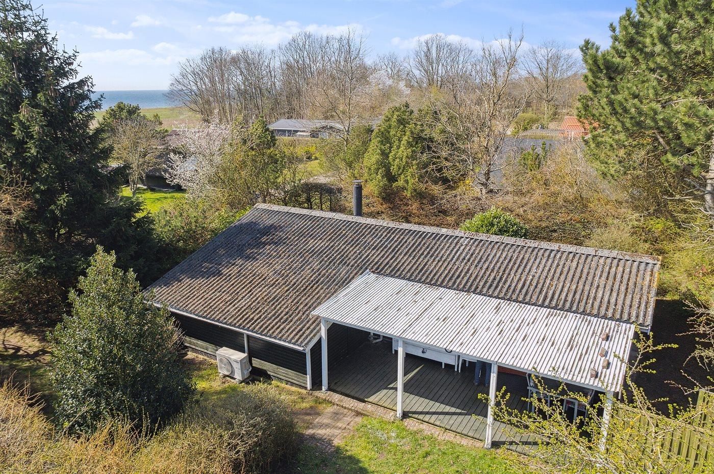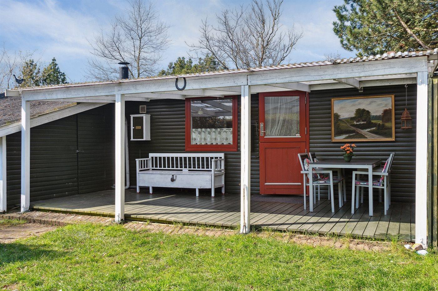 Ferieboligen er beliggende på en 400 m² stor havegrund. Der er 200 m til havet. Nærmeste forretning er beliggende i en afstand af 1800 m. Til ferieboligen hører åbent terrasseareal. Desuden er der overdækket terrasse. Der er redskabsrum. Grill til rådighed.