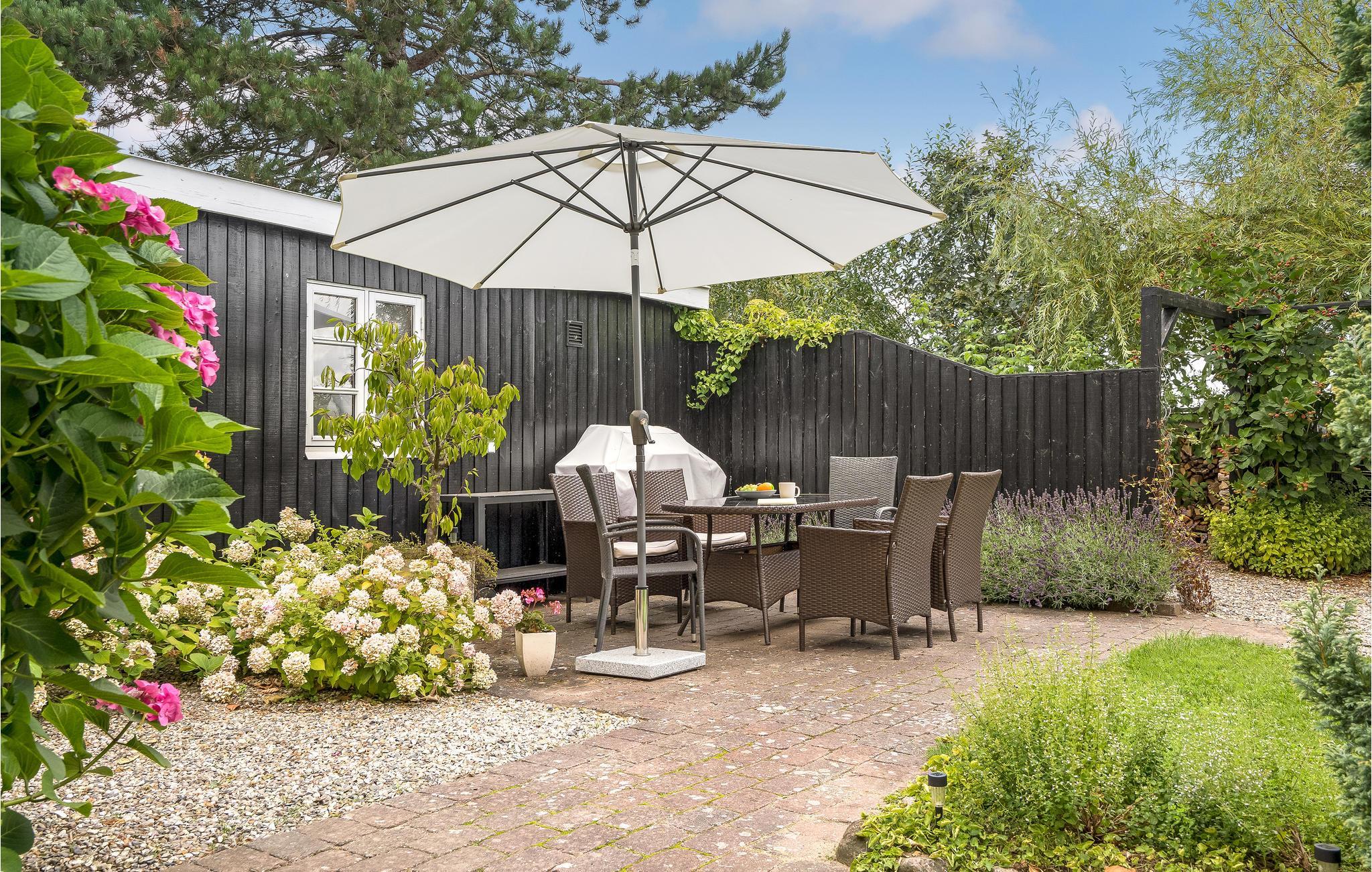 Feriehuset ligger på en stor grund med plads til leg, aktiviteter og afslapning for hele familien. Den åbne terrasse inviterer jer til at solbade eller spise sammen udenfor.