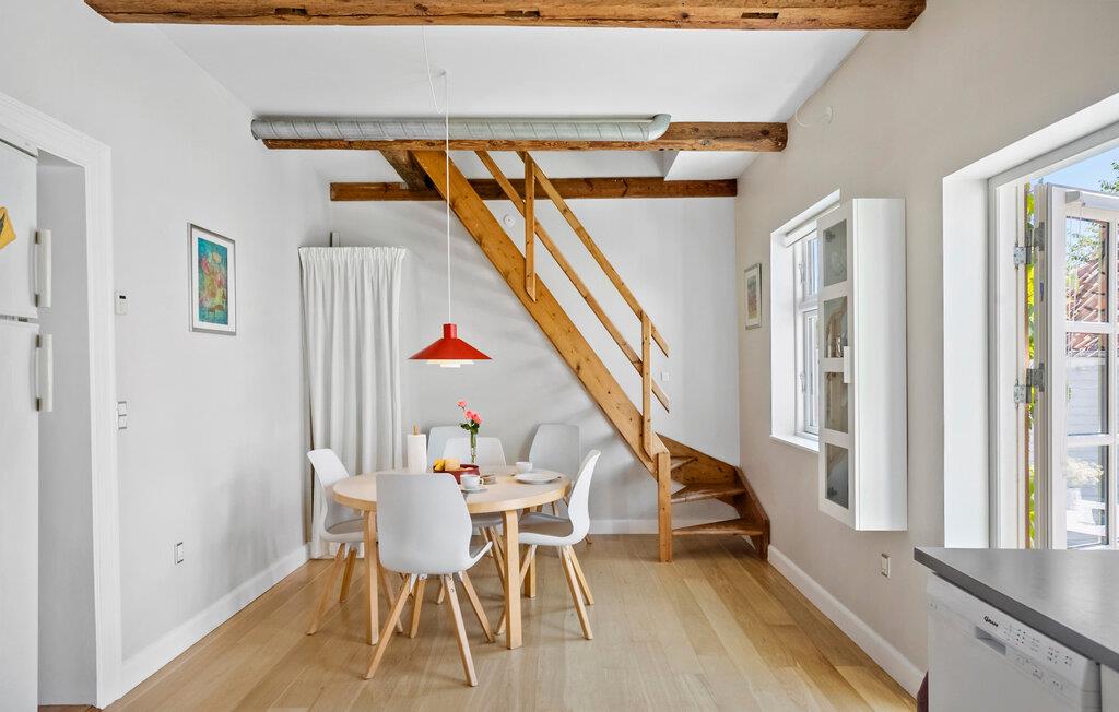 Dette rummelige og velholdte feriehus tilbyder de perfekte rammer for en afslappende pause i en rolig havneby. Tilbring en dejlig ferie her, kun en kort gåtur fra vandet. Glæd jer til det kærligt møblerede interiør med lyse trægulve, synlige træbjælker og en vellykket blanding af elegant design og klassiske elementer. Lav mad sammen i det moderne køkken, spis i den lyse spisestue, og hyg jer i stuen om aftenen. Lad børnene lege i det åbne loftsrum, eller brug det som et roligt sted til afslapning.