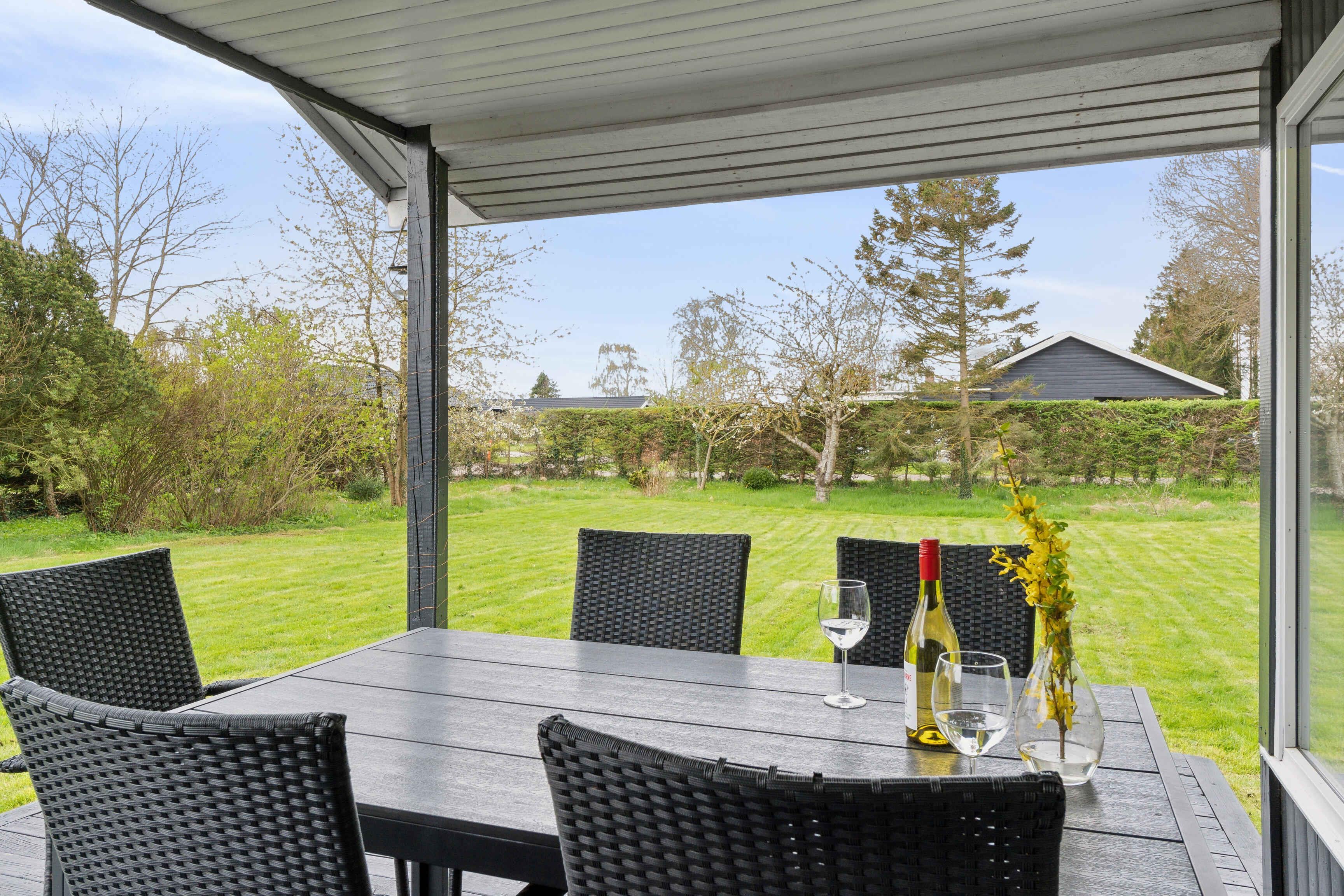 Hyggeligt sommerhus nær Dyngby Strand med stor terrasse, have og kun få km til Hou og Odder.